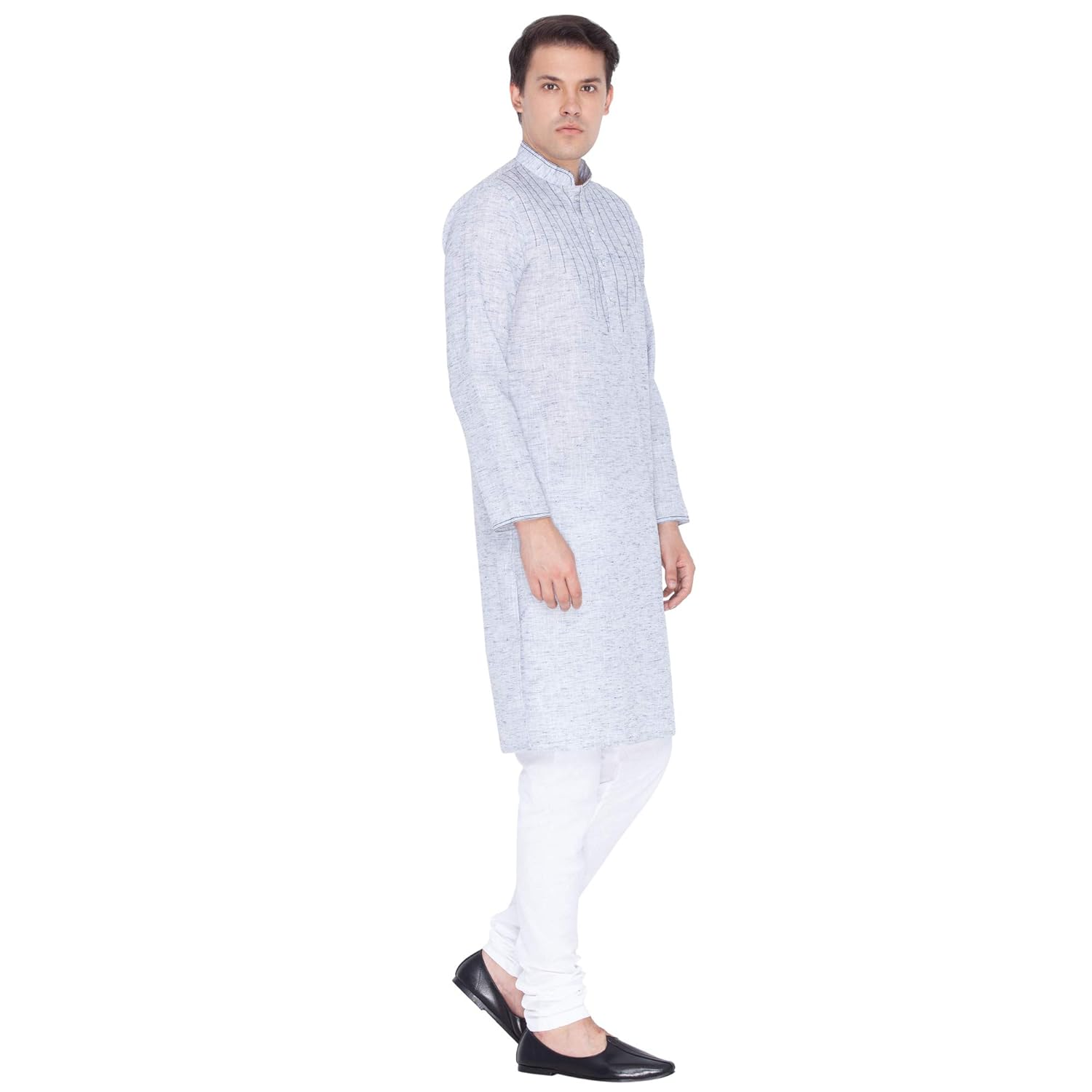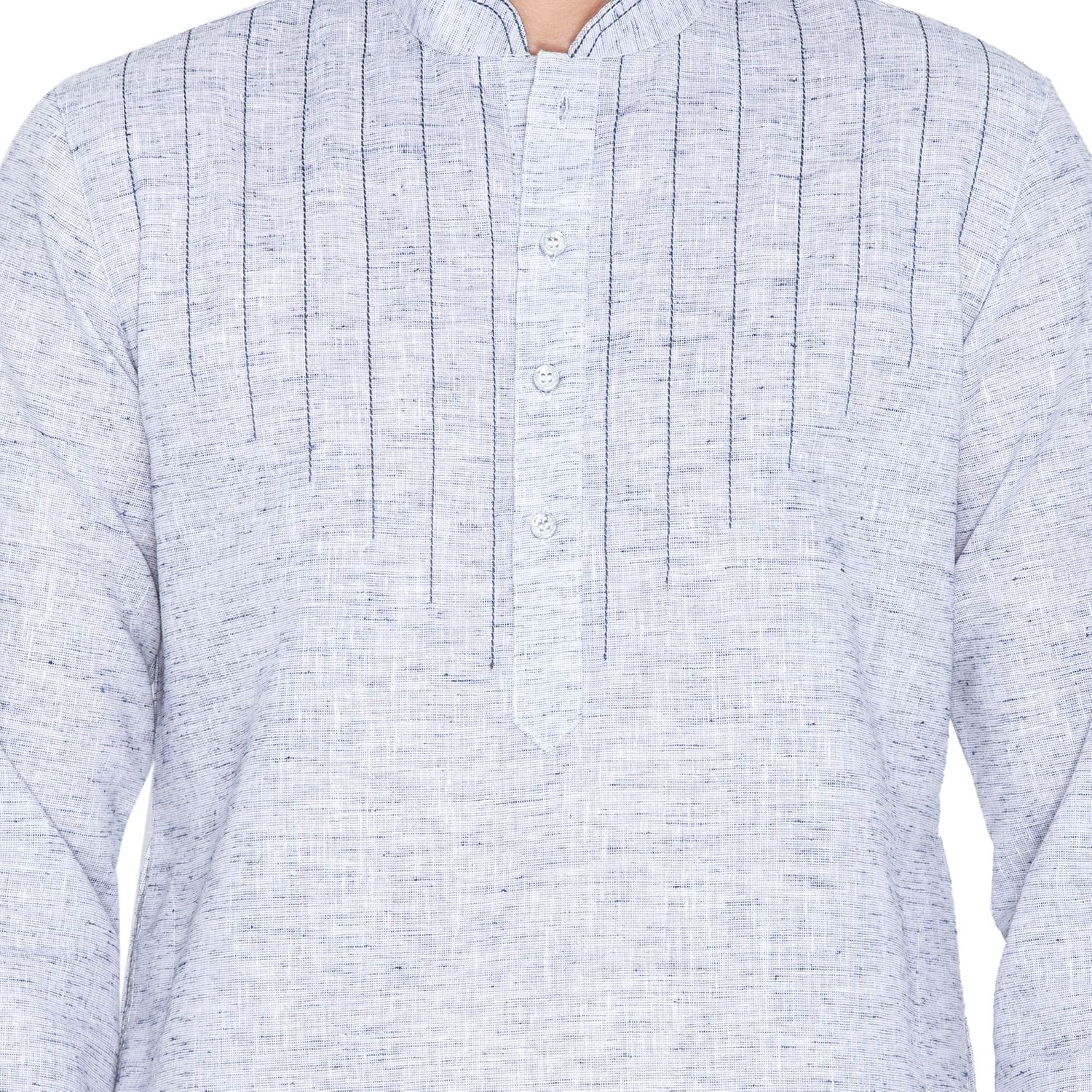 Vastramay brings to you this Stylish yet Comfortable Men Lavender Blue and White Linen Cotton Khadi Feel Solid Stylish Kurta and Cotton Churidar Pyjama Set. Adorn it for a perfect Classy & Trendy look. Pair it with a juti or a mojari for the Royal feel. |
