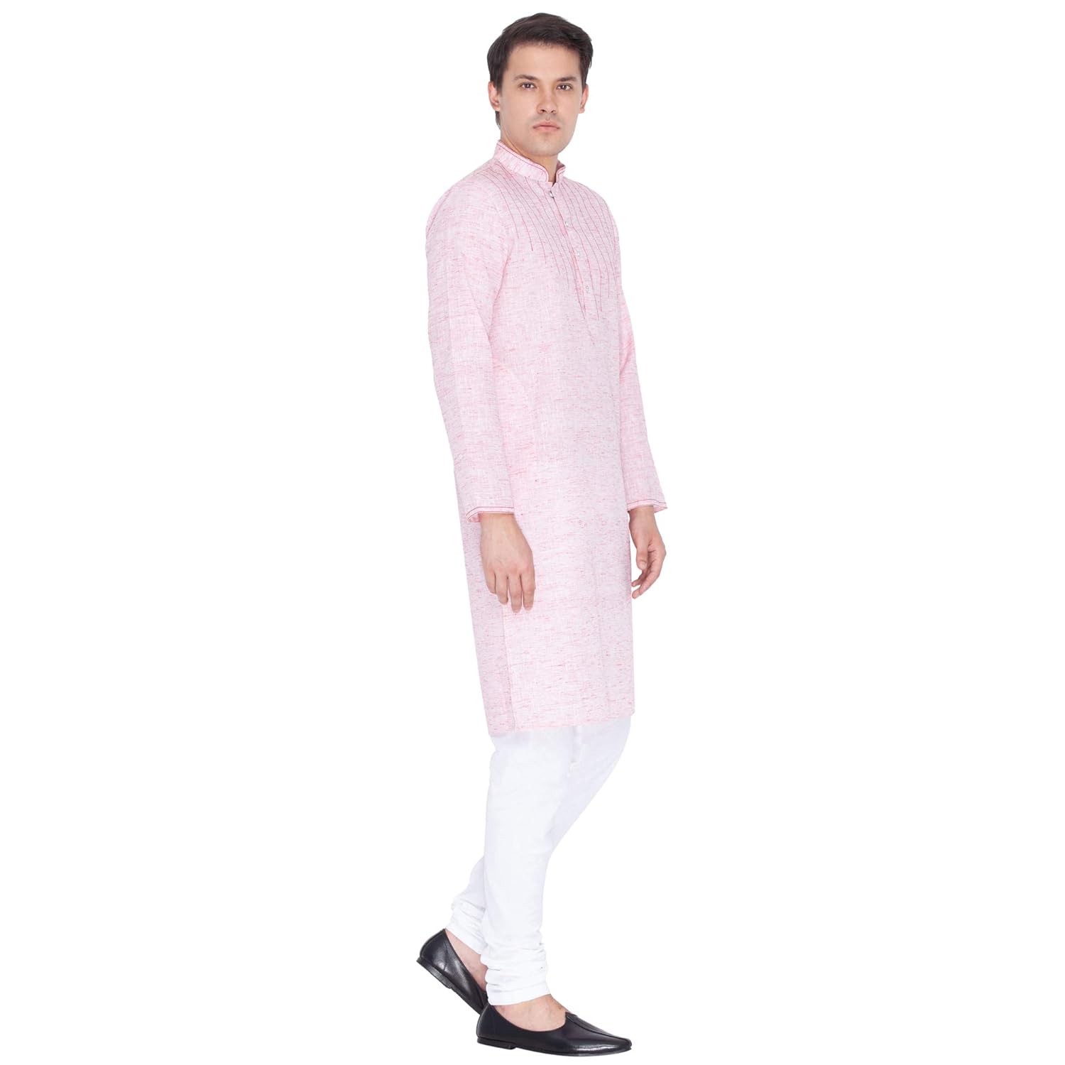Vastramay brings to you this Stylish yet Comfortable Men Lavender Pink and White Linen Cotton Khadi Feel Solid Stylish Kurta and Cotton Churidar Pyjama Set. Adorn it for a perfect Classy & Trendy look. Pair it with a juti or a mojari for the Royal feel. |