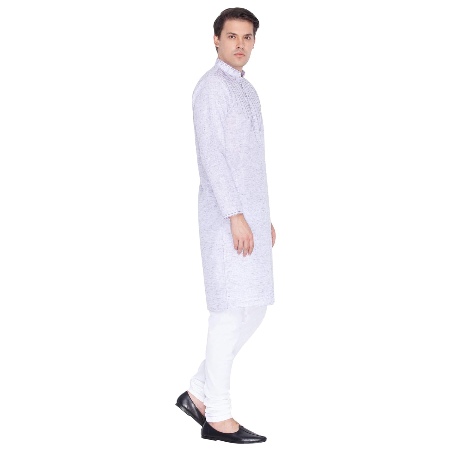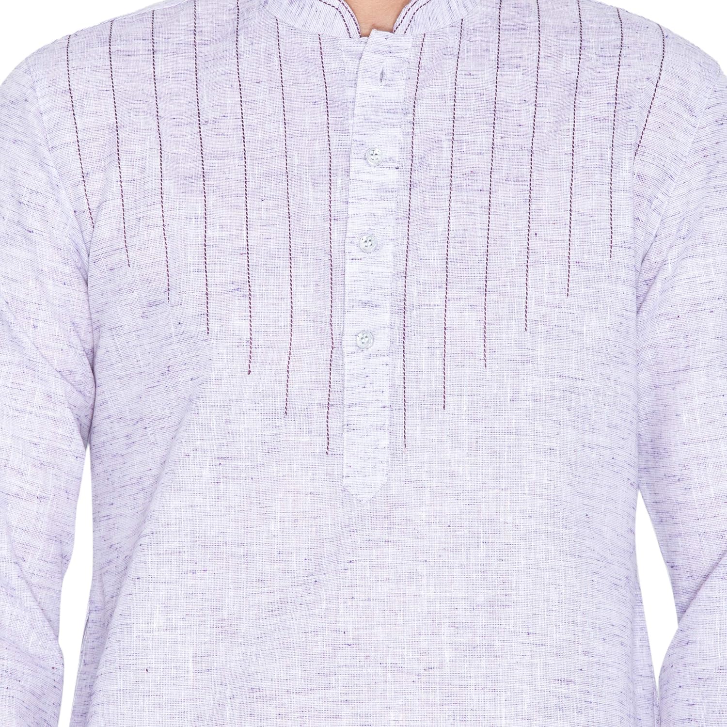 Vastramay brings to you this Stylish yet Comfortable Men Lavender Mist and White Linen Cotton Khadi Feel Solid Stylish Kurta and Cotton Churidar Pyjama Set. Adorn it for a perfect Classy & Trendy look. Pair it with a juti or a mojari for the Royal feel. |