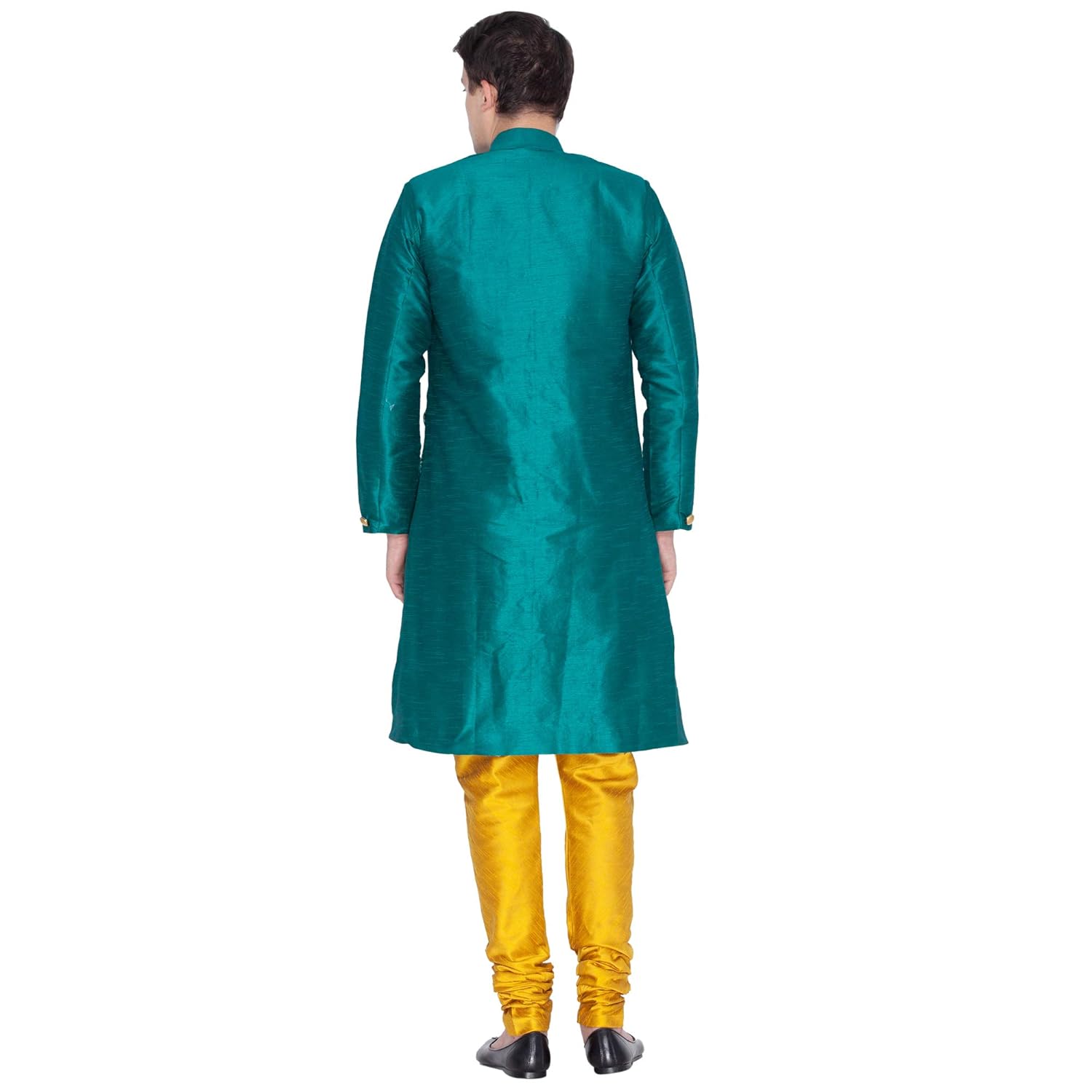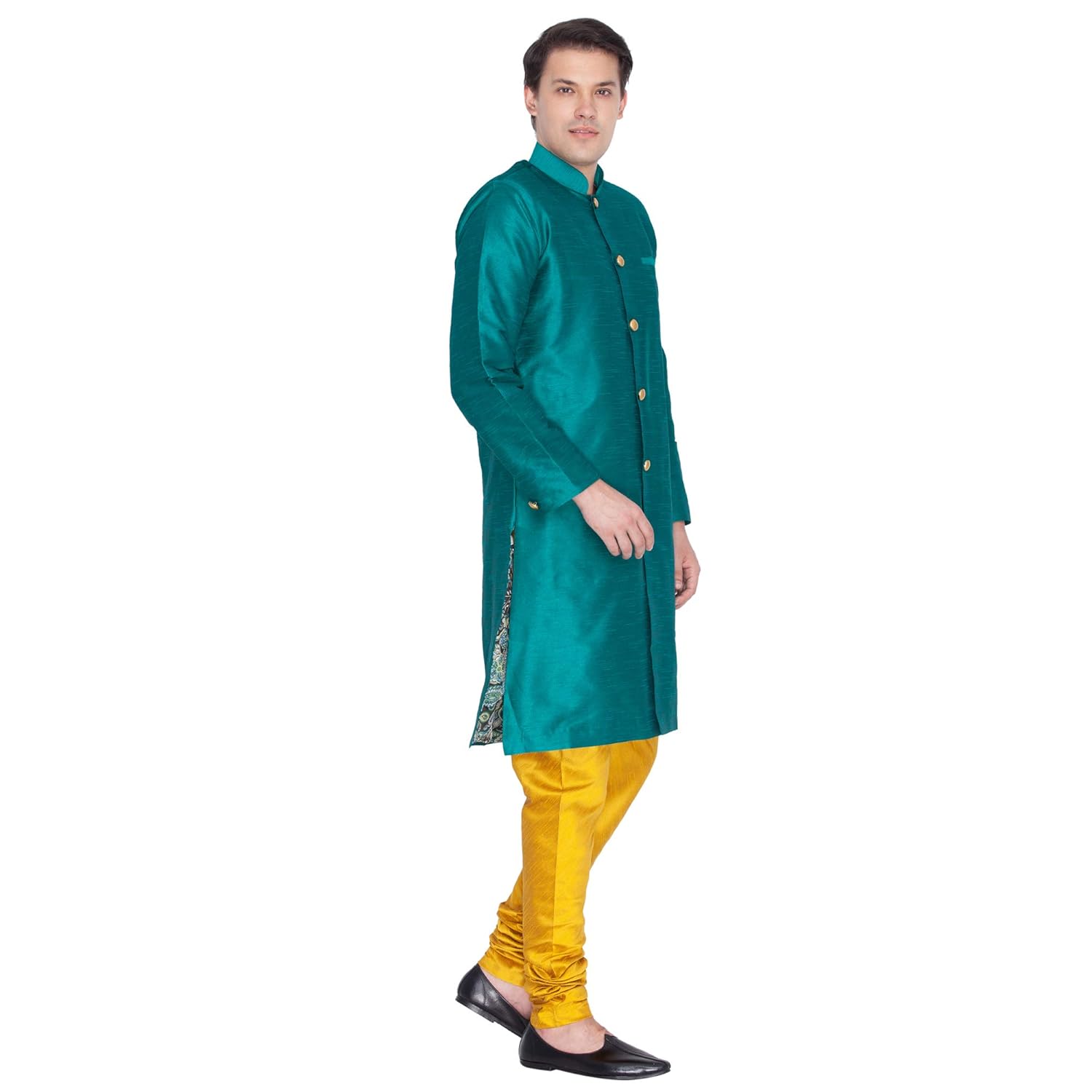 Vastramay brings to you this Stylish yet Comfortable Men Bottle Green and Mustard Men Cotton Silk Kurta Sherwani With Churidar Pyjama Set. Adorn it for a perfect Classy & Trendy look. Pair it with a juti or a mojari for the Royal feel. |