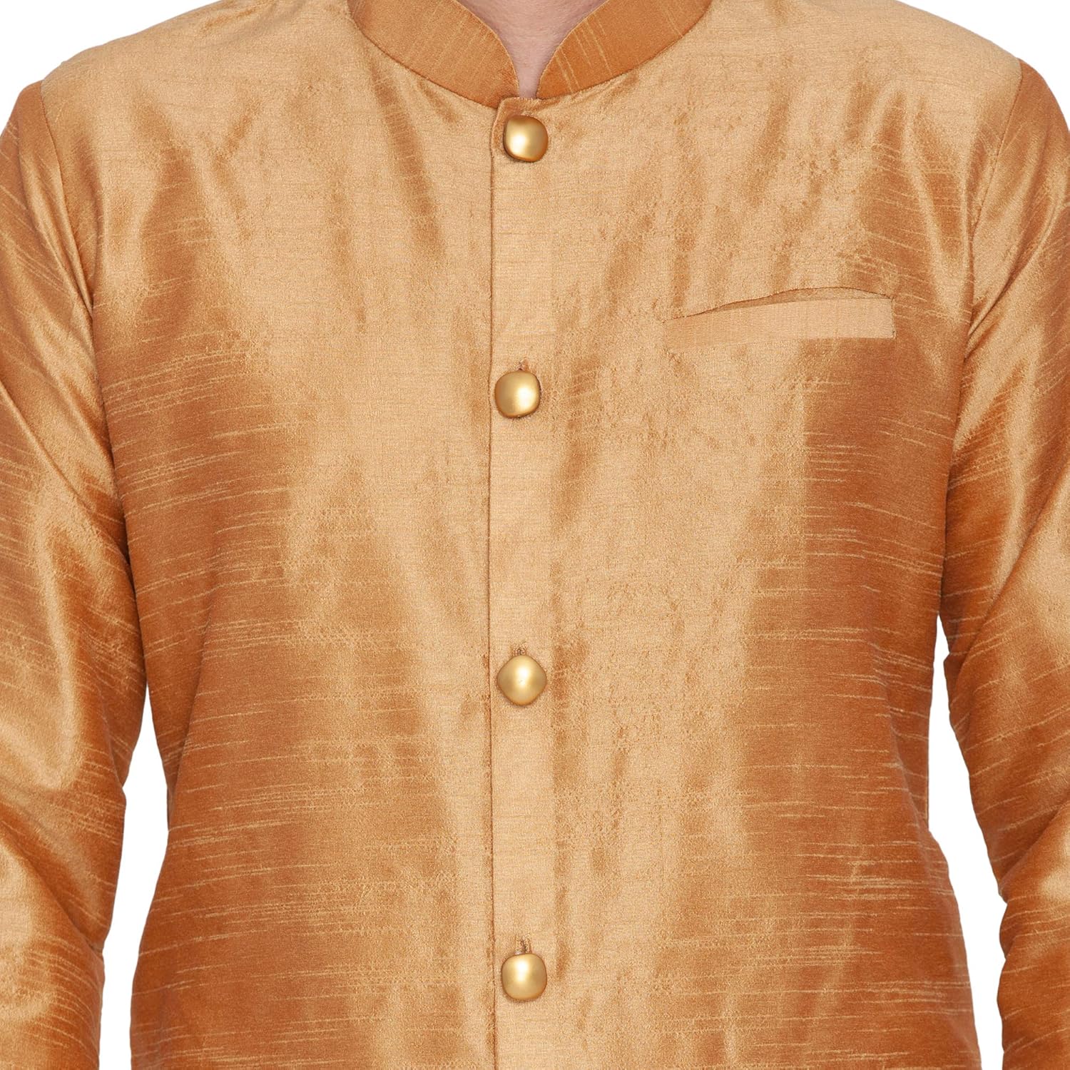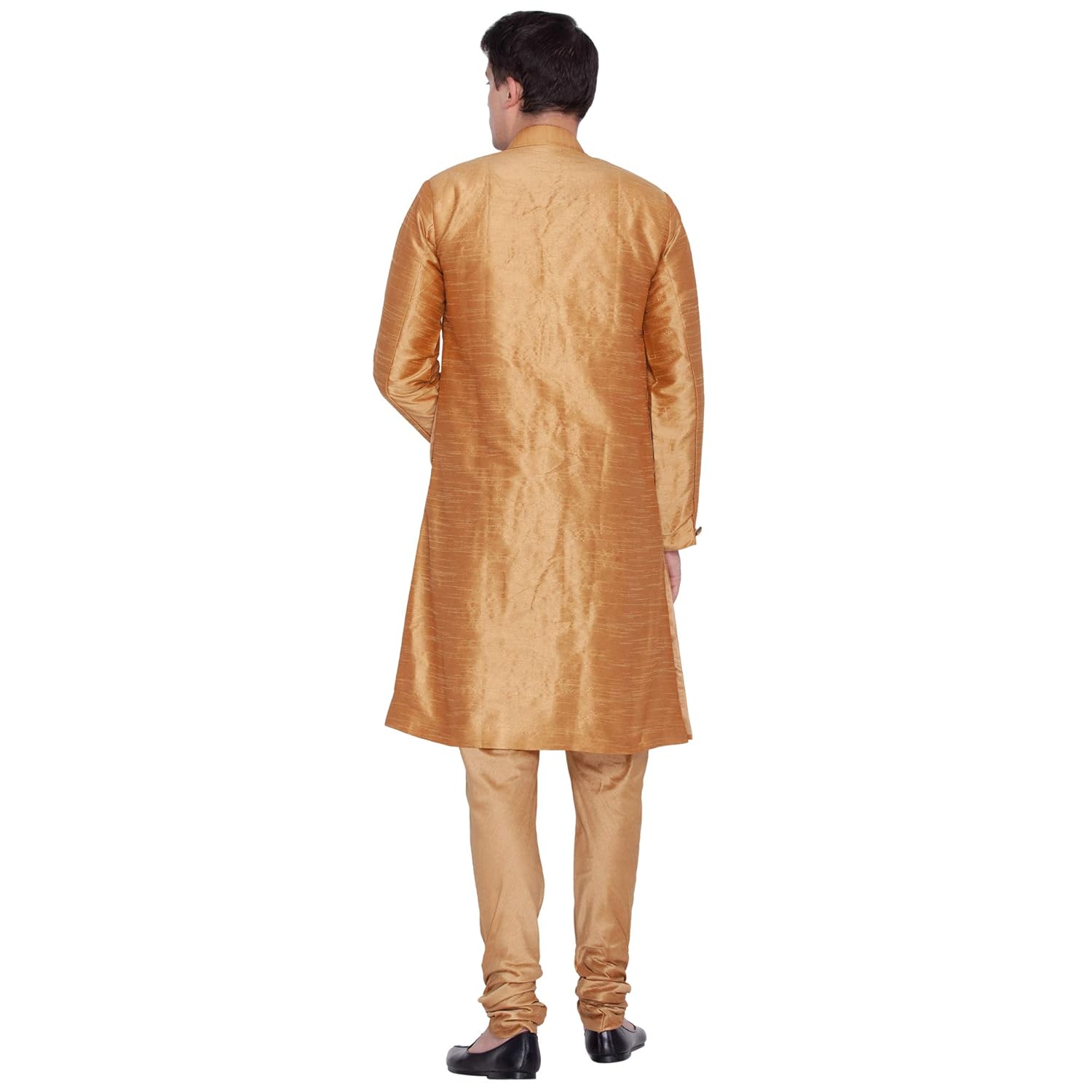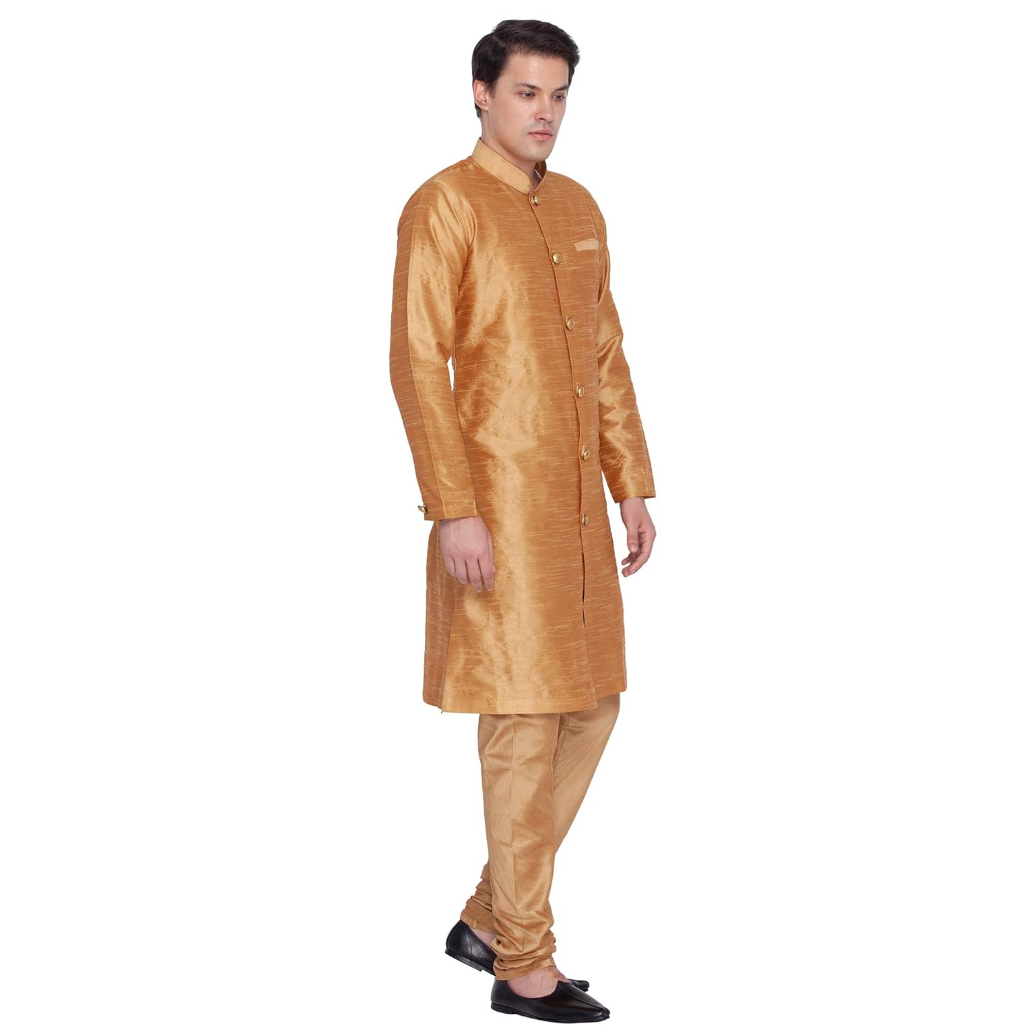 Vastramay brings to you this Stylish yet Comfortable Men Rose Gold Men Cotton Silk Kurta Sherwani With Churidar Pyjama Set. Adorn it for a perfect Classy & Trendy look. Pair it with a juti or a mojari for the Royal feel. |