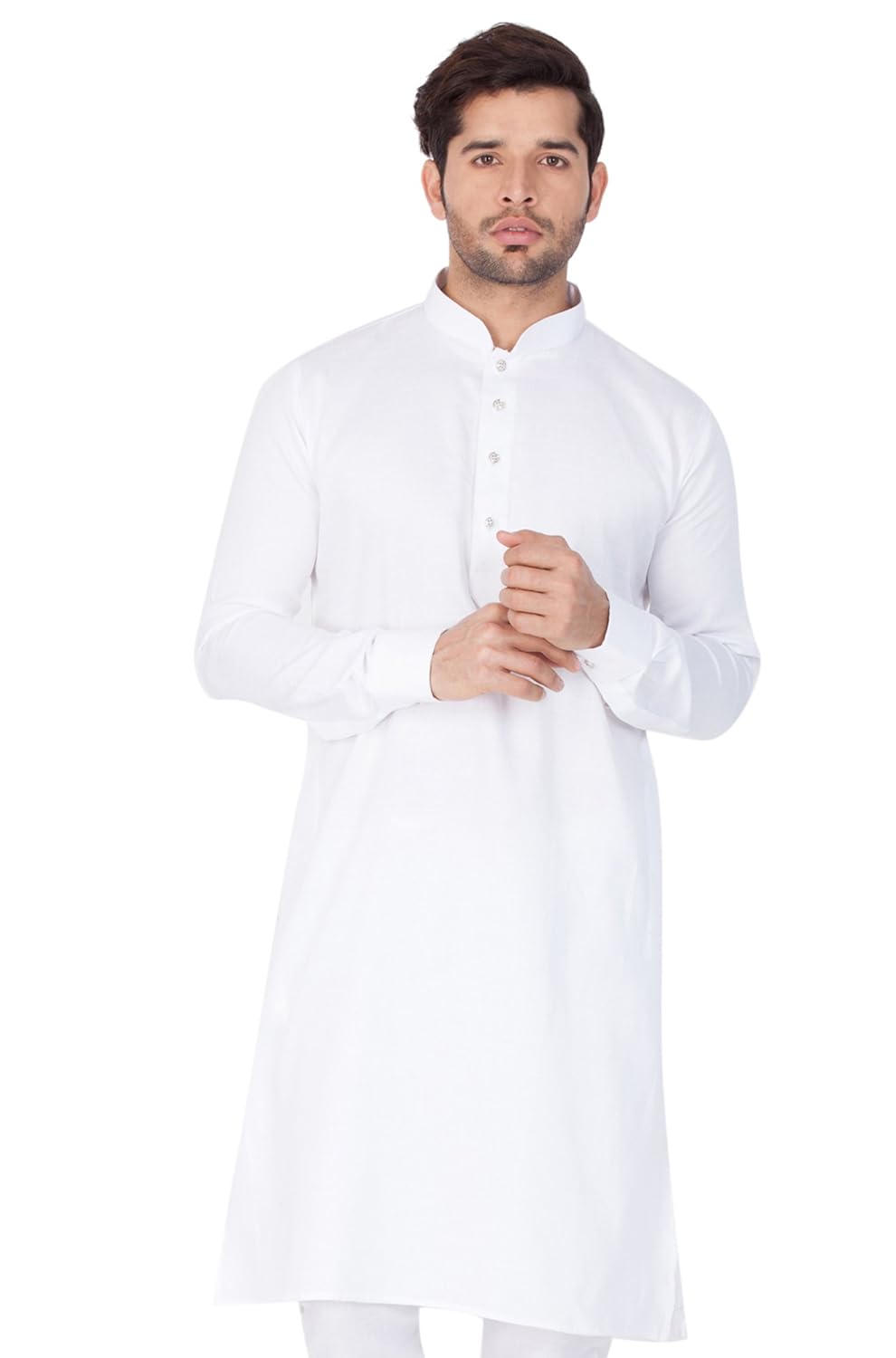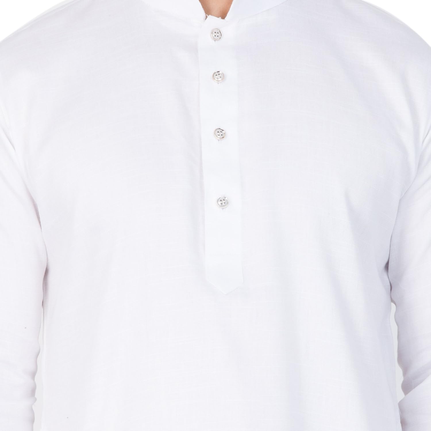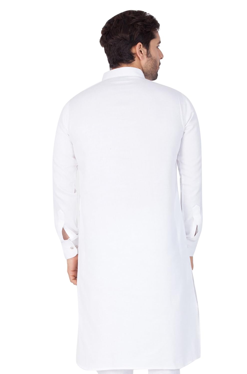 Vastramay brings to you this Stylish yet Comfortable Men White Men Soft Shiny Cotton Kurta with a Buttoned Cuff Styling paired with a Churidar Pyjama Set.. Adorn it for a perfect Classy & Trendy look. Pair it with a juti or a mojari for the Royal feel. |
