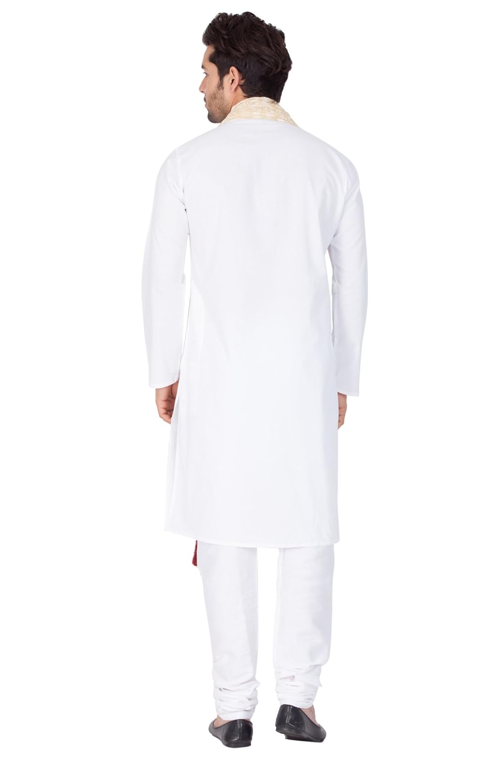 Vastramay brings to you this Stylish yet Comfortable Men White Men Pure Cotton White Kurta, Churidar Pyjama with a Shaded Dye Crushed Dupatta Set. Adorn it for a perfect Classy & Trendy look. Pair it with a juti or a mojari for the Royal feel. |