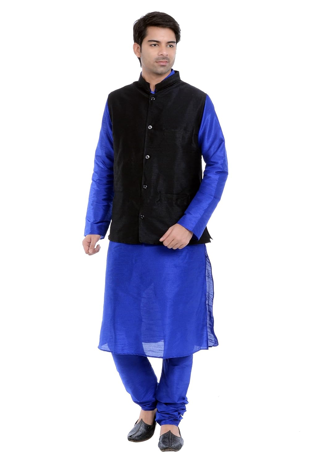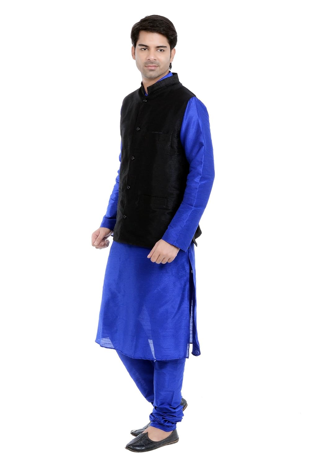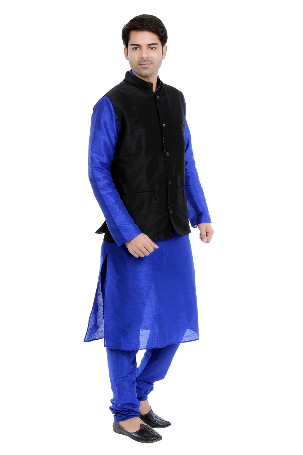 Vastramay presents to you this unique ethnic set. You call it Modi Jacket, Nehru Jacket or a Bandhgala it is up to you but for sure this is one set of outfit which is the most sought about ethnic set today. The set contains a Matka silk jacket which can be paired with any colour kurta, thanks to the neutral virgin colour. You can in fact pair the jacket with a jeans and shirt too. Needless to say, the kurta pyjama itself is a self sufficient outfit apt for any occasion. |