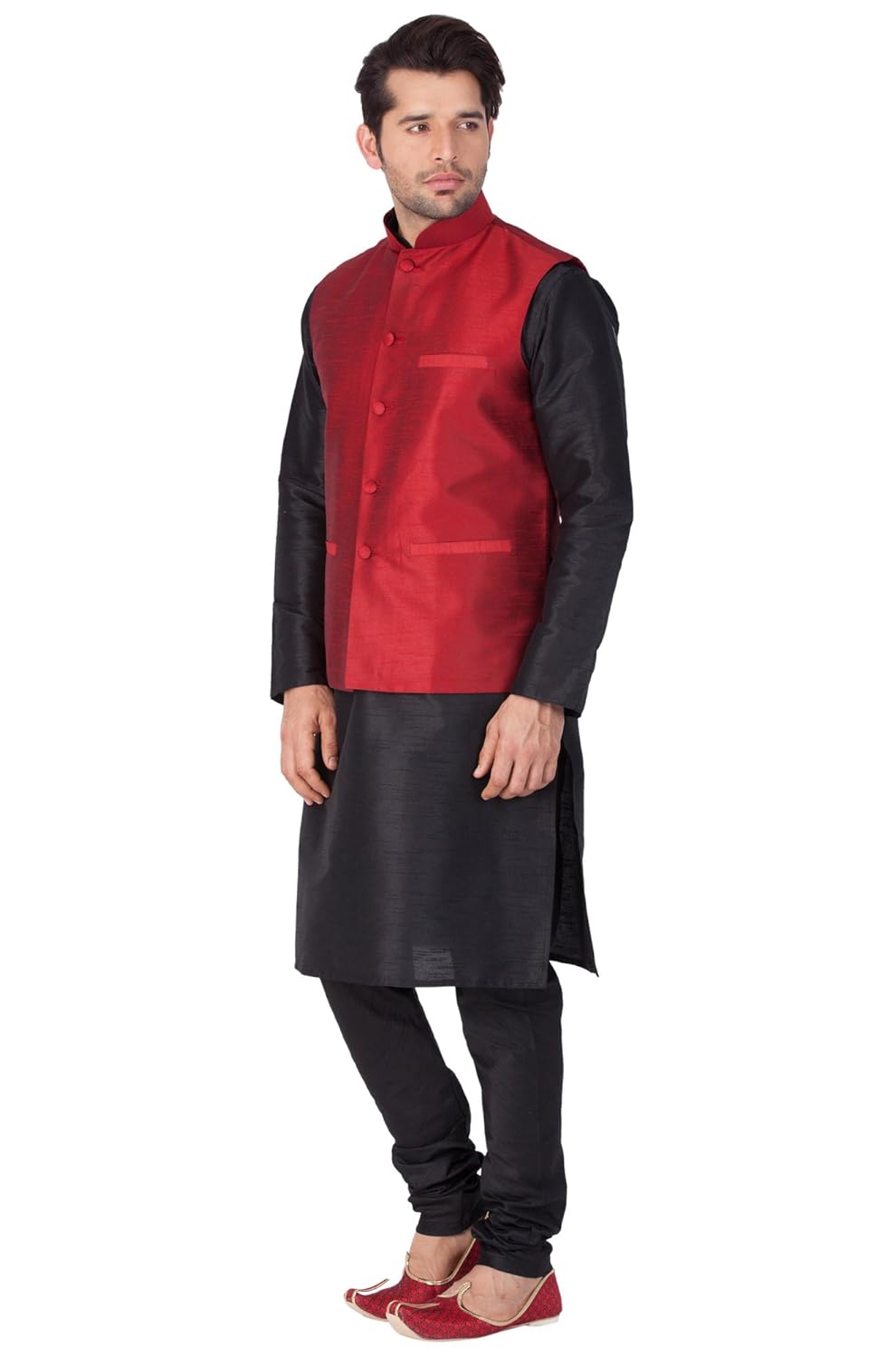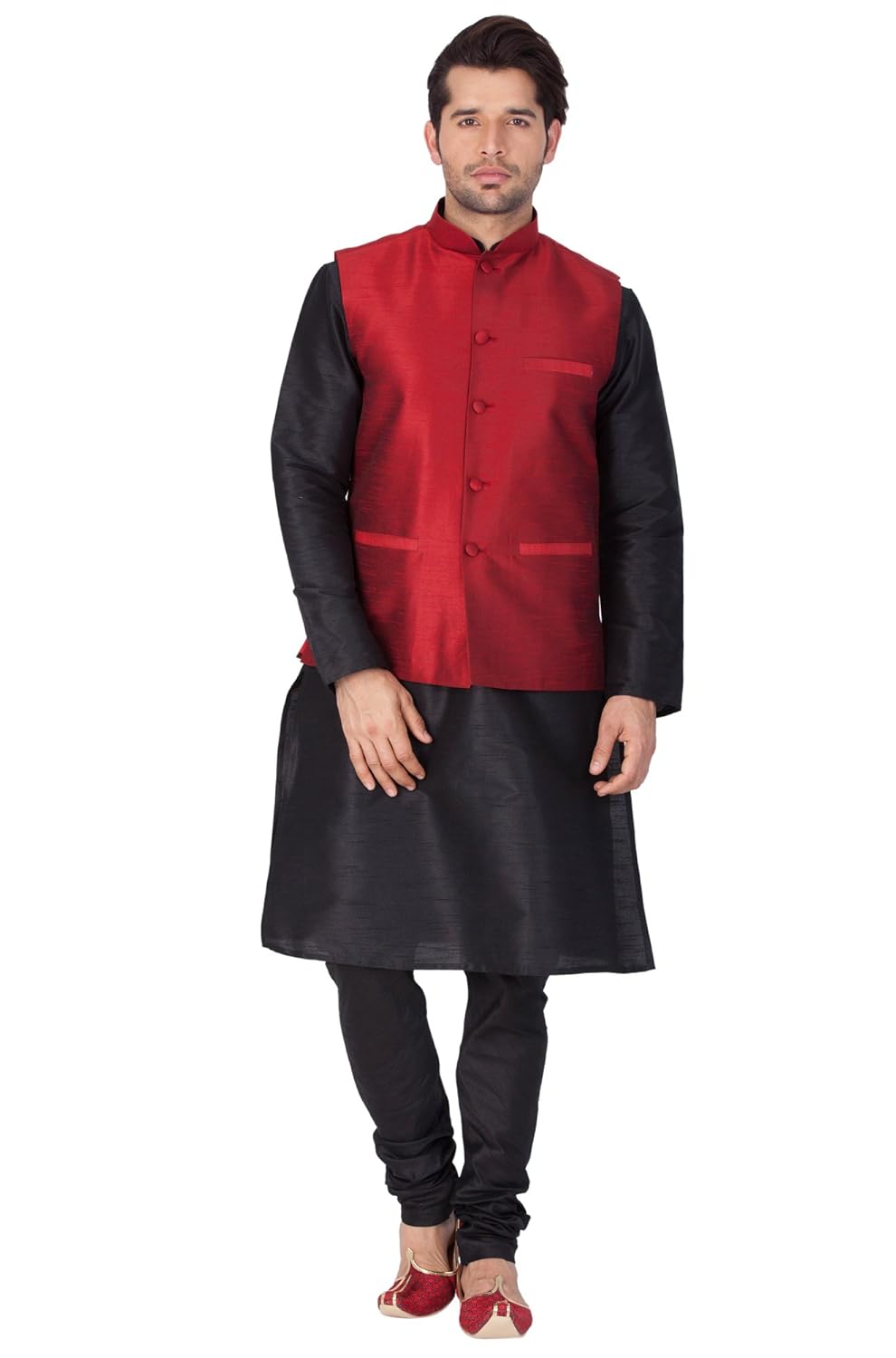 Vastramay presents to you this unique ethnic set. You call it Modi Jacket, Nehru Jacket or a Bandhgala it is up to you but for sure this is one set of outfit which is the most sought about ethnic set today. The set contains a Matka silk jacket which can be paired with any colour kurta, thanks to the neutral virgin colour. You can in fact pair the jacket with a jeans and shirt too. Needless to say, the kurta pyjama itself is a self sufficient outfit apt for any occasion. |
