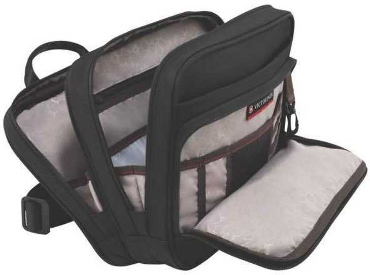 Other Features: RFID protection technology, Unique ratchet system, Can be worn as a waist pack, shoulder tote or across-the-body, Dedicted compartment for iPad, tablet or eReader, Large zippered pocket, satin micromesh ID pocket, small tricot-lined scratch-resistant electronics pocket and two AirMesh breathable electronics pockets, in main compartment, Small AirMesh breathable electronics pocket, dedicated crd slots, two pen slots and key fob in front panel, Top zippered pocket, Zipper pull covers
