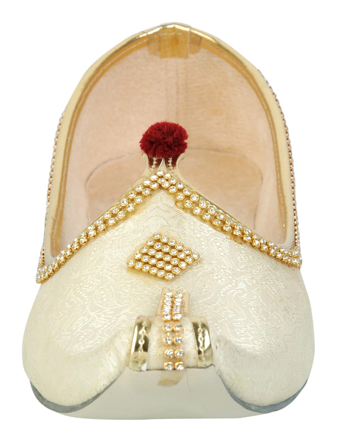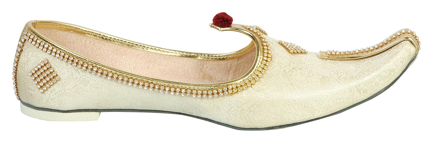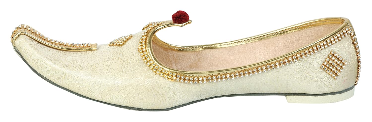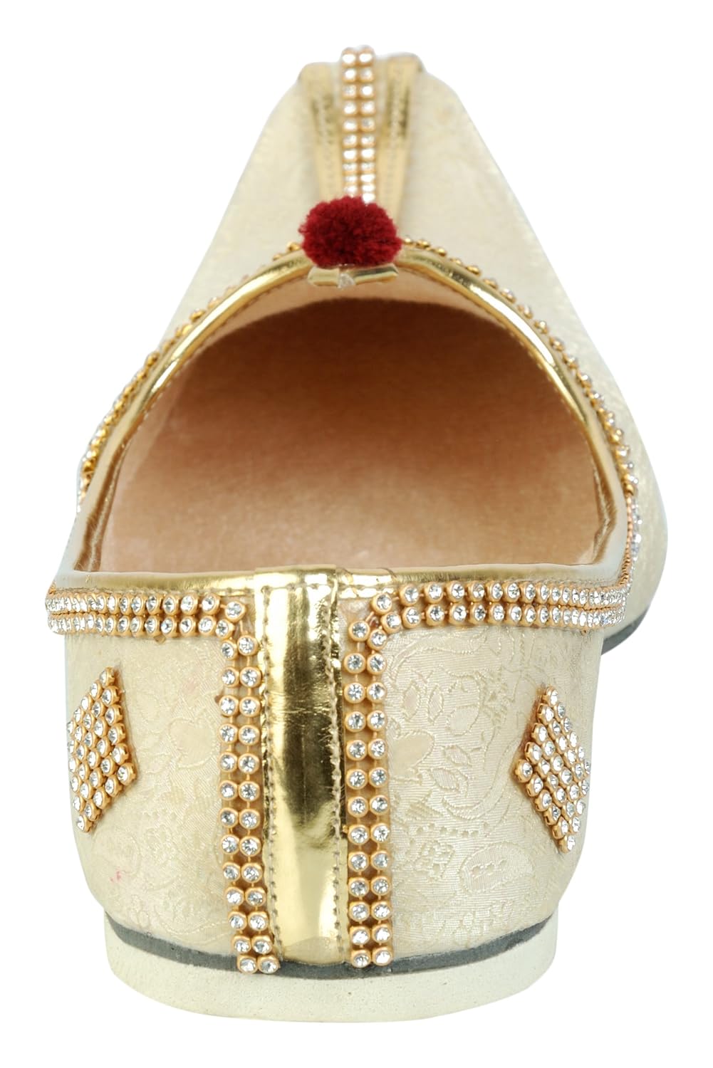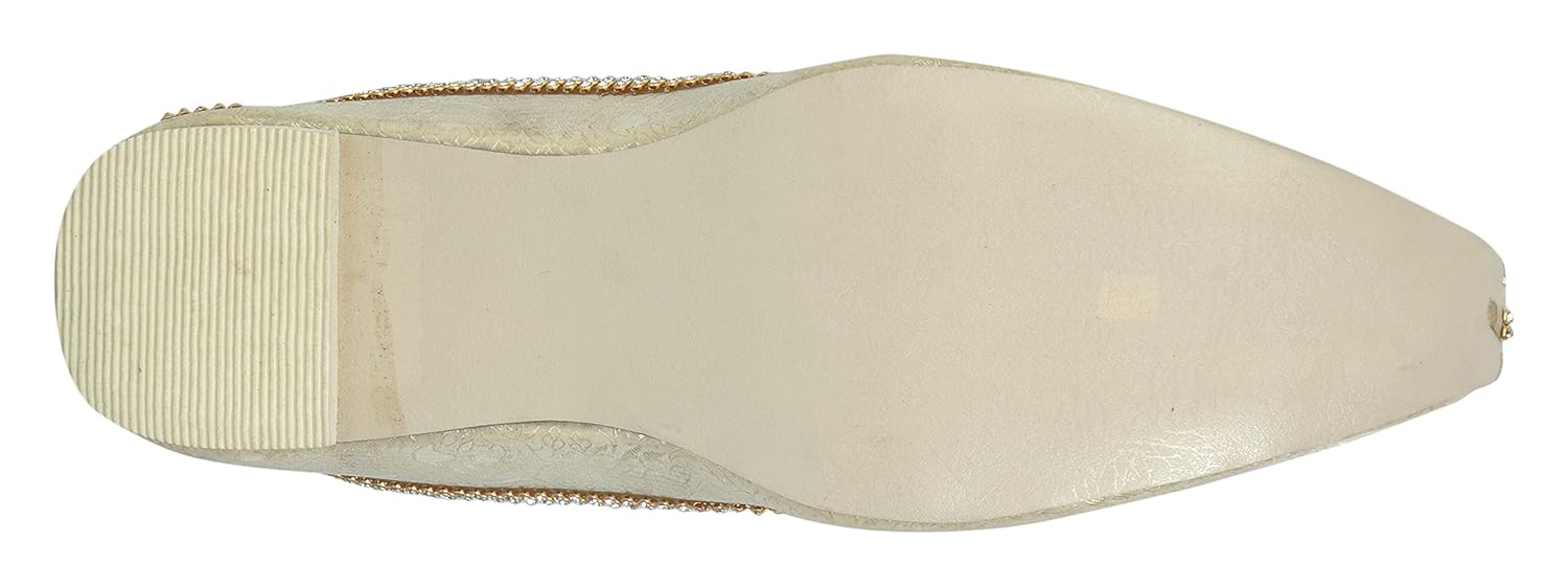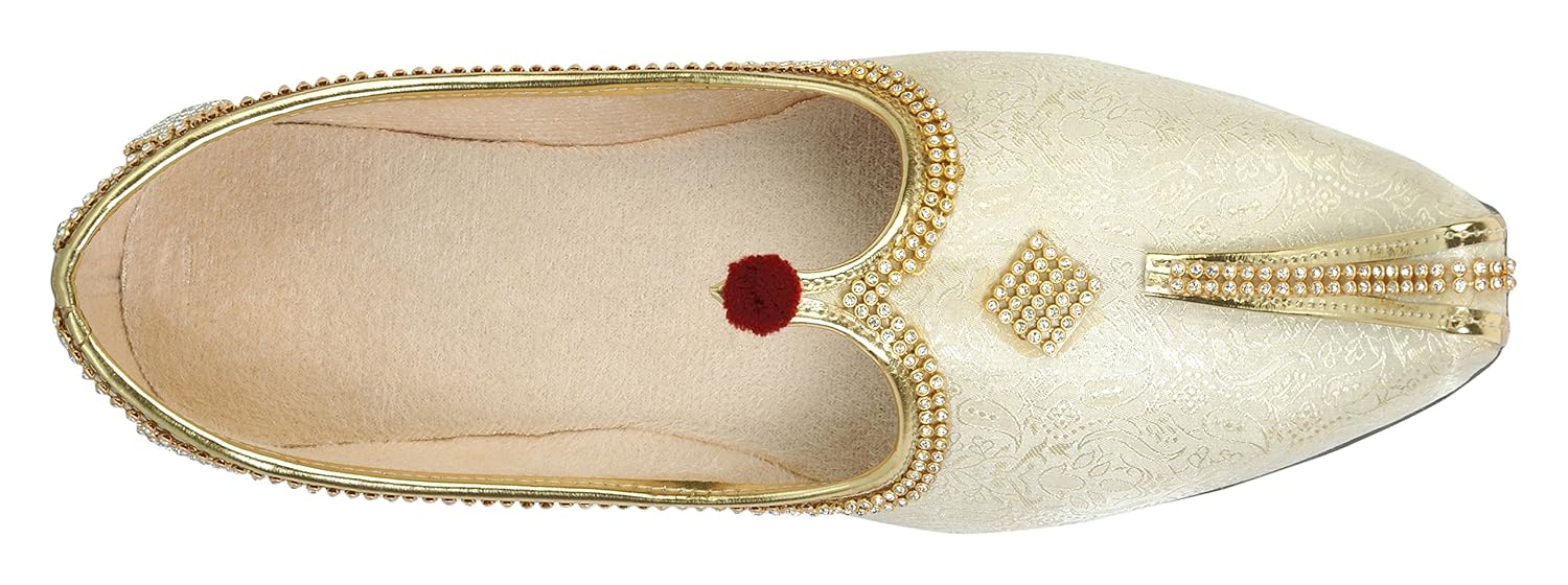 This product is made from synthetic material on the inside and outside and is finished in an attractive gold color. It features rubber sole, slip on closure, and are designed to be used as traditional wear footwear. Furthermore, it is recommended to be kept away from extreme heat and corrosive liquids to avoid damage. |