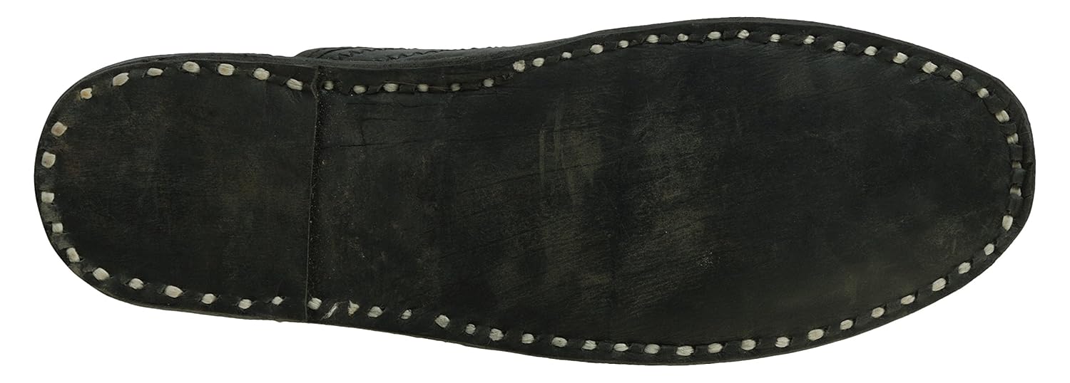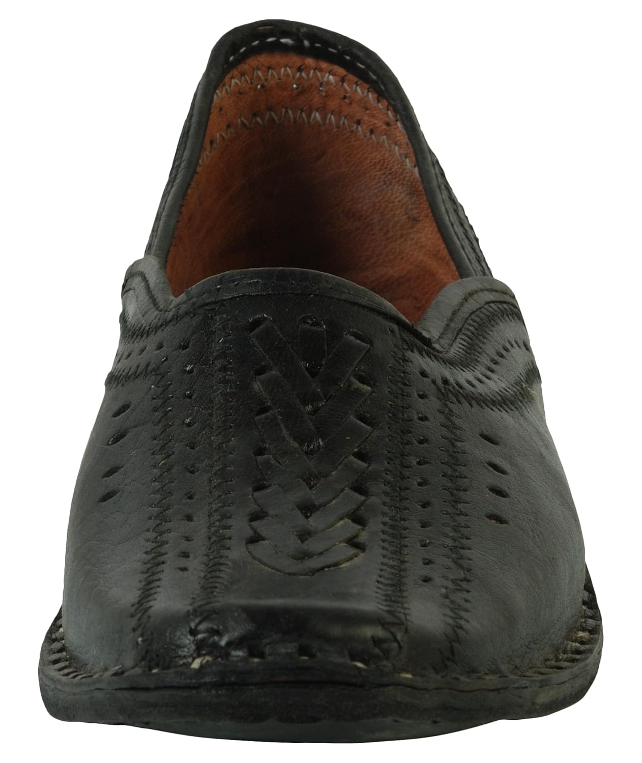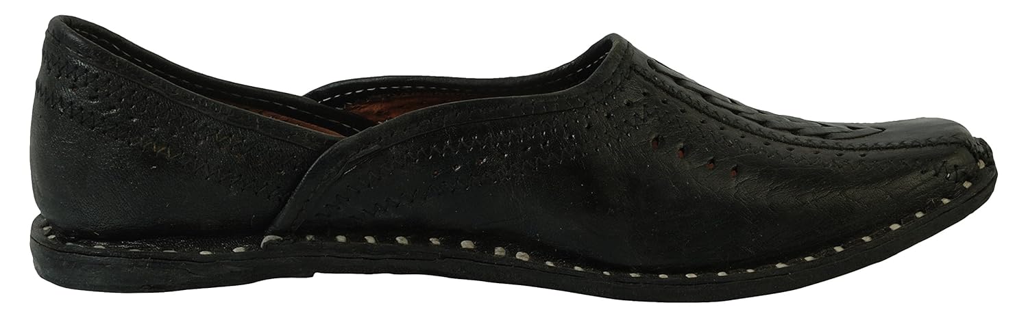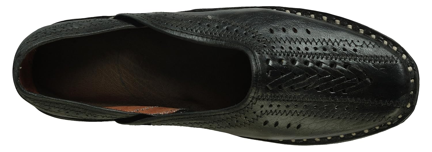 This product is made from leather on the inside and outside and is finished in an attractive black color. It features leather sole, slip on closure, and are designed to be used as traditional wear footwear. Furthermore, it is recommended to be kept away from extreme heat and corrosive liquids to avoid damage. Care Instruction: Using a dry soft-bristled brush or dry soft cloth remove any excess dirt. Make a mixture of a small amount of laundry soap and warm water. Dip a soft sponge into the laundry soap mixture and gently clean the affected areas. Rinse the soap out of the sponge with warm water and then use the sponge to gently remove any excess detergent from the shoe or sandal. Allow the shoe or sandal to air dry in the shade at room temperature. |
