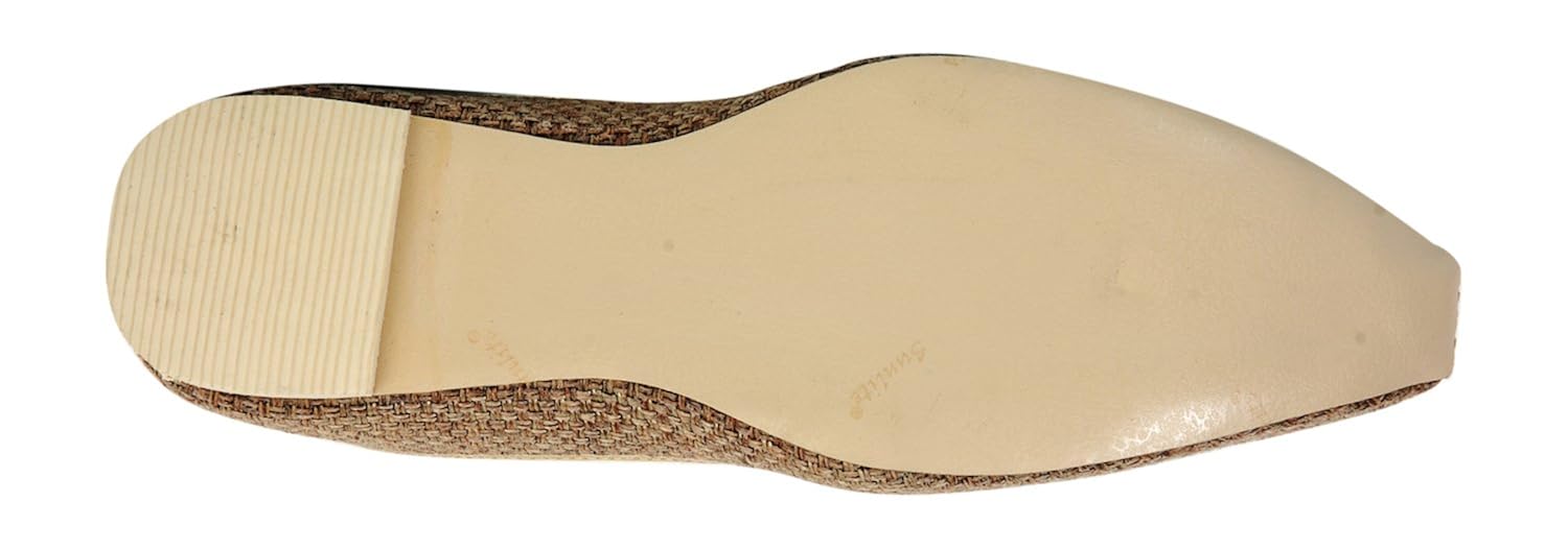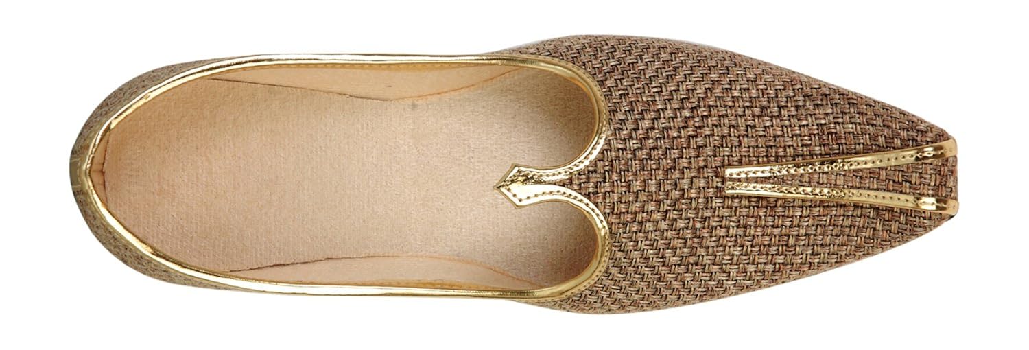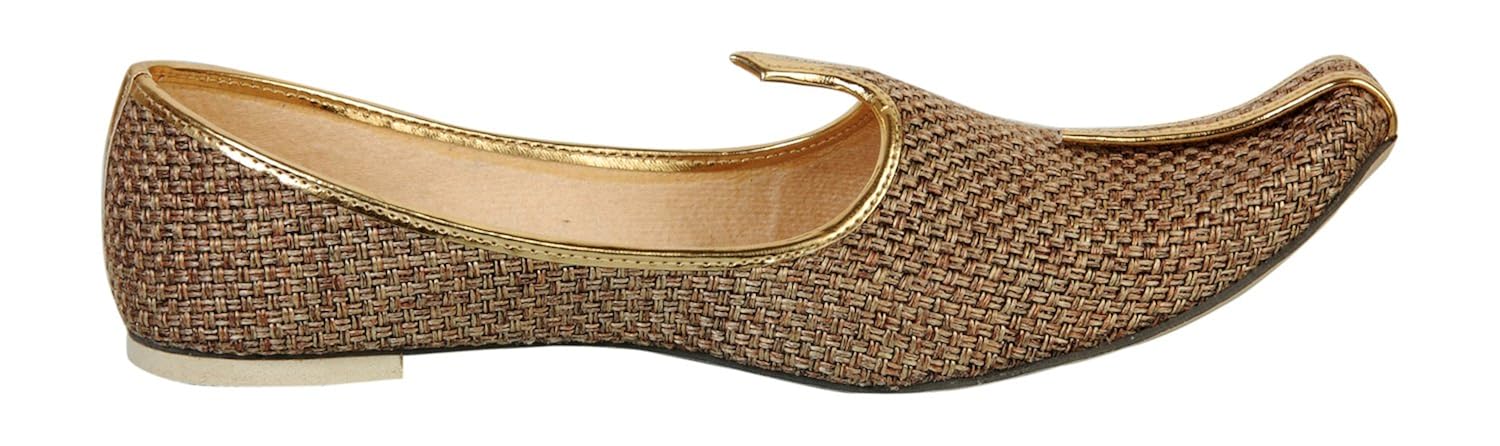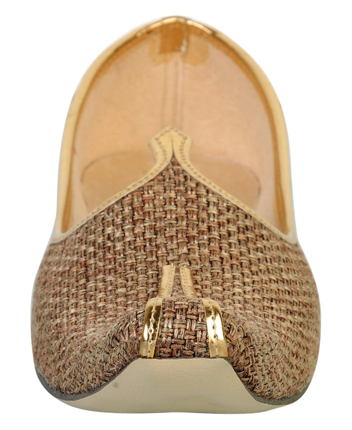 This product is made from jute on the outside and synthetic material on the inside and is finished in an attractive brown color. It features rubber sole, slip on closure, and are designed to be used as traditional wear footwear. Furthermore, it is recommended to be kept away from extreme heat and corrosive liquids to avoid damage. |