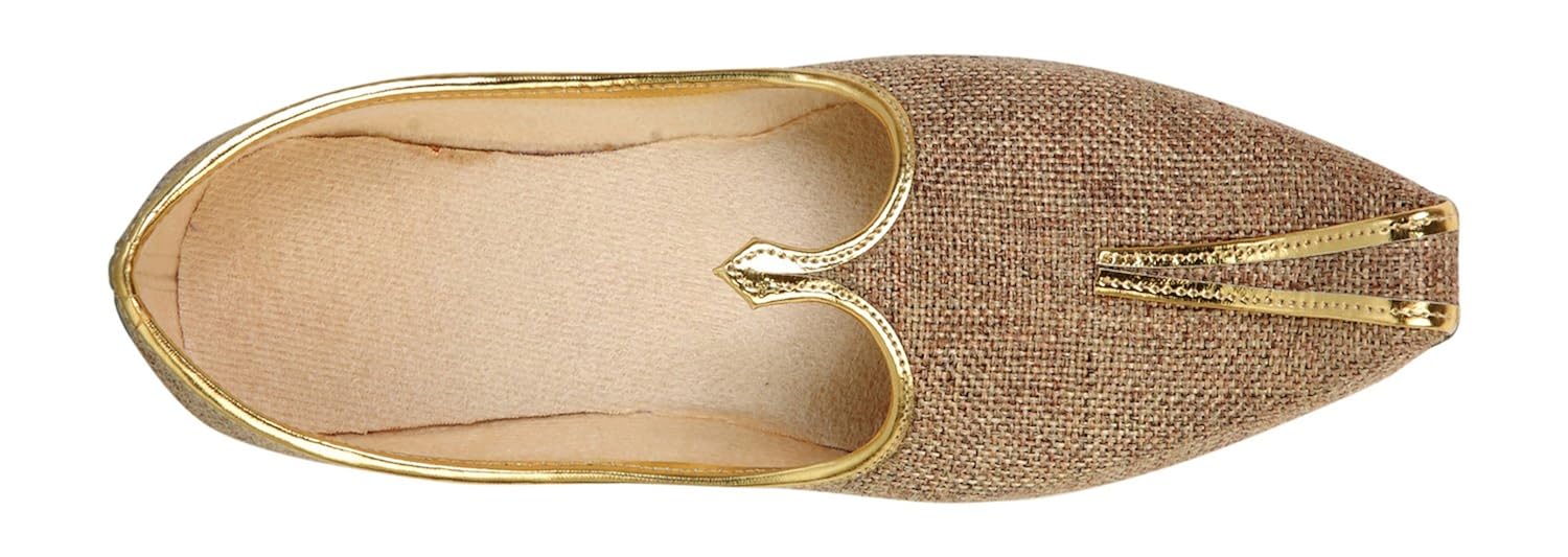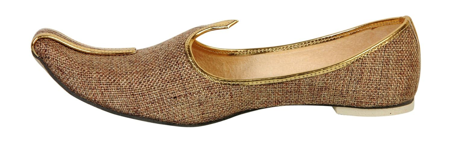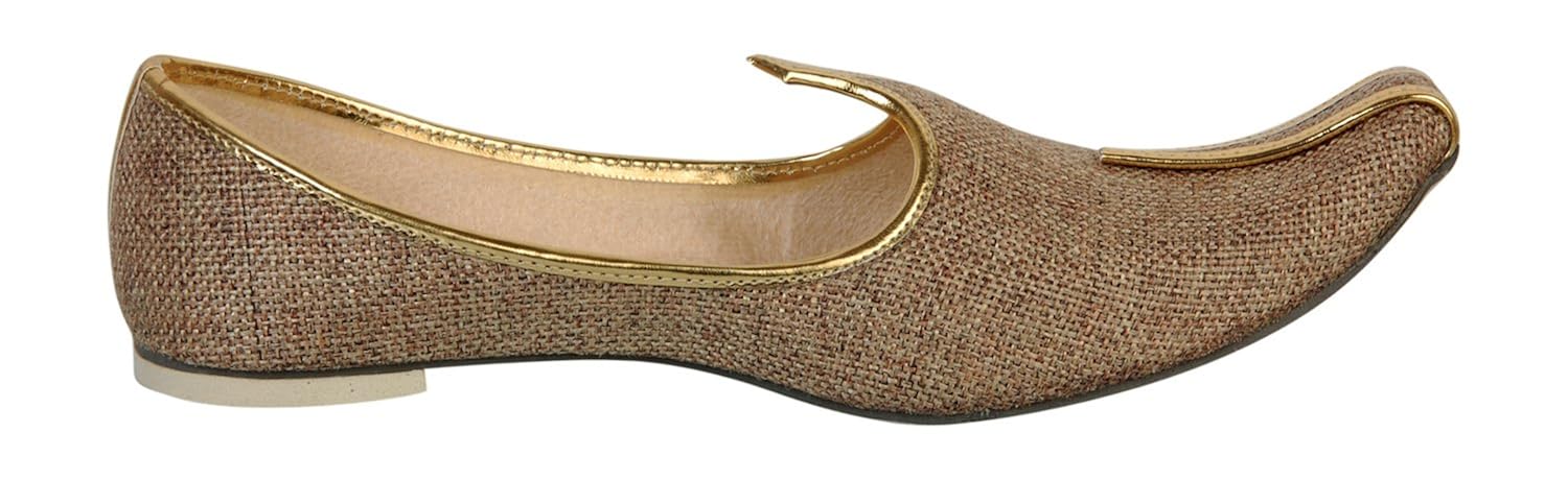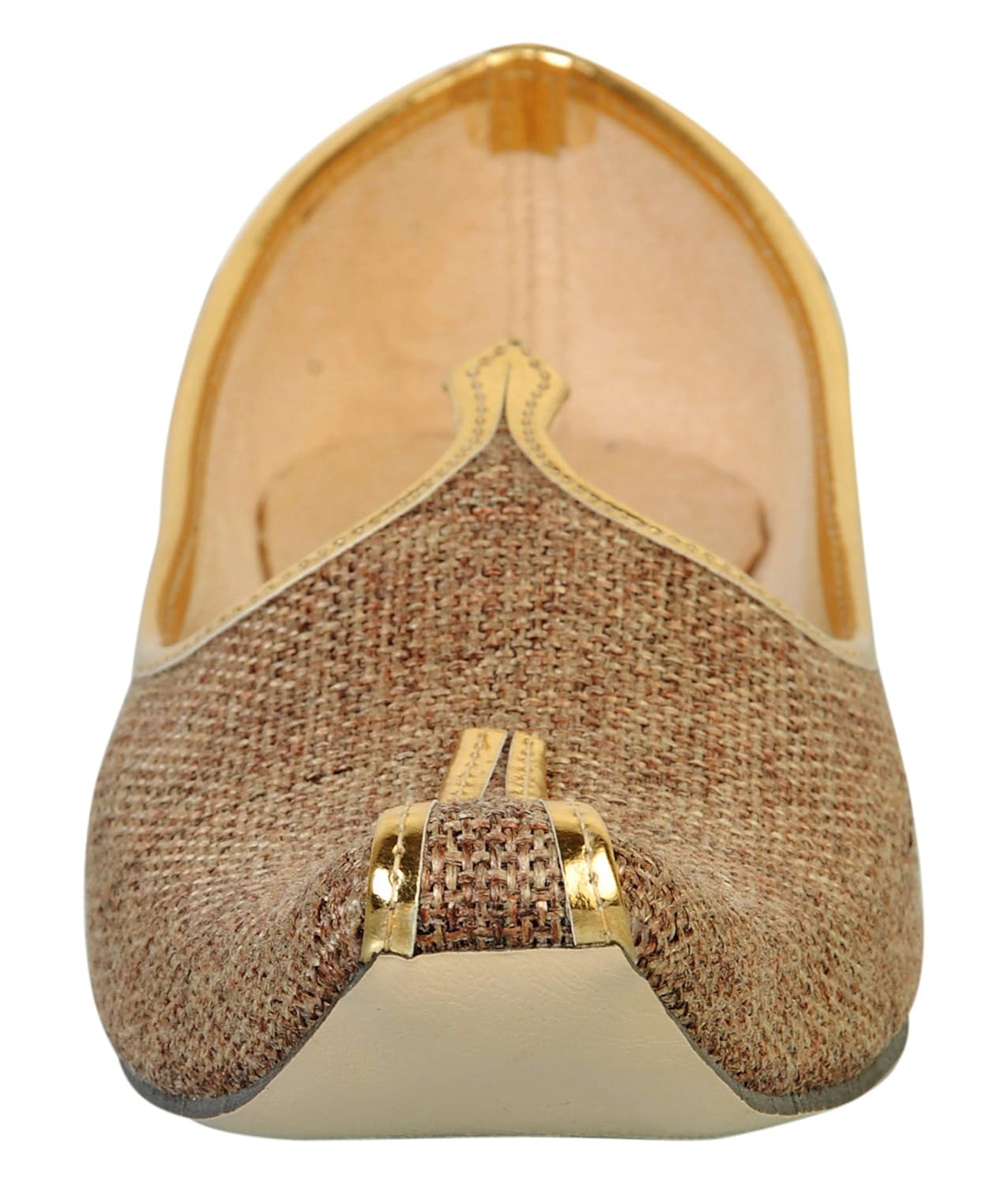 This product is made from jute on the outside and synthetic material on the inside and is finished in an attractive brown color. It features rubber sole, slip on closure, and are designed to be used as traditional wear footwear. Furthermore, it is recommended to be kept away from extreme heat and corrosive liquids to avoid damage. |
