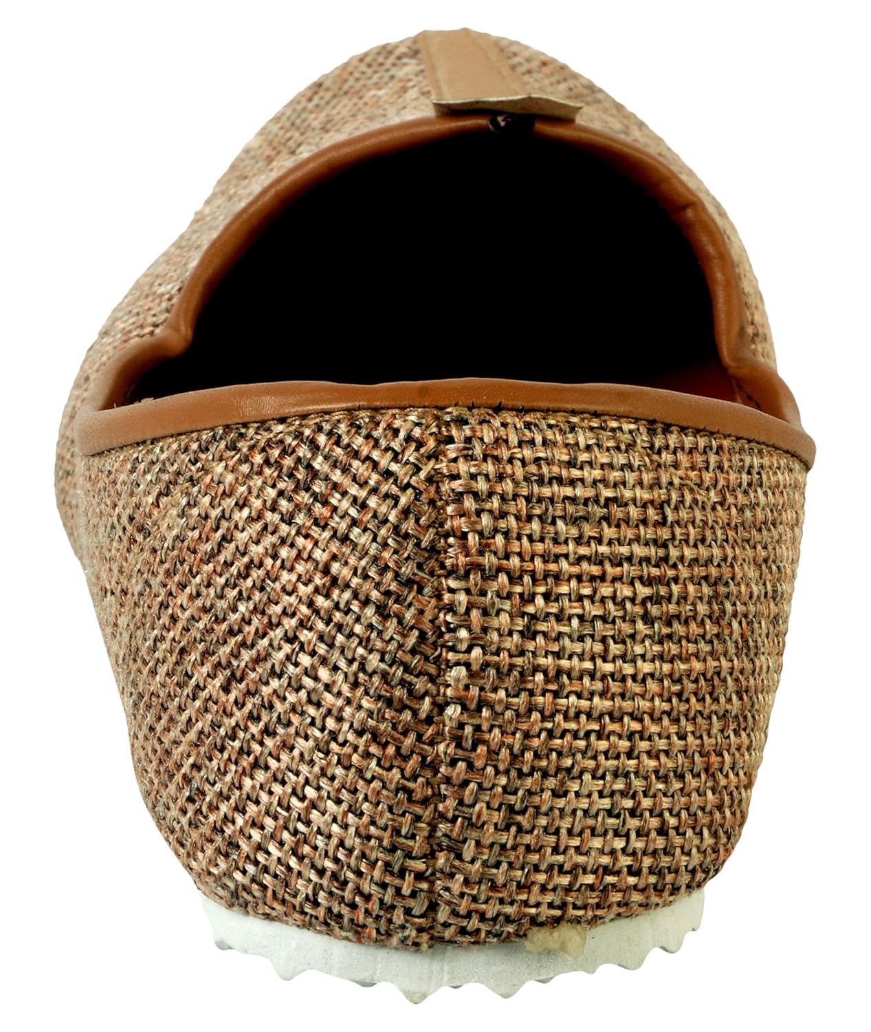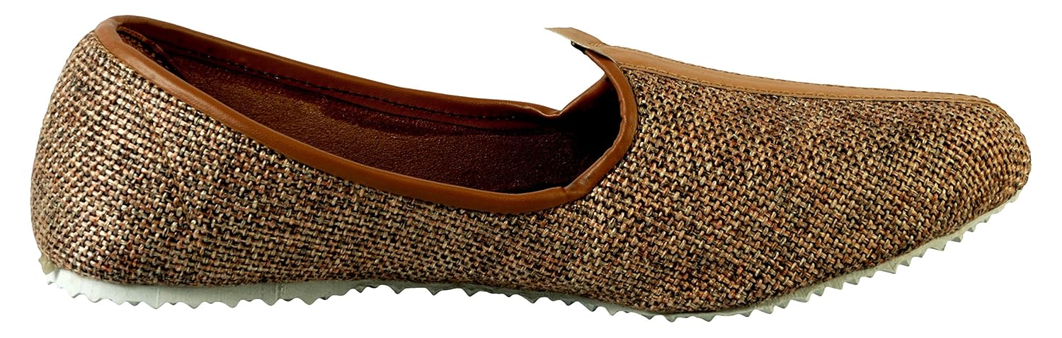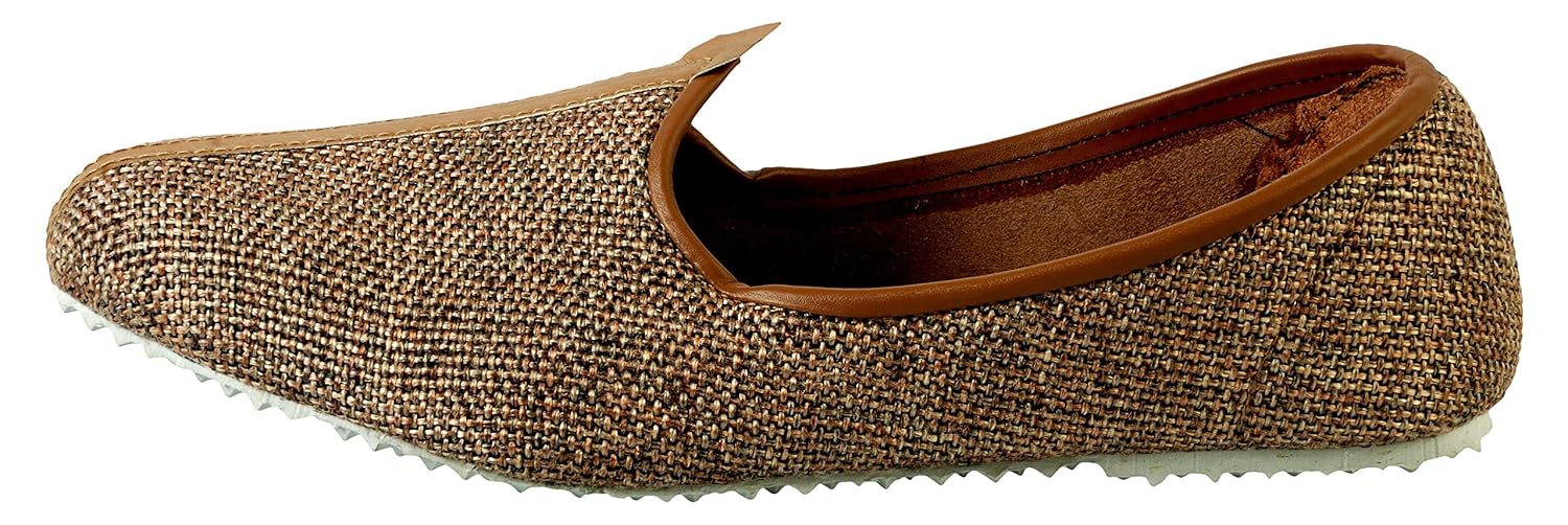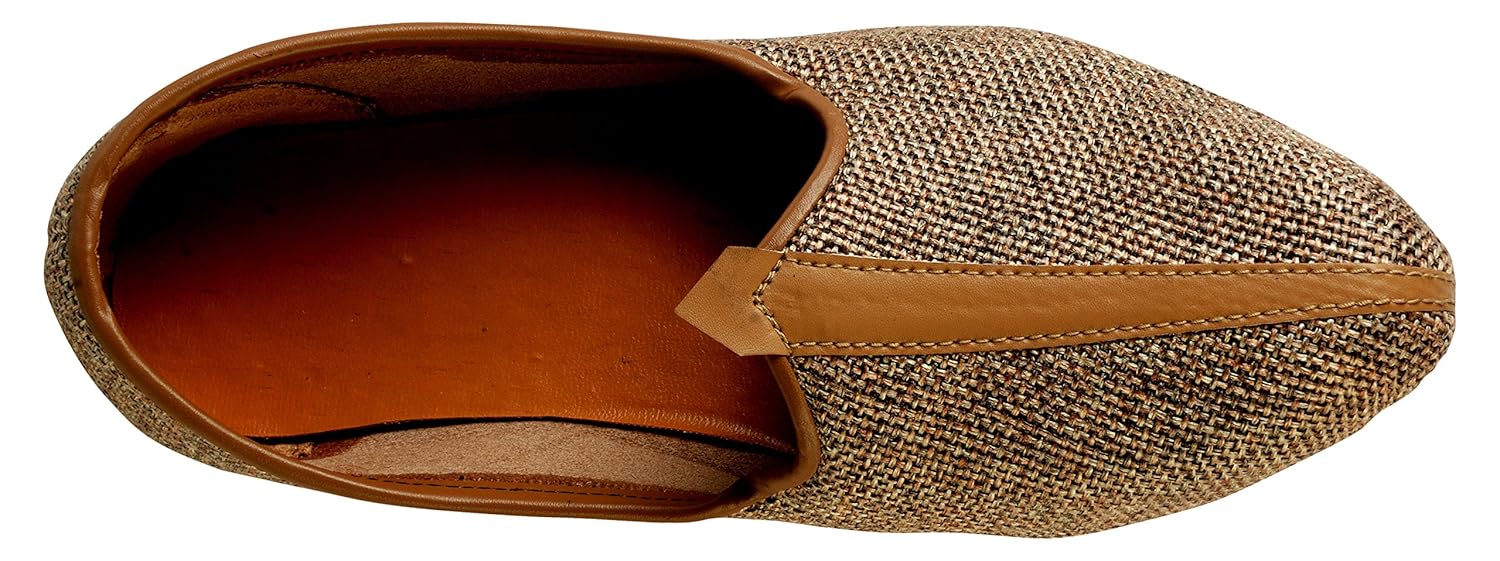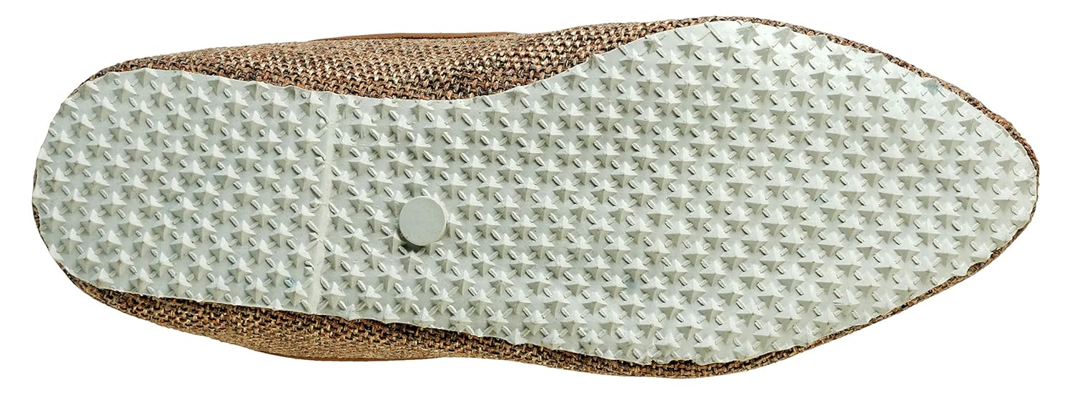 This product is made from jute on the outside and leather on the inside and is finished in an attractive brown color. It features rubber sole, slip on closure, and are designed to be used as traditional wear footwear. Furthermore, it is recommended to be kept away from extreme heat and corrosive liquids to avoid damage. Care Instruction: Using a dry soft-bristled brush or dry soft cloth remove any excess dirt. Make a mixture of a small amount of laundry soap and warm water. Dip a soft sponge into the laundry soap mixture and gently clean the affected areas. Rinse the soap out of the sponge with warm water and then use the sponge to gently remove any excess detergent from the shoe or sandal. Allow the shoe or sandal to air dry in the shade at room temperature. |