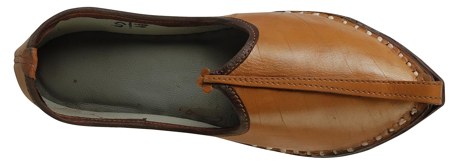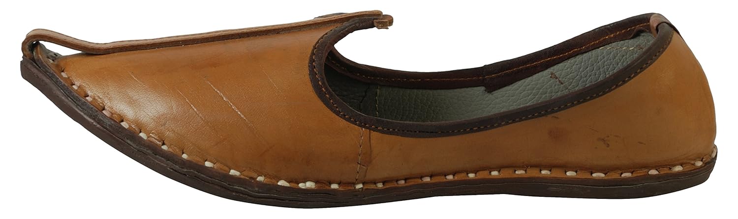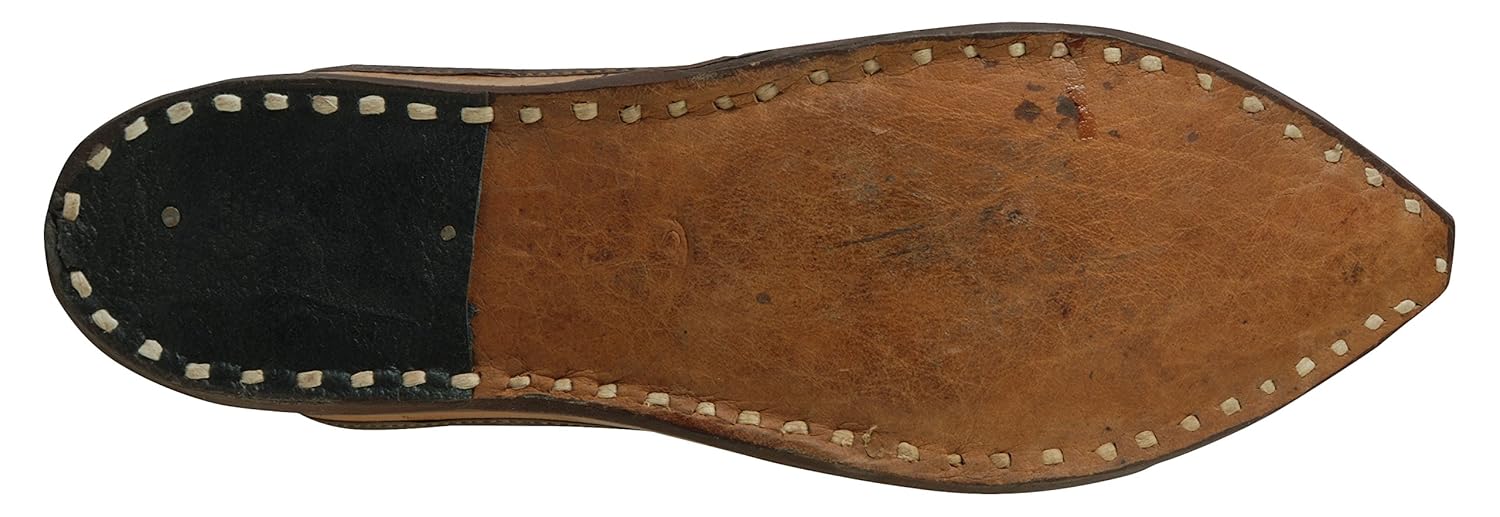This product is made from leather on the inside and outside and is finished in an attractive brown color. It features leather sole, slip on closure, and are designed to be used as traditional wear footwear. Furthermore, it is recommended to be kept away from extreme heat and corrosive liquids to avoid damage. Care Instruction: Using a dry soft-bristled brush or dry soft cloth remove any excess dirt. Make a mixture of a small amount of laundry soap and warm water. Dip a soft sponge into the laundry soap mixture and gently clean the affected areas. Rinse the soap out of the sponge with warm water and then use the sponge to gently remove any excess detergent from the shoe or sandal. Allow the shoe or sandal to air dry in the shade at room temperature. |