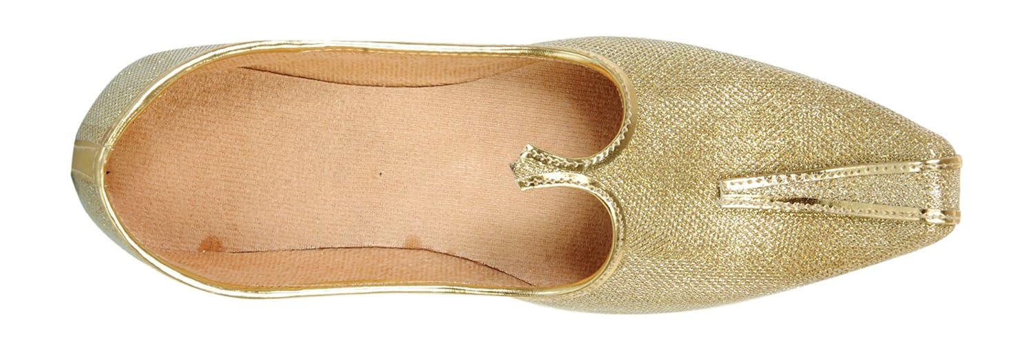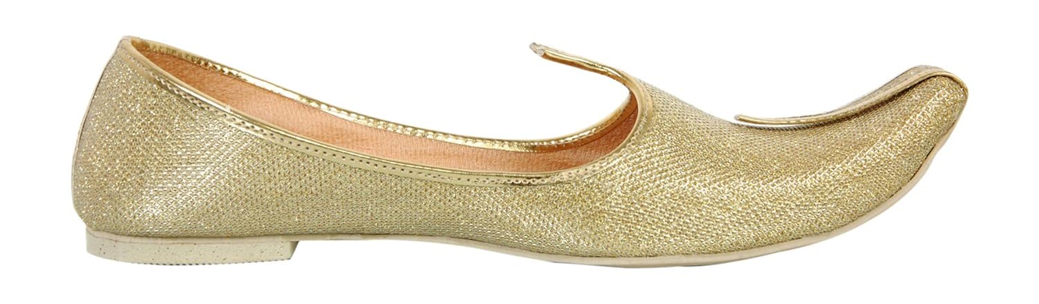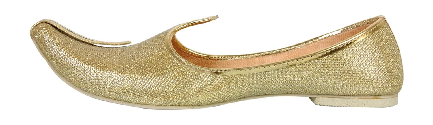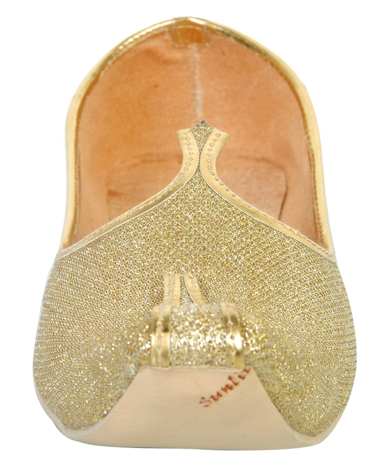 This product is made from synthetic material on the inside and outside and is finished in an attractive gold color. It features rubber sole, slip on closure, and are designed to be used as traditional wear footwear. Furthermore, it is recommended to be kept away from extreme heat and corrosive liquids to avoid damage. |