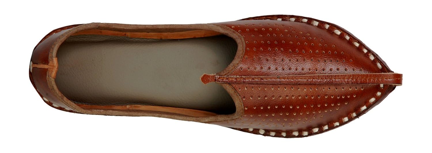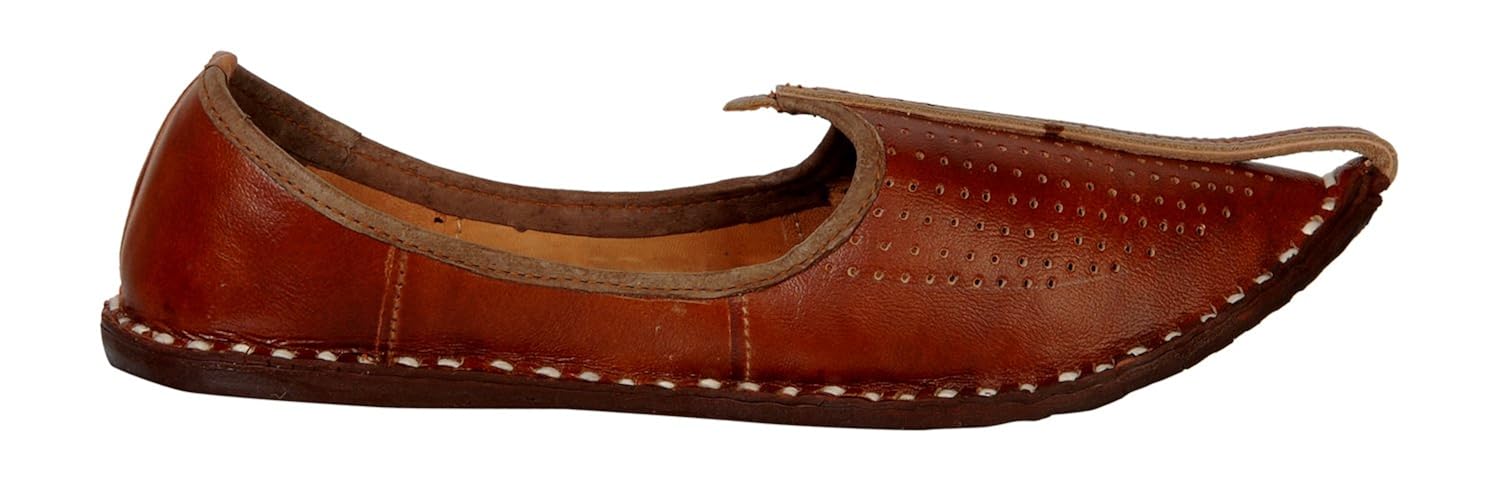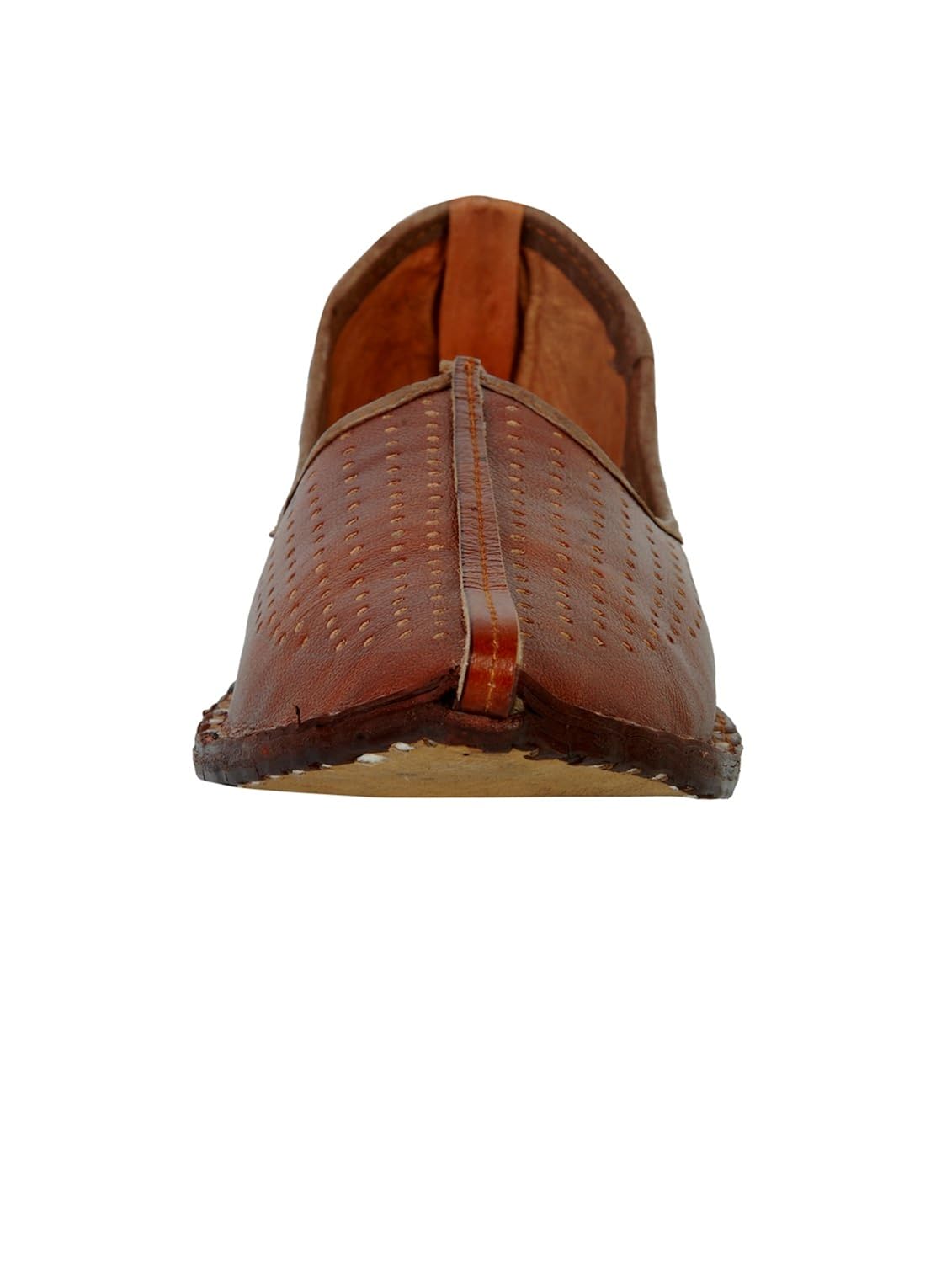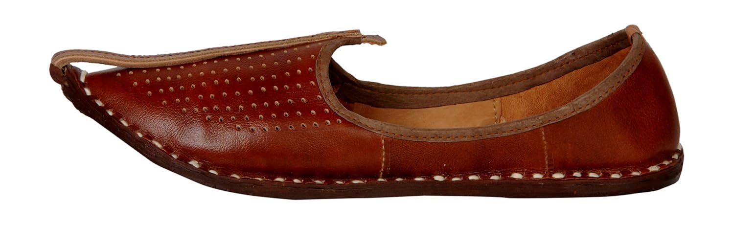 This product is made from leather on the inside and outside and is finished in an attractive brown color. It features leather sole, slip on closure, and are designed to be used as traditional wear footwear. |