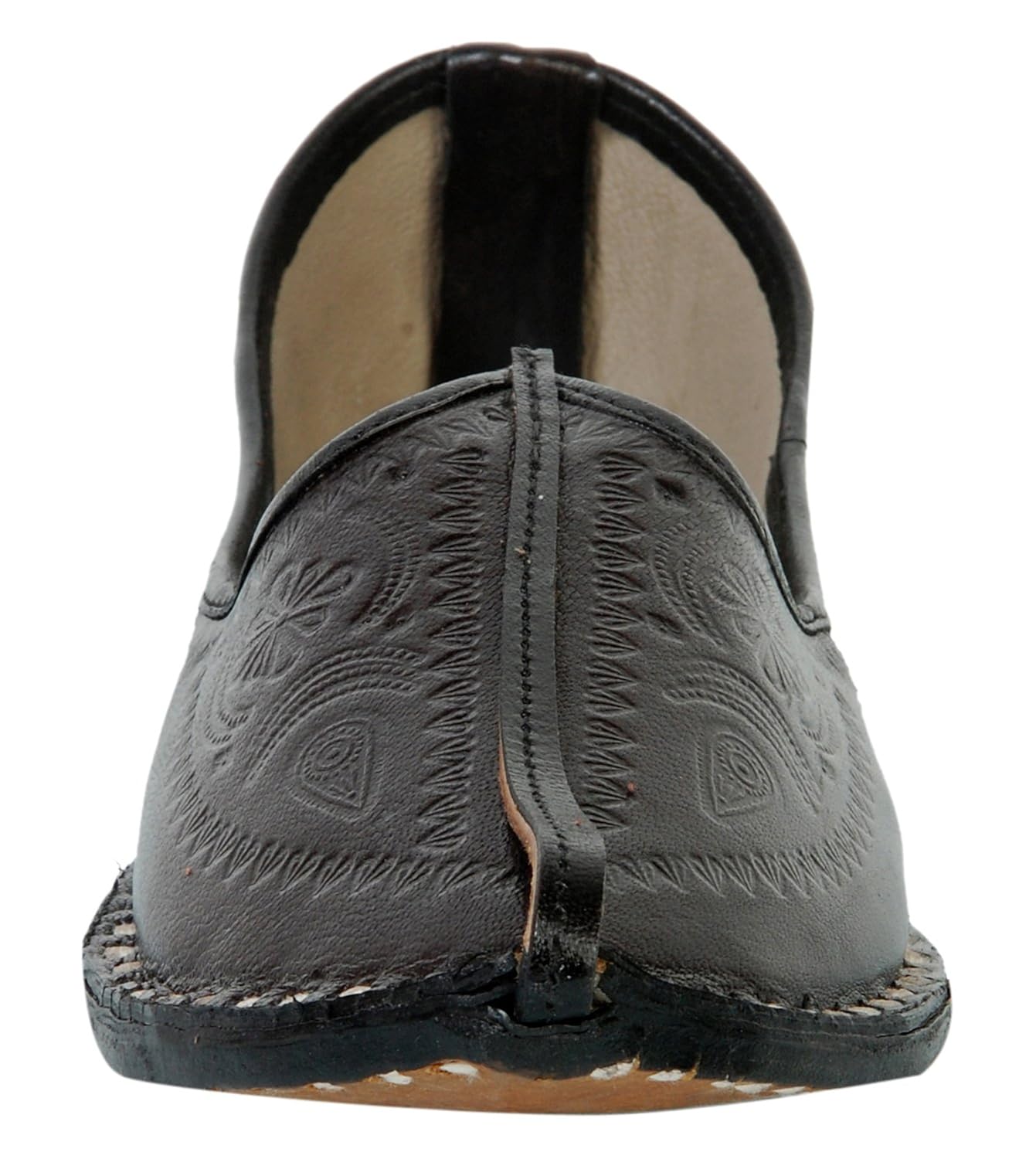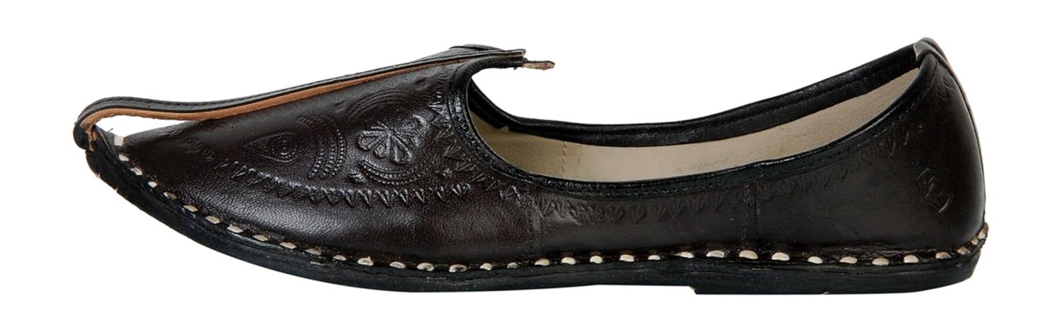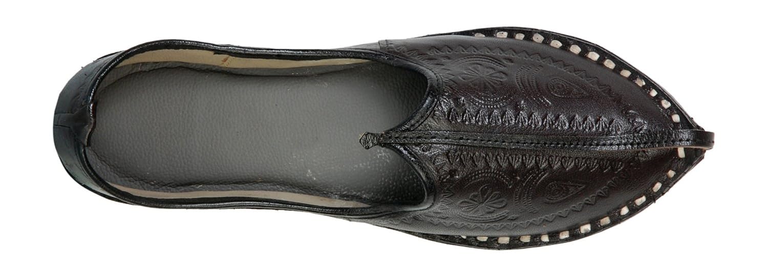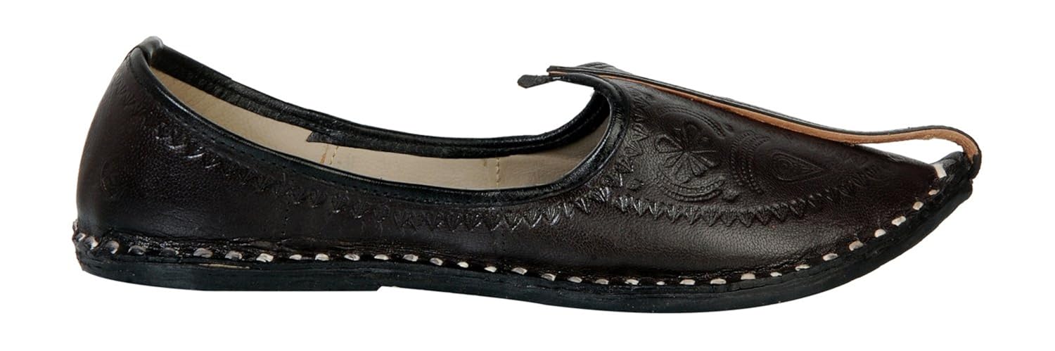 This product is made from leather on the inside and outside and is finished in an attractive black color. It features leather sole, slip on closure, and are designed to be used as traditional wear footwear. |