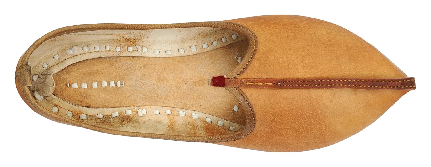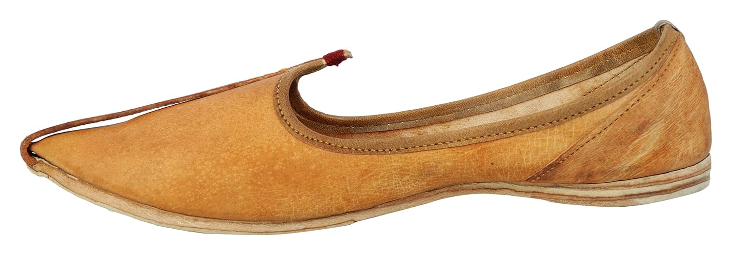 This product is made from leather on the inside and outside and is finished in an attractive brown color. It features leather sole, slip on closure, and are designed to be used as traditional wear footwear. Furthermore, it is recommended to be kept away from extreme heat and corrosive liquids to avoid damage. |