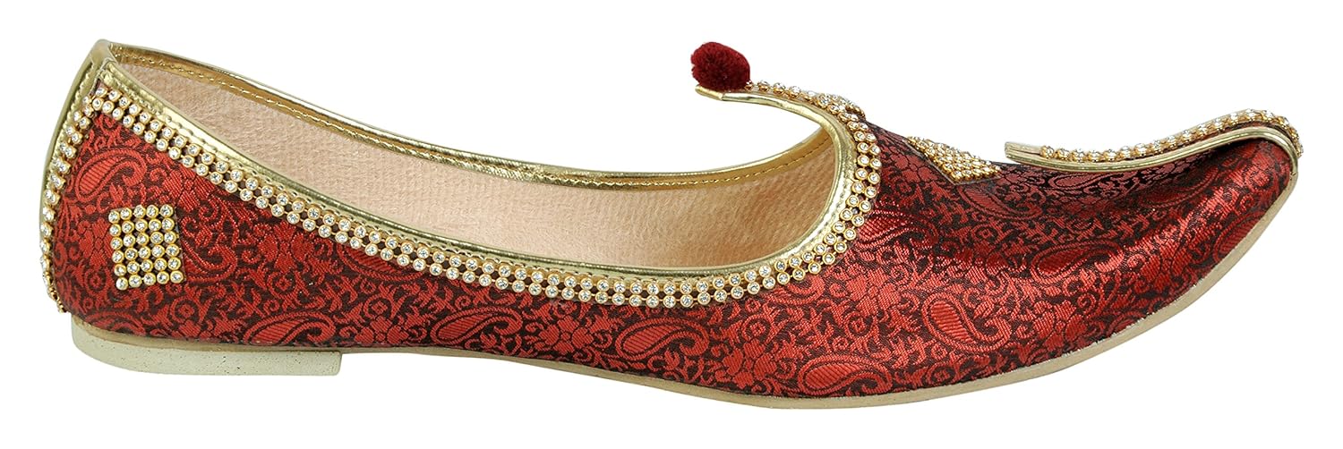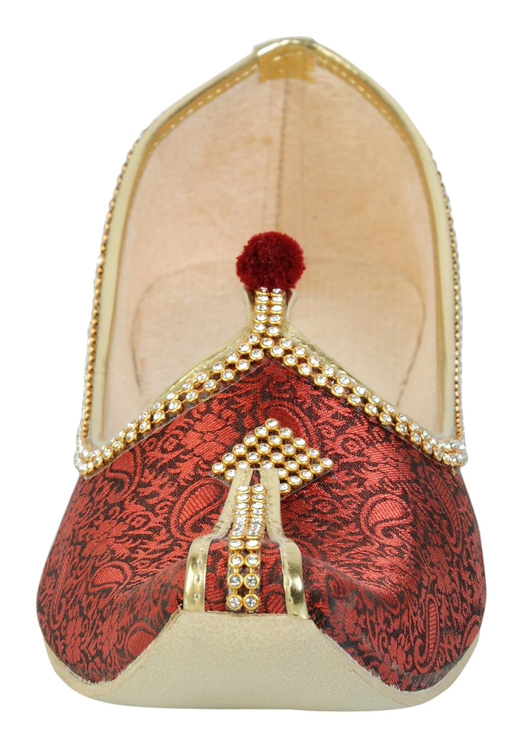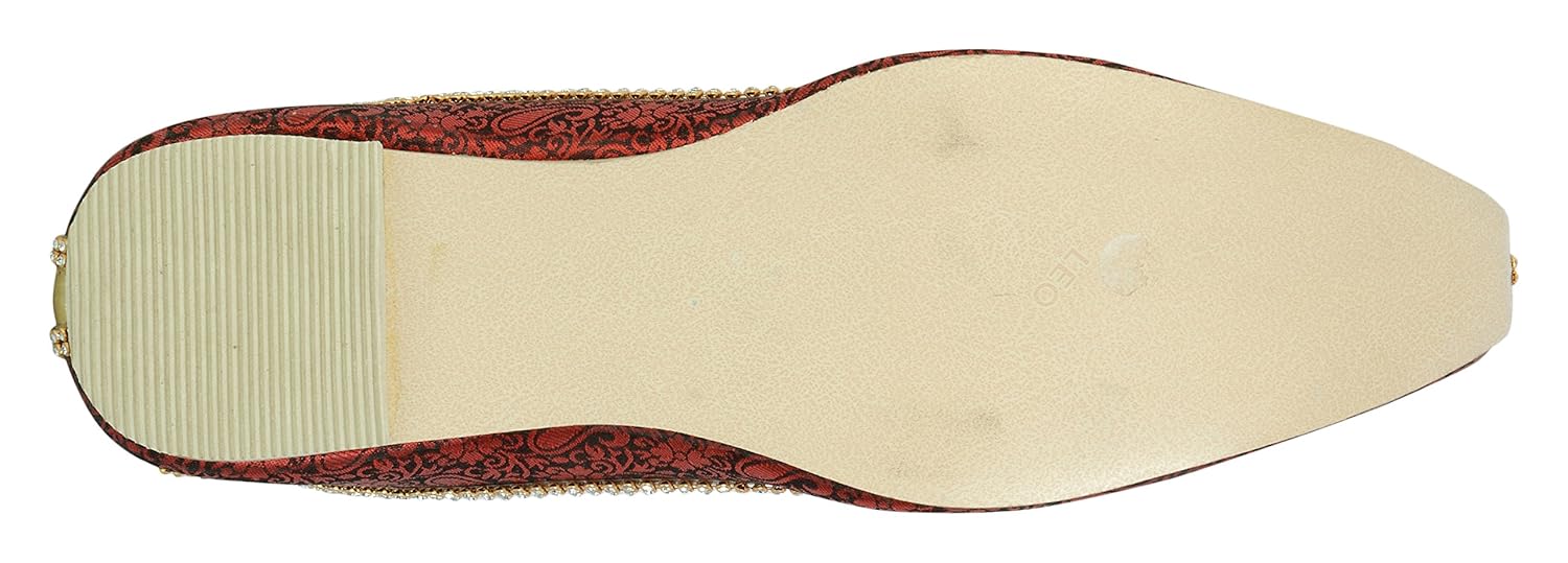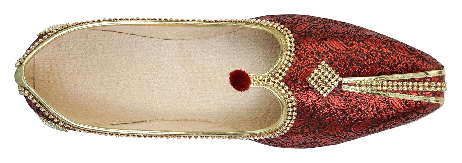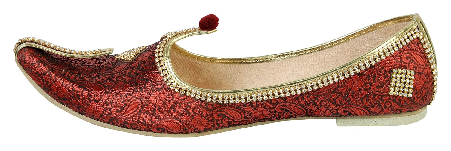 This product is made from synthetic material on the inside and outside and is finished in an attractive red color. It features rubber sole, slip on closure, and are designed to be used as traditional wear footwear. Furthermore, it is recommended to be kept away from extreme heat and corrosive liquids to avoid damage. |