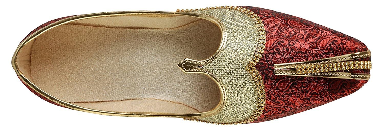 This product is made from synthetic material on the inside and outside and is finished in an attractive red color. It features rubber sole, slip on closure, and are designed to be used as traditional wear footwear. Furthermore, it is recommended to be kept away from extreme heat and corrosive liquids to avoid damage. |