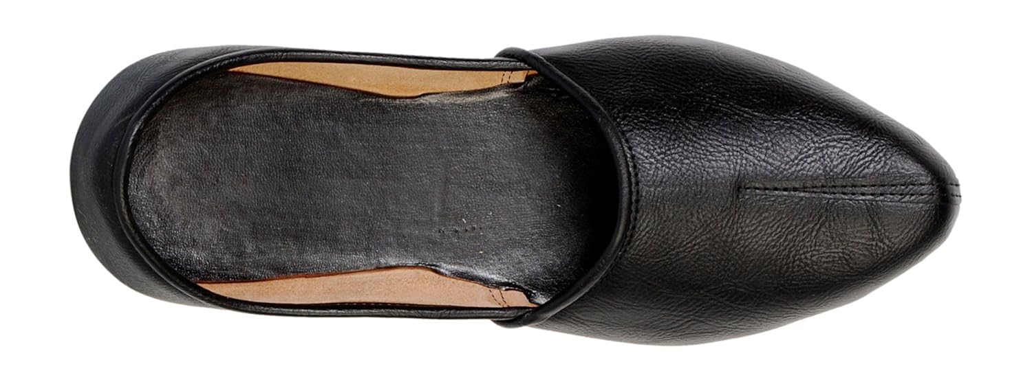 This product is made from leather on the inside and outside and is finished in an attractive black color. It features rubber sole, slip on closure, and are designed to be used as traditional wear footwear. |