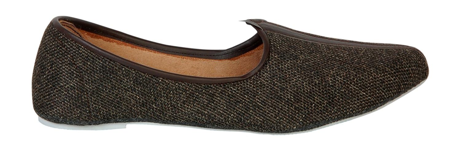 This product is made from synthetic material on the outside and leather on the inside and is finished in an attractive brown color. It features rubber sole, slip on closure, and are designed to be used as traditional wear footwear. |