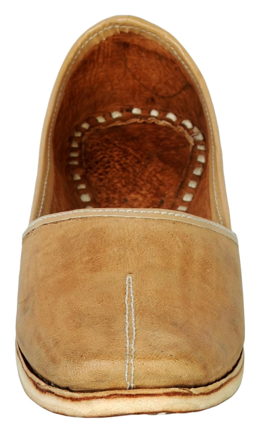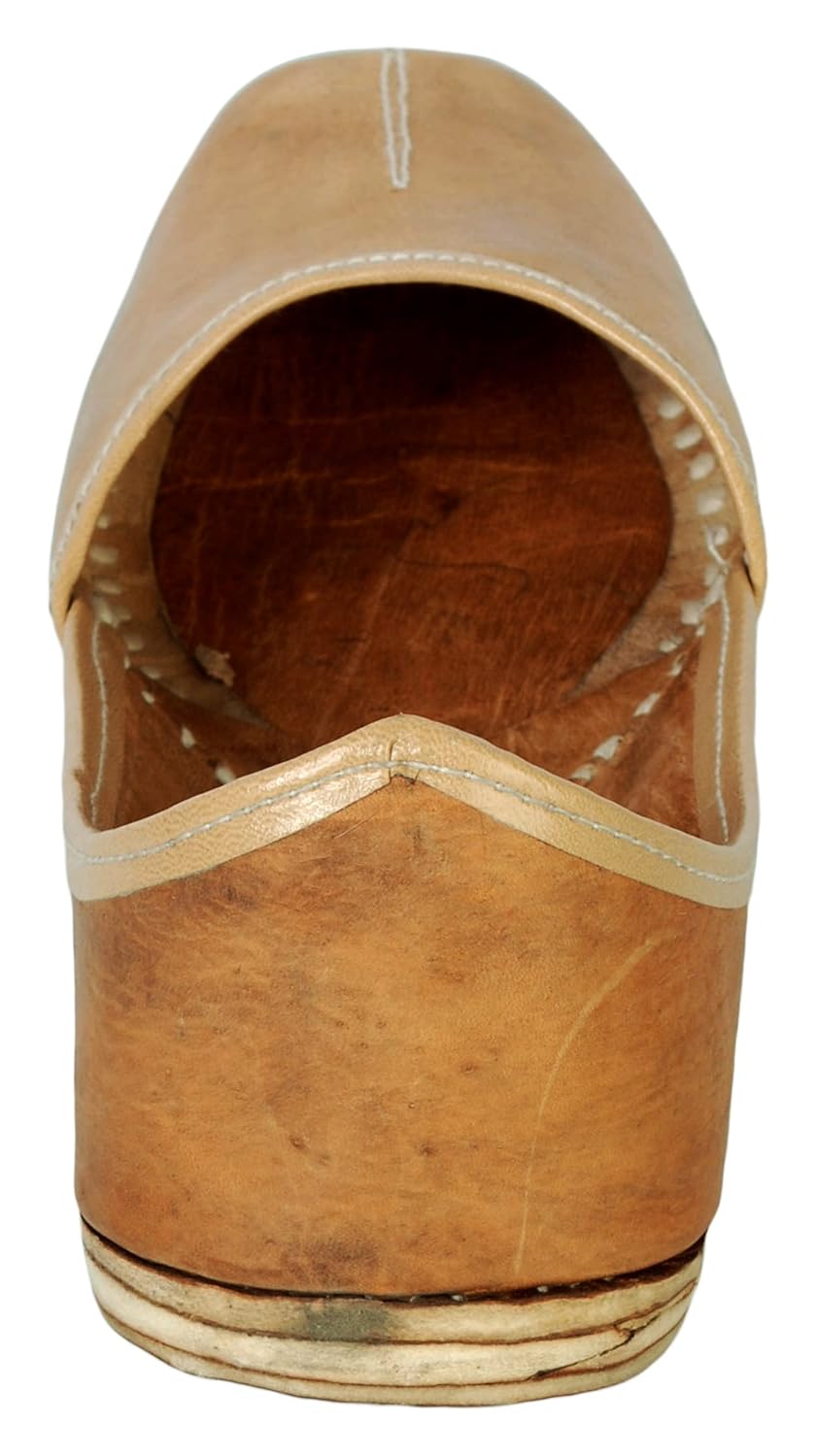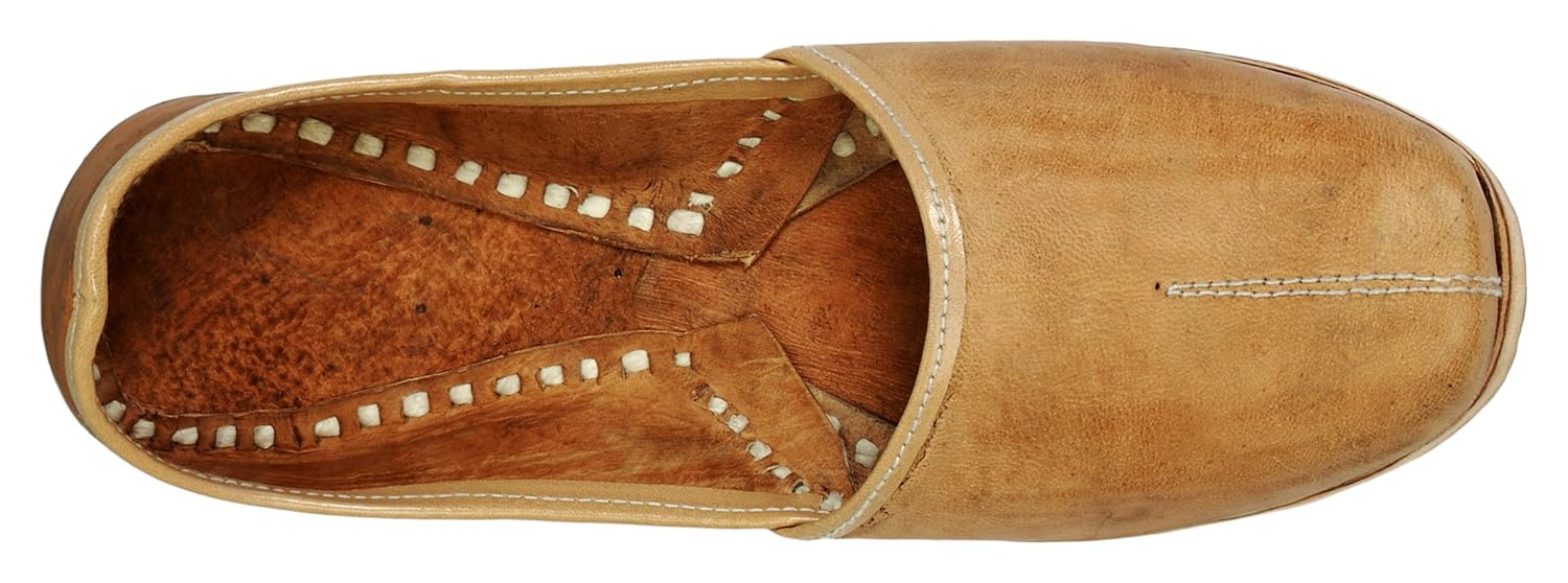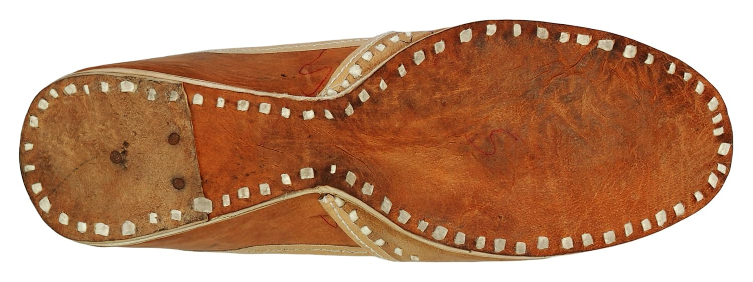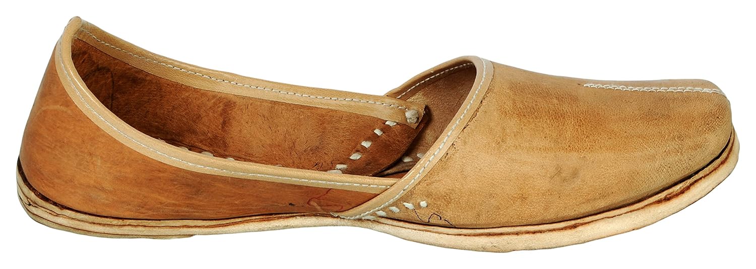 This product is made from leather on the inside and outside and is finished in an attractive brown color. It features leather sole, slip on closure, and are designed to be used as traditional wear footwear. Furthermore, it is recommended to be kept away from extreme heat and corrosive liquids to avoid damage. |