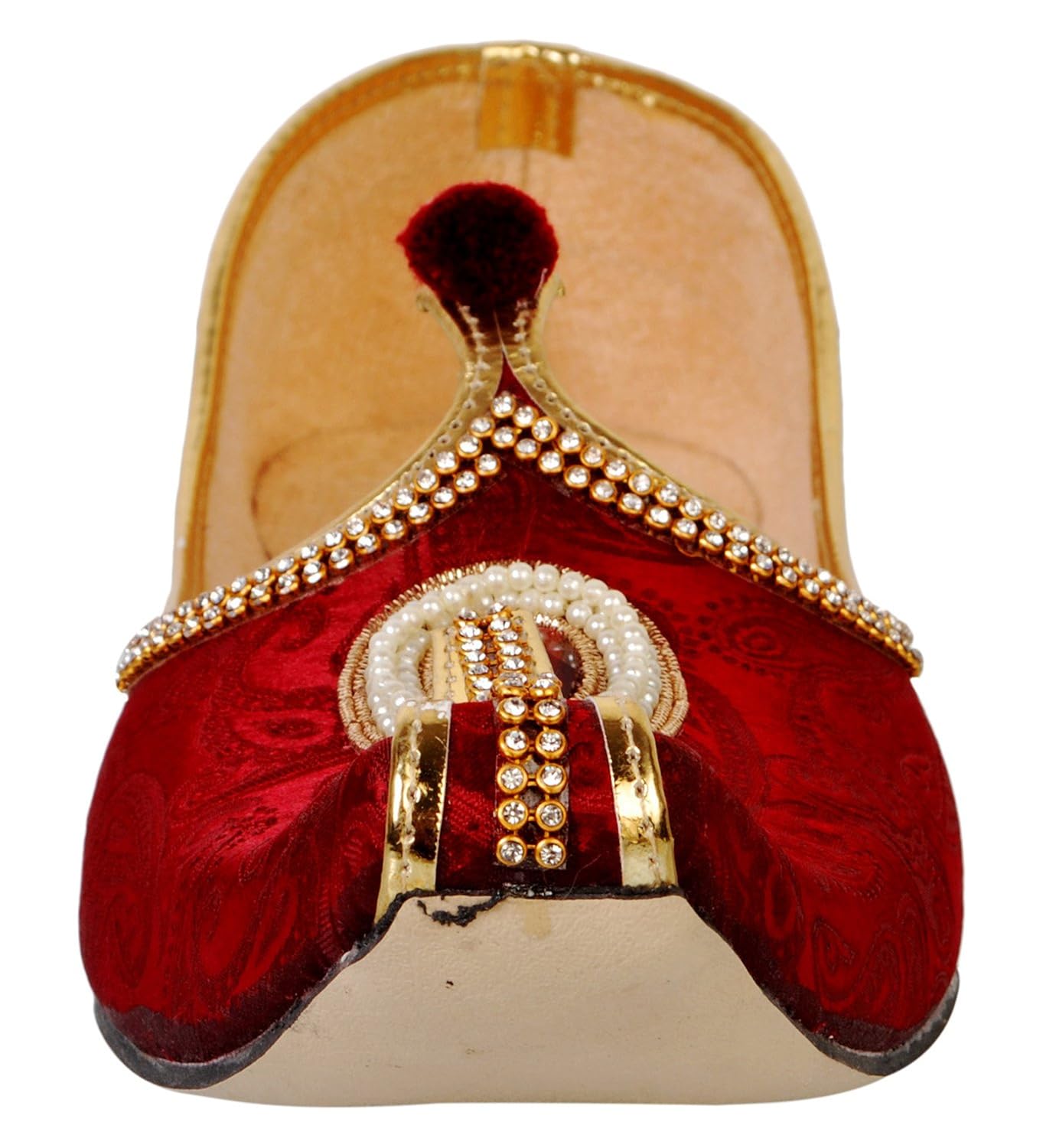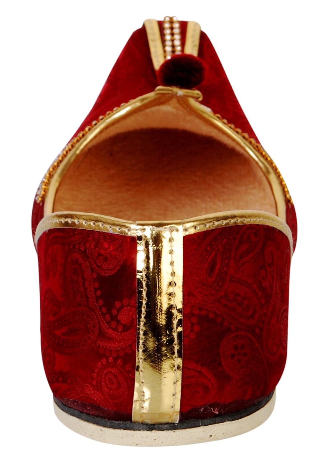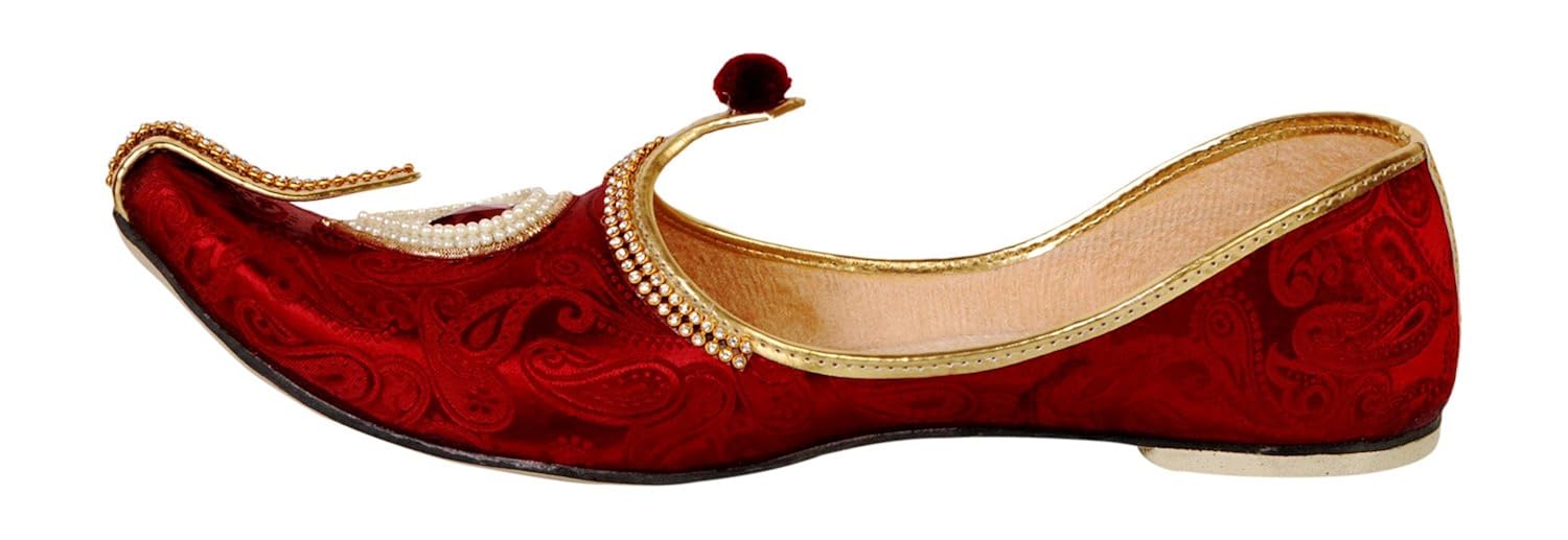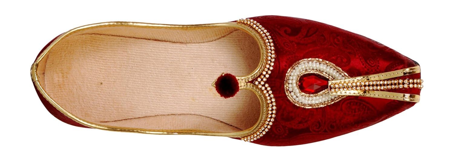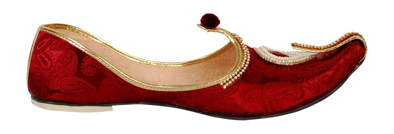 This product is made from synthetic material on the inside and outside and is finished in an attractive red color. It features rubber sole, slip on closure, and are designed to be used as traditional wear footwear. Furthermore, it is recommended to be kept away from extreme heat and corrosive liquids to avoid damage. |