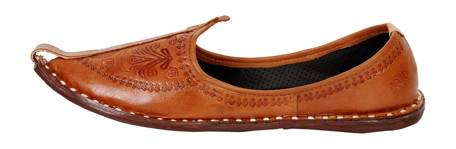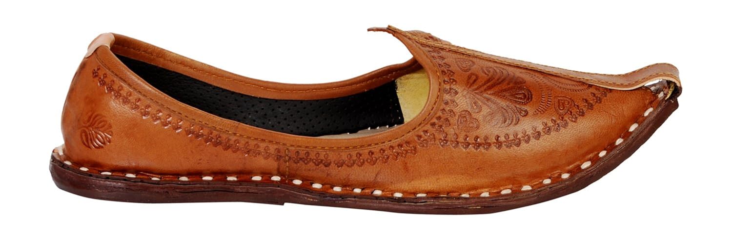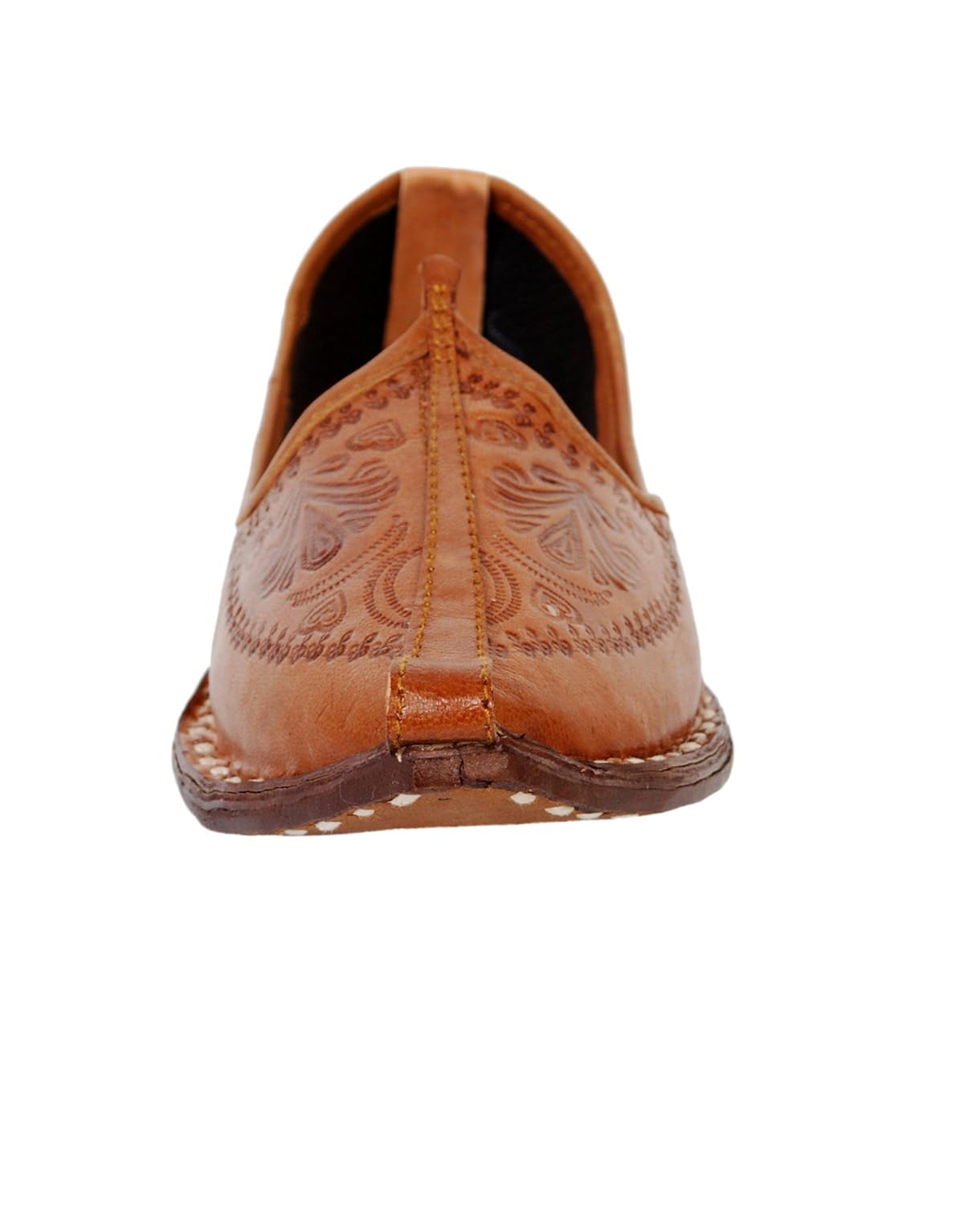 This product is made from leather on the inside and outside and is finished in an attractive brown color. It features leather sole, slip on closure, and are designed to be used as traditional wear footwear. |