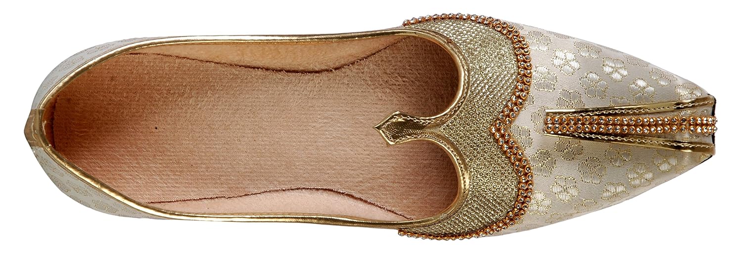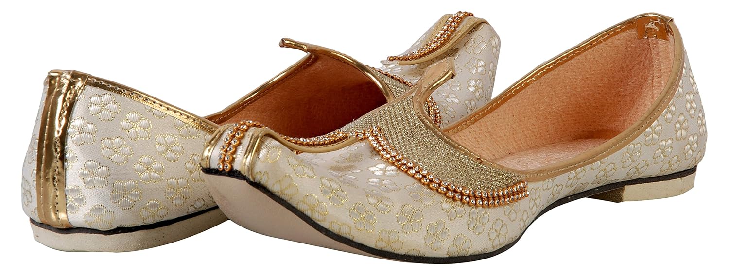 This product is made from synthetic material on the inside and outside and is finished in an attractive gold color. It features rubber sole, slip on closure, and are designed to be used as casual wear footwear. Furthermore, it is recommended to be kept away from extreme heat and corrosive liquids to avoid damage. |