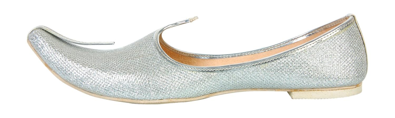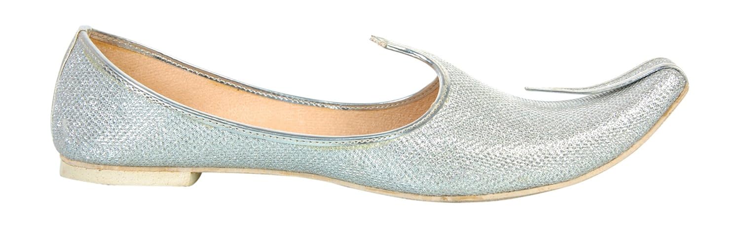This product is made from synthetic material on the inside and outside and is finished in an attractive silver color. It features rubber sole, slip on closure, and are designed to be used as traditional wear footwear. Furthermore, it is recommended to be kept away from extreme heat and corrosive liquids to avoid damage. |