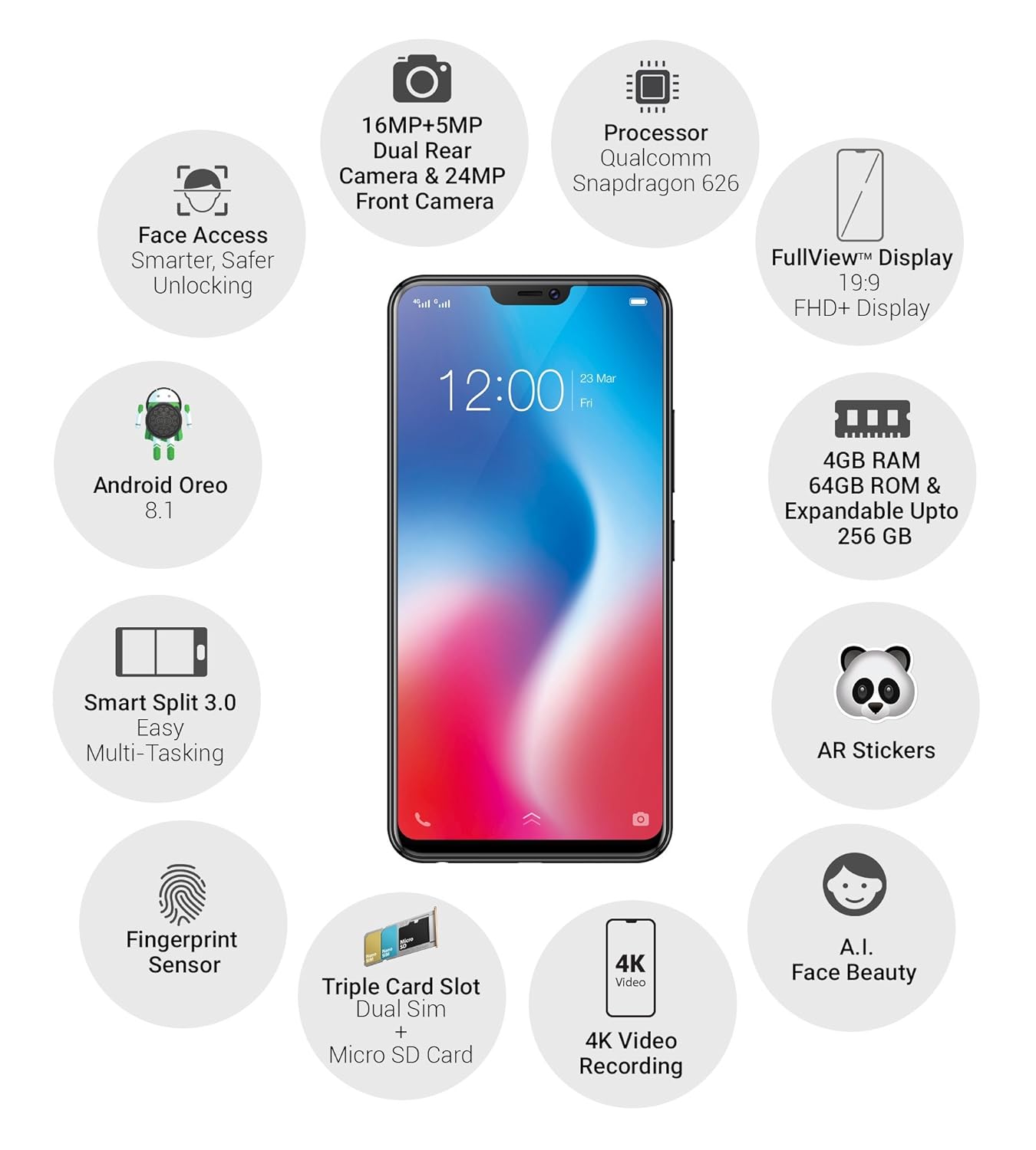 | Brands | Vivo V9 (Pearl Black, 64GB) |