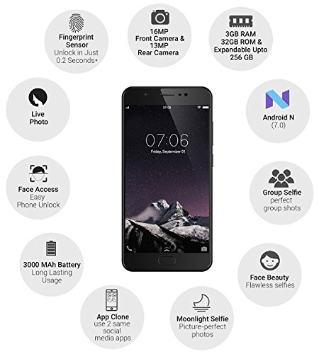 Funtouch 3.2 based on Android v7.0 Nougat operating system with 1.5GHz Mediatek MT6750 octa core processor, ARM MaIi T860 MP2 GPU, 3GB RAM, 32GB internal memory expandable up to 256GB and dual SIM (nano+nano) dual-standby (4G+4G)