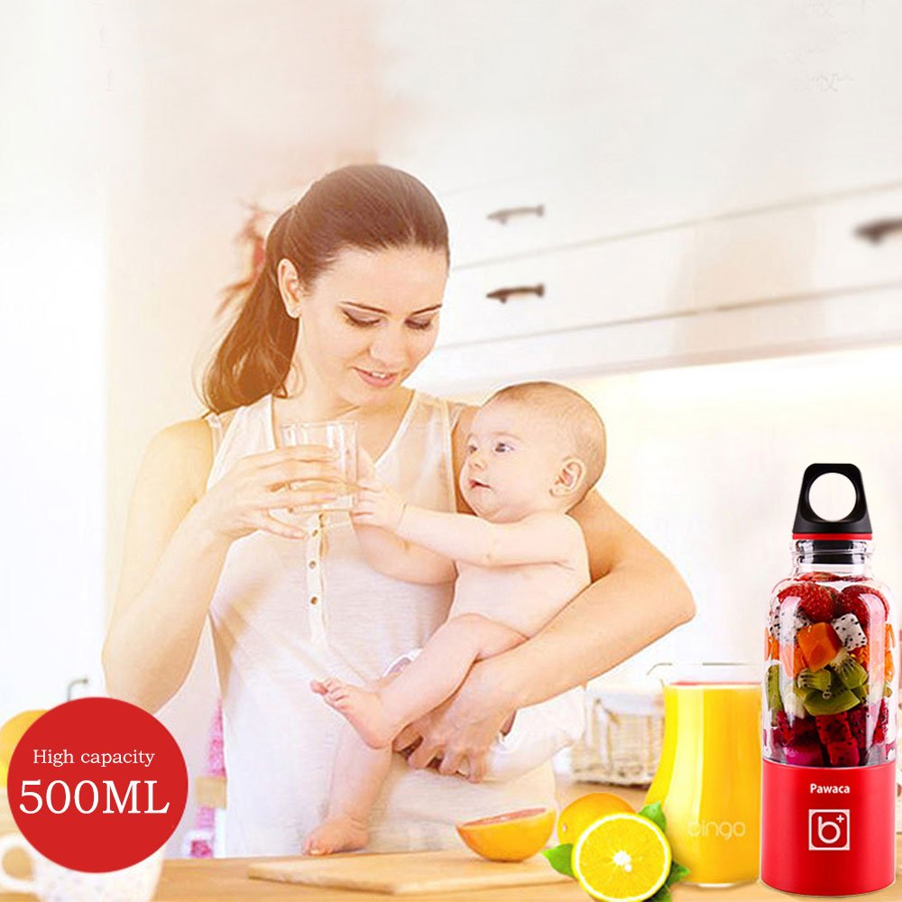 Volwco USB Fruit Juicer Cup,Personal Size Fruit Mixing Machine, Portable Rechargeable Electric Juice Blender for Home Travelling Working Outdoors -(500ML,Multi Color)