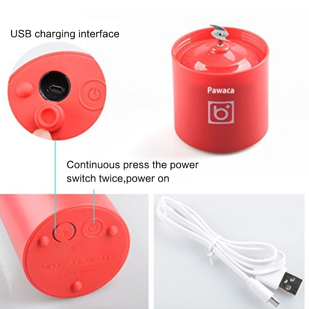 Power: USB Rechargeable, juicer built-in 2600mAh lithium battery, can be quickly charged for 3 hours by Power Bank, PC, Laptop, Computer or other USB devices