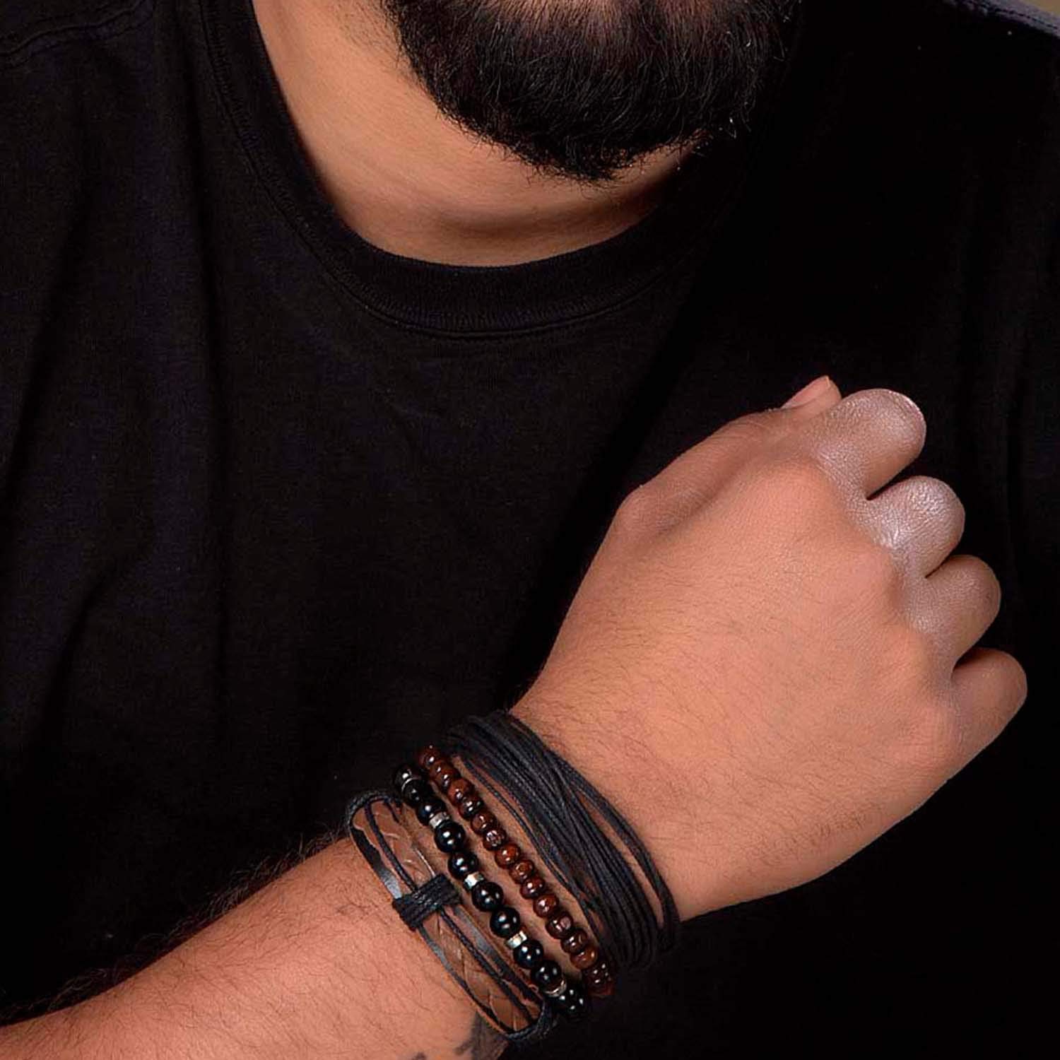How to Wear it: This bracelet set would go well with all of your business attires. Add a classy watch with it and showcase your classic formal style. Look The Part: Perfect wear for business meetings or parties. To make your accessories last longer avoid harsh chemicals and moisture. Keep dry, clean with dry cloth and wear with panache. "From the House of Voylla, India's largest fashion jewelry brand comes DARE, a line of handcrafted accessories for the modern Indian man. |
