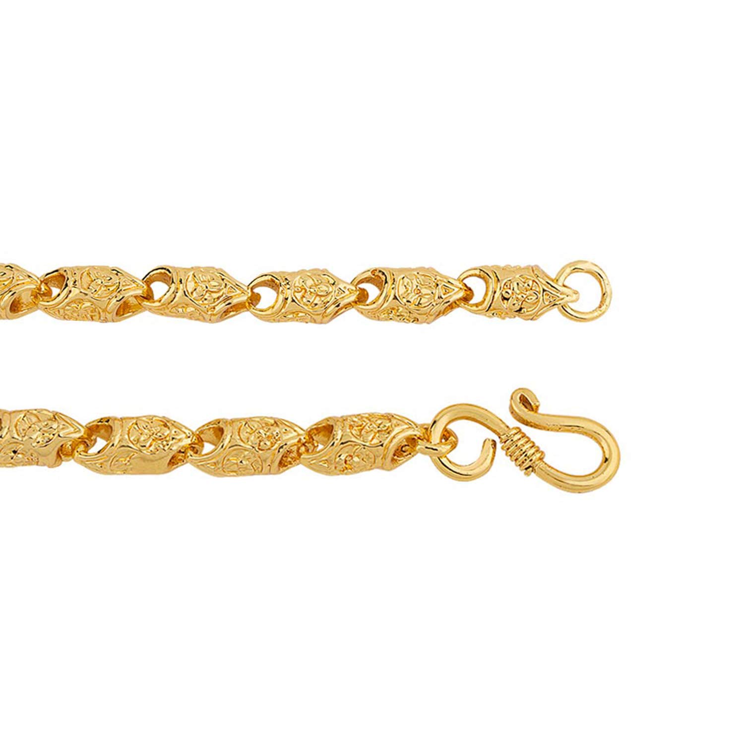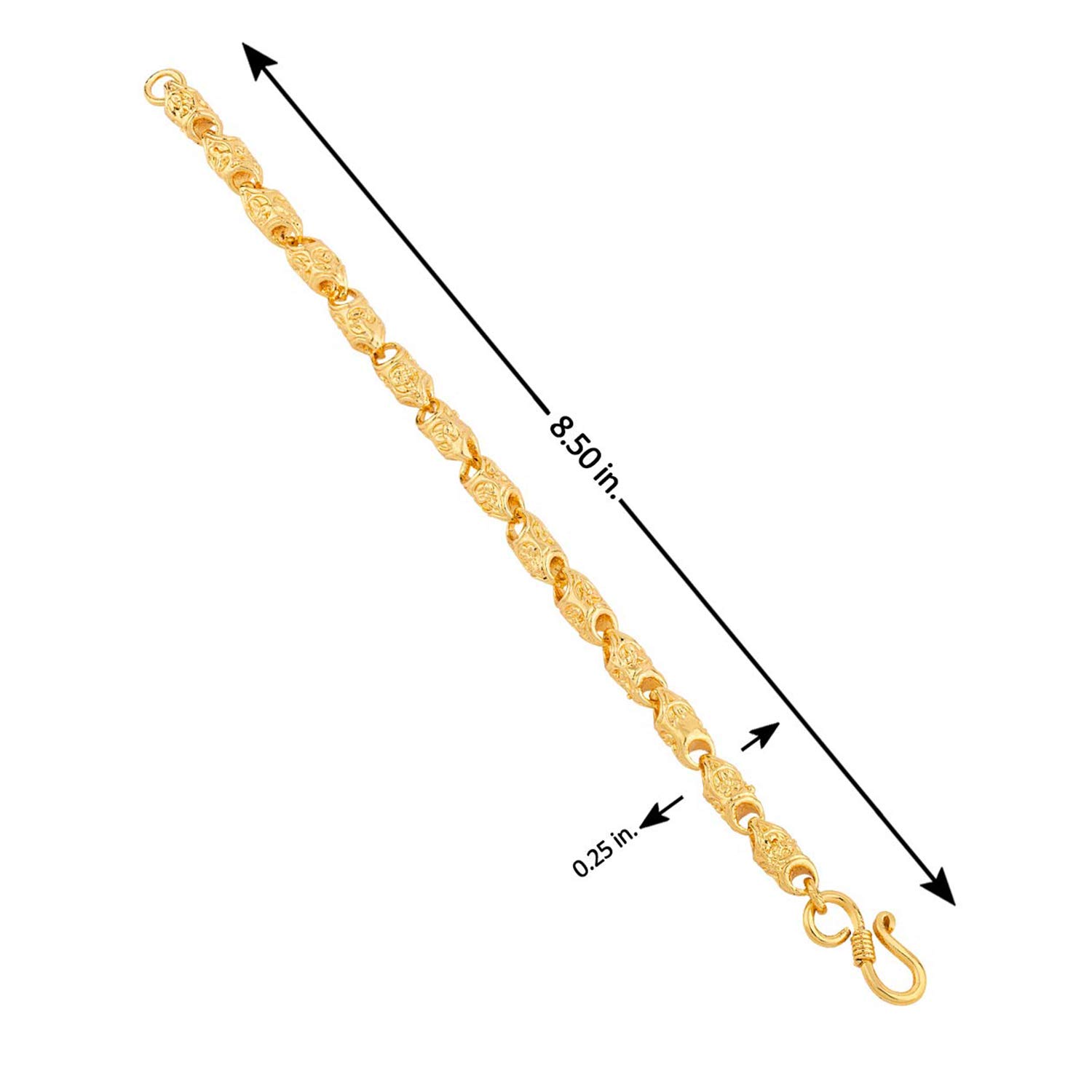 Box link men's bracelet made from brass and yellow gold plated. features a textured surface. wear with a casual outfit, or even a formal one. to make your accessories last longer avoid harsh chemicals and moisture. keep dry, clean with dry cloth and wear with panache. "from the dare by voylla, india's largest fashion jewelry brand comes dare, a line of handcrafted accessories for the modern indian man. |