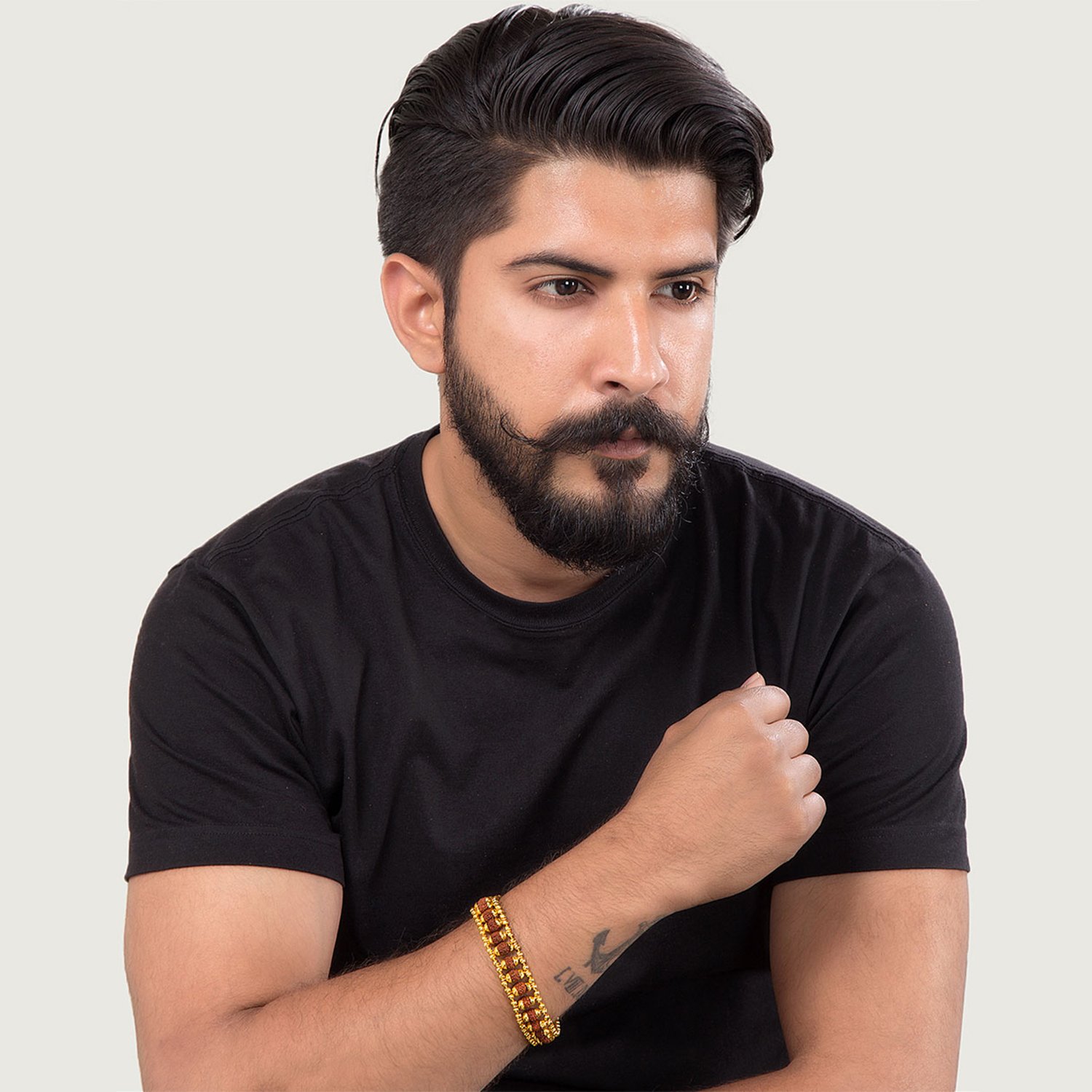 The Accessory: The divine Rudraksha graced bracelet from our Religious Pendant collection. How to Wear it: The bracelet can be teamed up with Kurtas and jeans. Own The Part: Best for the religious and auspicious occasions." To make your accessories last longer avoid harsh chemicals and moisture. Keep dry, clean with dry cloth and wear with panache. "From the House of Voylla, India's largest fashion jewelry brand comes DARE, a line of handcrafted accessories for the modern Indian man. |