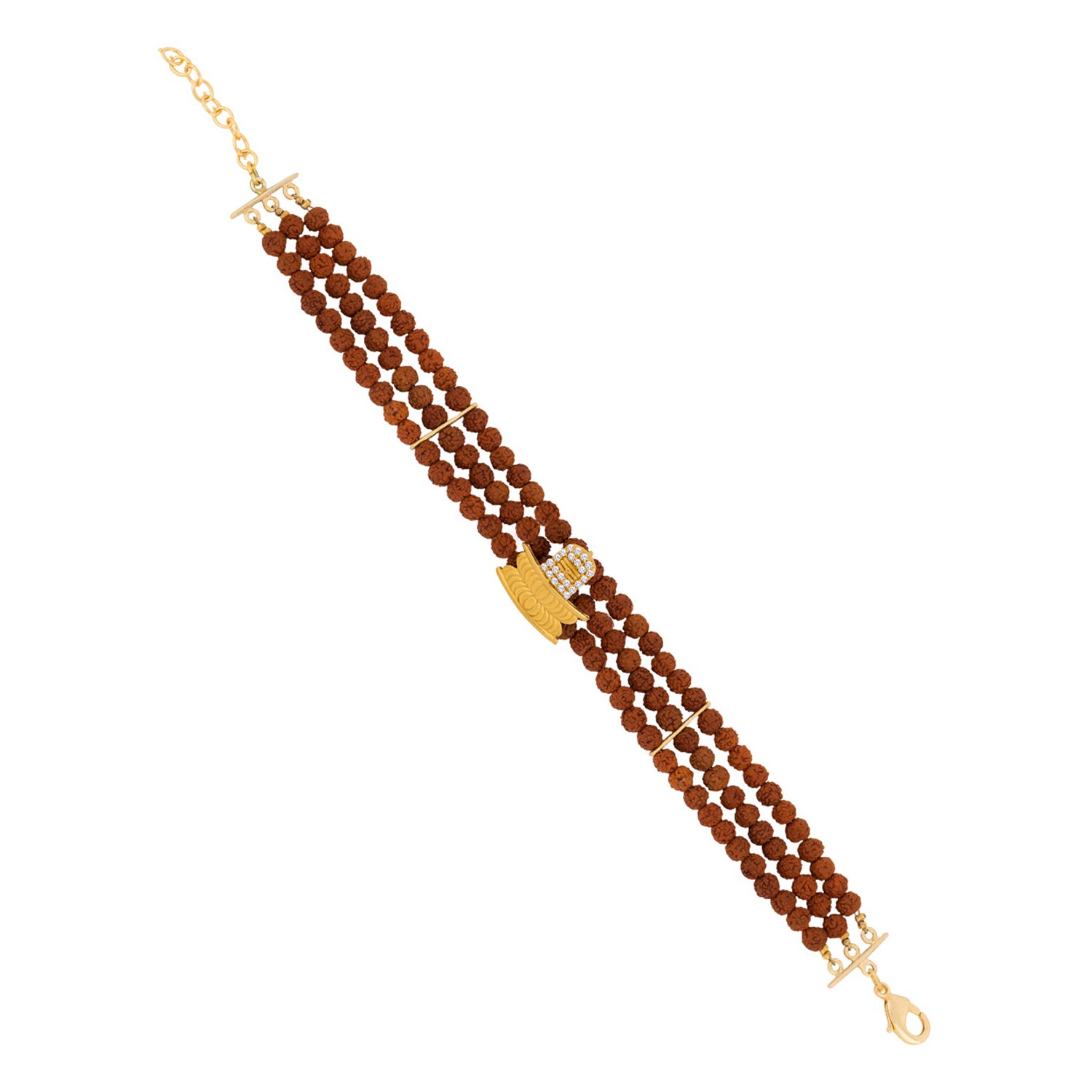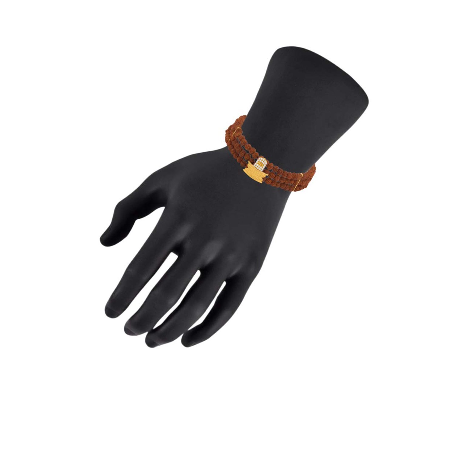 The Accessory: The three string rudraksha beaded Mahadev bracelet has a super gorgeous embellished Shiva lingam charm. How to wear it: Wear it with elegant ethnic and formal clothes.Own the Part: Is an ideal accessory to be worn at special functions and events.To make your accessories last longer avoid harsh chemicals and moisture. Keep dry, clean with dry cloth and wear with panache."From the Dare by Voylla, India's largest fashion jewelry brand comes DARE, a line of handcrafted accessories for the modern Indian man. |
