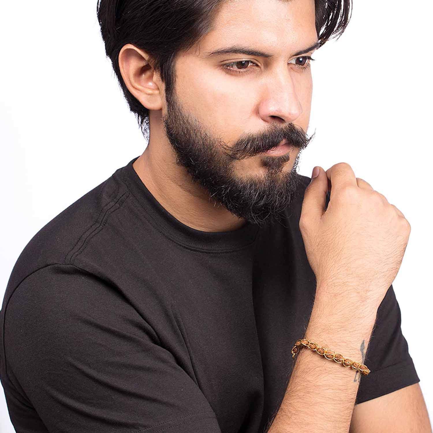 The Accessory: The divine Rudraksha studded bracelet has been fashioned to be stunning and solid. How to Wear it: Wear it with a short kurta and jeans. Own The Part: Wear it to any festive events or as a daily wear." To make your accessories last longer avoid harsh chemicals and moisture. Keep dry, clean with dry cloth and wear with panache. "From the House of Voylla, India's largest fashion jewelry brand comes DARE, a line of handcrafted accessories for the modern Indian man. |