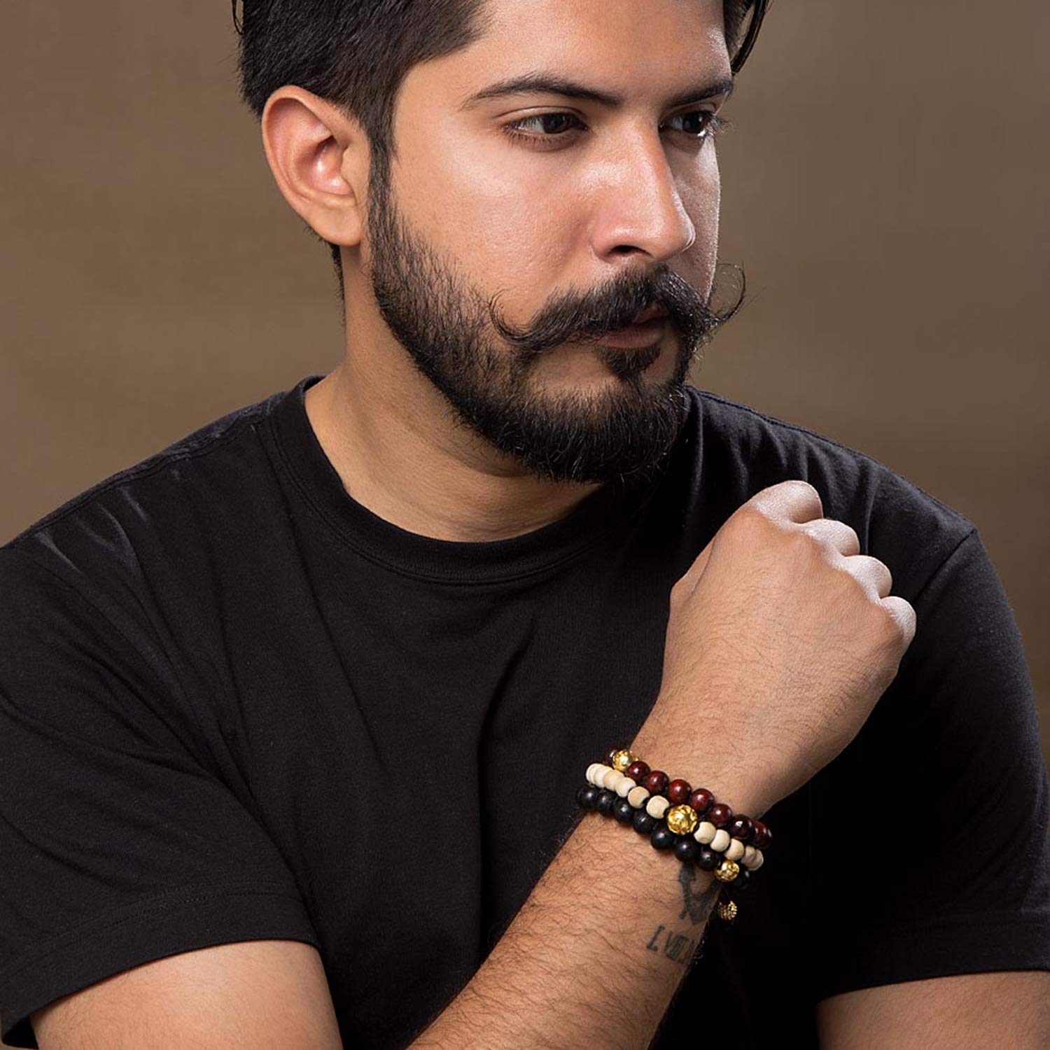 The accessory: this gold plated om and colour beaded bracelet is from our mahadev collection. how to wear it: you can wear it with any of your casual outfits. own the part: ideal for all religious occasions. to make your accessories last longer avoid harsh chemicals and moisture. keep dry, clean with dry cloth and wear with panache. "from the dare by voylla, india's largest fashion jewelry brand comes dare, a line of handcrafted accessories for the modern indian man. |