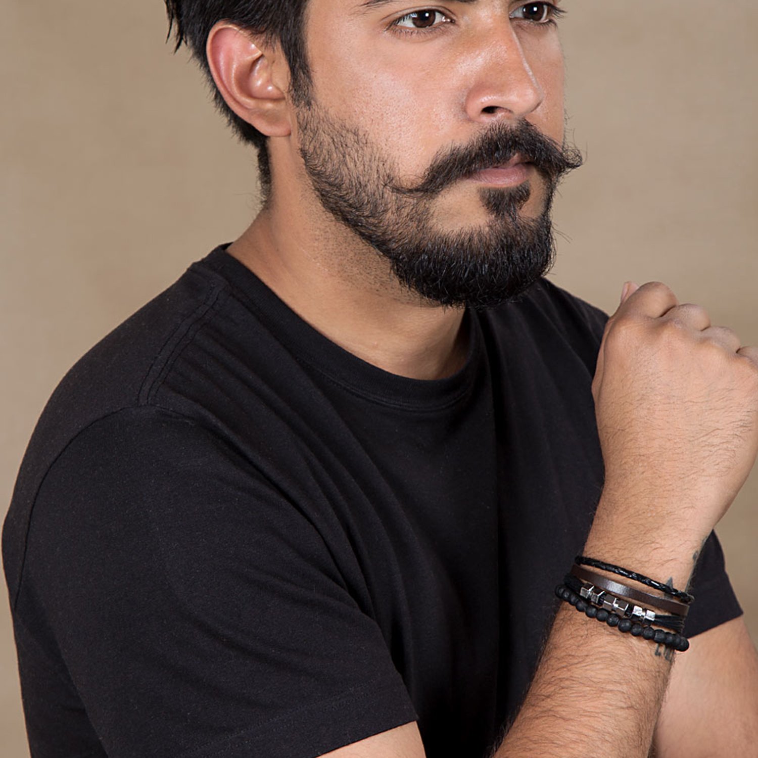 The Accessory: This combination of 3 Rugged Mountains leather bracelet from the Beaded Gypsy collection is for the vast, mysterious, towering man in you. How to Wear It: Bring out your mountain wear for that travel trip with friends. Own the Part: Best for casual day wear. To make your accessories last longer avoid harsh chemicals and moisture. Keep dry, clean with dry cloth and wear with panache. "From the DARE by Voylla, India's largest fashion jewelry brand comes DARE, a line of handcrafted accessories for the modern Indian man. |