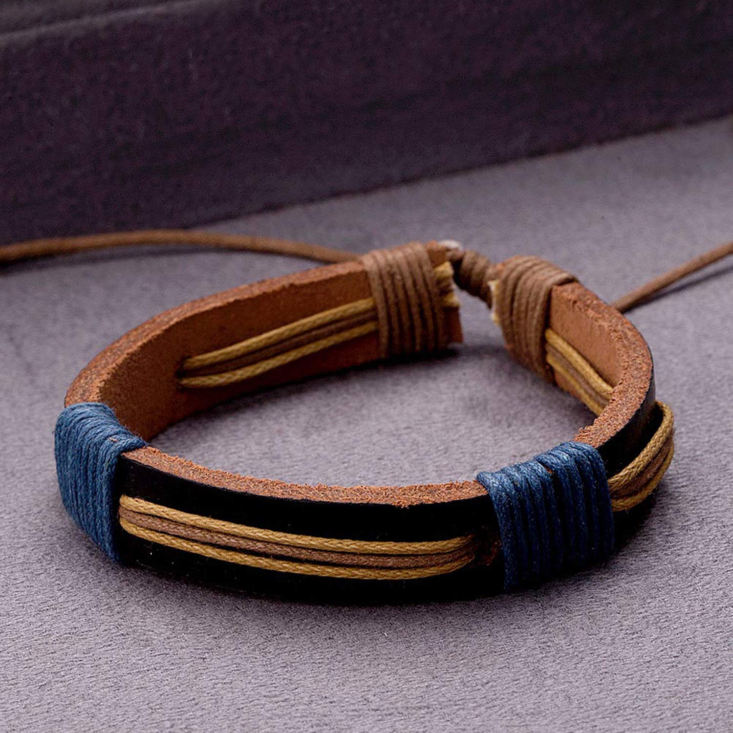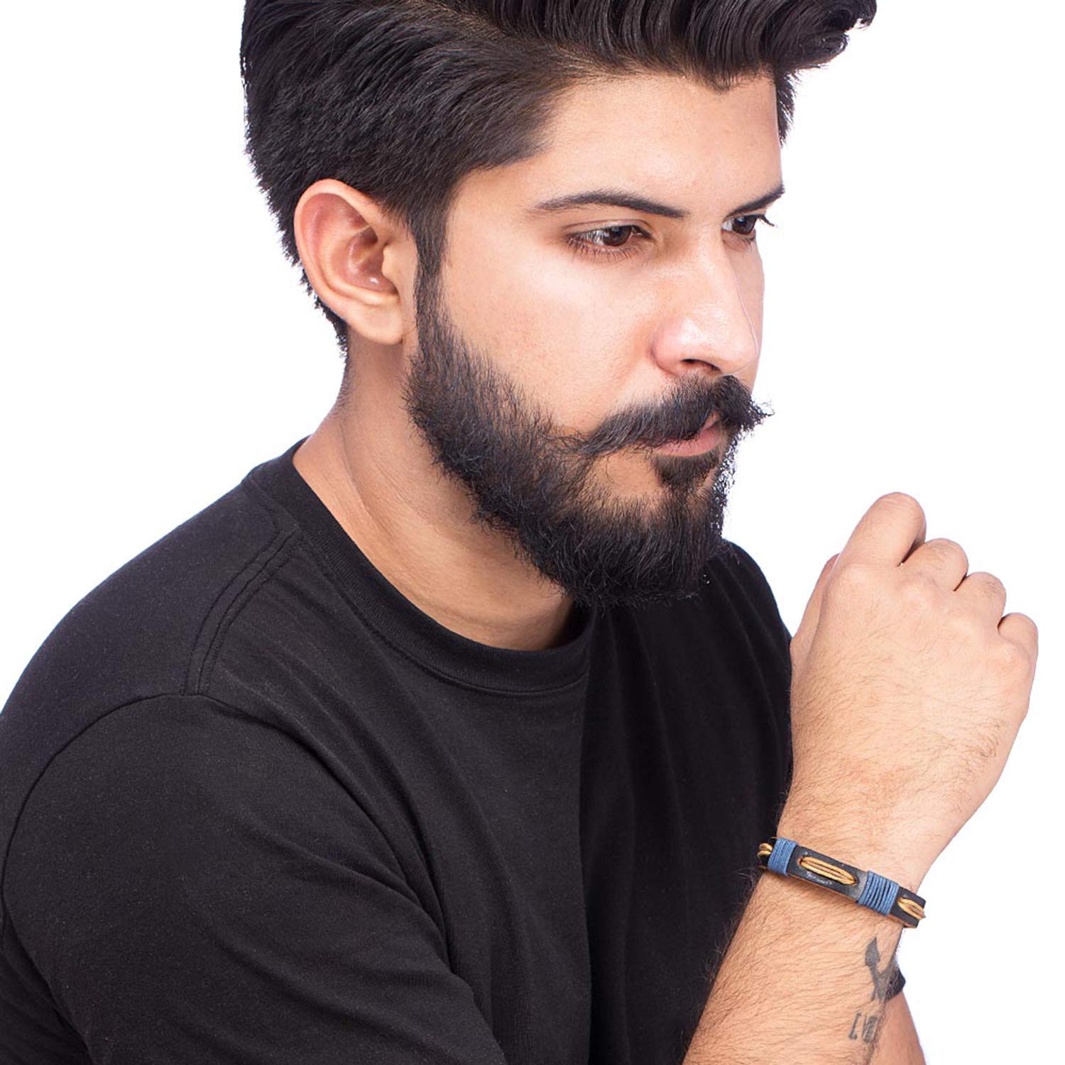 The Accessory: This black leather blue wrap boho bracelet is from our cool stacked collection. How to Wear it: Pair the bracelet with a casual t-shirt and rugged denim. Own the Part: Perfect everyday formal wear! To make your accessories last longer avoid harsh chemicals and moisture. Keep dry, clean with dry cloth and wear with panache. "From the Dare by Voylla, India's largest fashion jewelry brand comes DARE, a line of handcrafted accessories for the modern Indian man. |