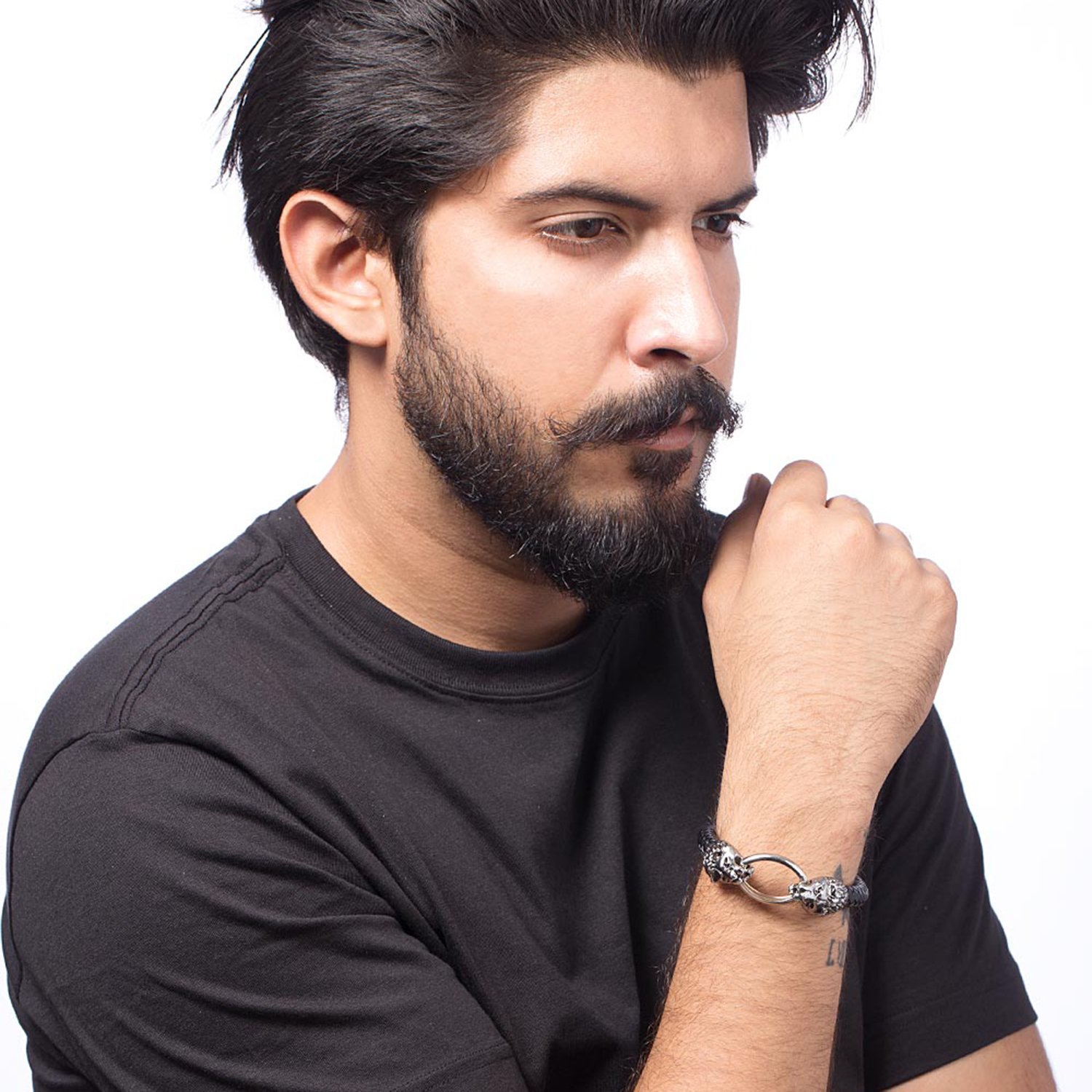 Showcase your bold and stylish look by wearing this band style bracelet with tiger motif ends. Team it with a casual white t-shirt and denim. Perfect for a weekend getaway with friends! To make your accessories last longer avoid harsh chemicals and moisture. Keep dry, clean with dry cloth and wear with panache. "From the DARE by Voylla, India's largest fashion jewelry brand comes DARE, a line of handcrafted accessories for the modern Indian man. |