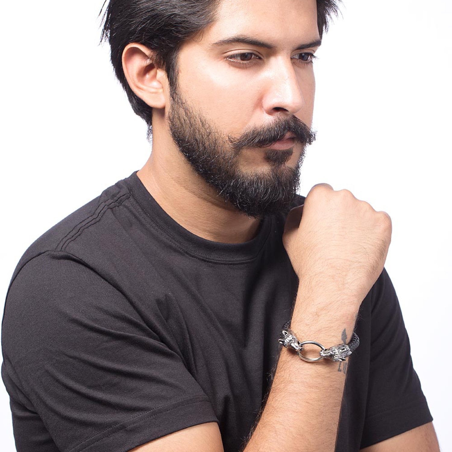 Double your luck with 2 headed fox bracelet from Dare by Voylla. Intricately cast from quality stainless steel plated in oxidized silver and connected with a band of luxurious braided leather. The unusual clasp is caught in an eternal tug of war between the jaws of the 2 fox. To make your accessories last longer avoid harsh chemicals and moisture. Keep dry, clean with dry cloth and wear with panache. "From the House of Voylla, India's largest fashion jewelry brand comes DARE, a line of handcrafted accessories for the modern Indian man. |