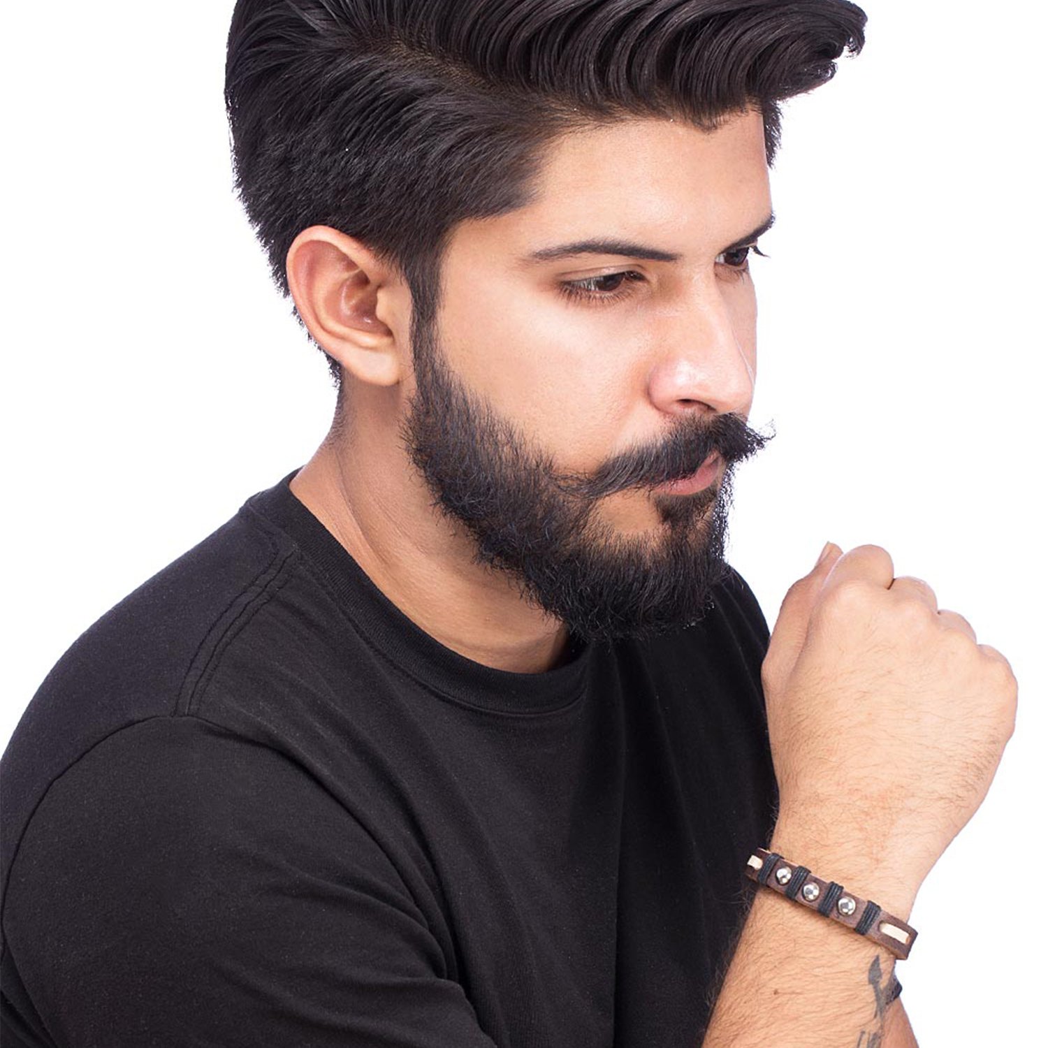 The Accessory: Show everyone your bold look with this brown leather bracelet from our cool stacked collection. How to Wear it: Pair the bracelet with a casual t-shirt and chinos. Own the Part: Perfect for everyday macho beard look! To make your accessories last longer avoid harsh chemicals and moisture. Keep dry, clean with dry cloth and wear with panache. "From the Dare by Voylla, India's largest fashion jewelry brand comes DARE, a line of handcrafted accessories for the modern Indian man. |