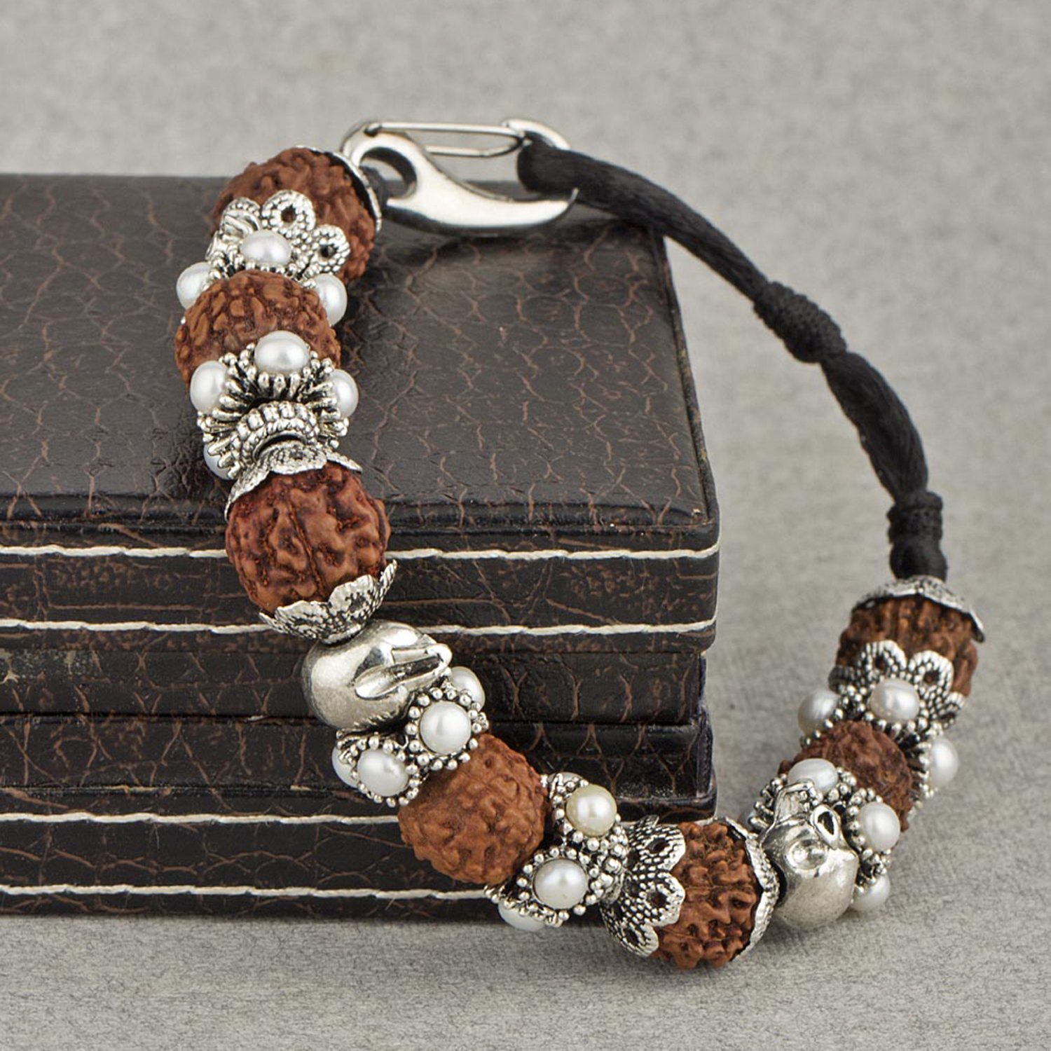 The Accessory: Receive blessings of Lord with this rudraksha Mahadev bracelet having pearl beads ring charms.How to wear it: Wear it with your ethnic outfits.Own the Part: Perfect for religious ceremonies or festivals.To make your accessories last longer avoid harsh chemicals and moisture. Keep dry, clean with dry cloth and wear with panache."From the Dare by Voylla, India's largest fashion jewelry brand comes DARE, a line of handcrafted accessories for the modern Indian. man. |