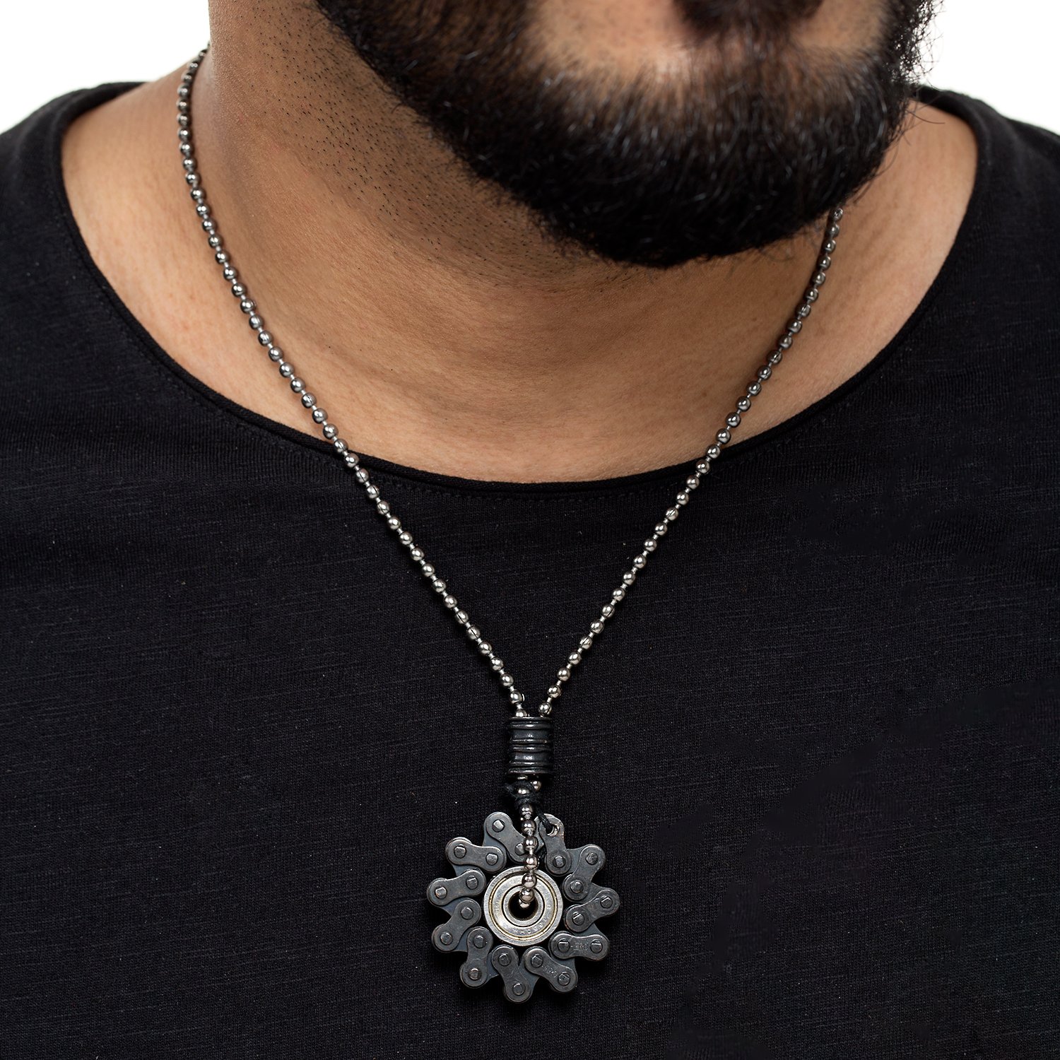 The Accessory: A necklace from the Motorcycle Diaries collection with an edgy appeal. How to Wear It: Team it up with a suede black jacket and a white t-shirt. Own the Part: An ideal accessory for hanging out with your friends.To make your accessories last longer avoid harsh chemicals and moisture. Keep dry, clean with dry cloth and wear with panache."From the Dare by Voylla, India's largest fashion jewelry brand comes DARE, a line of handcrafted accessories for the modern Indian man. |