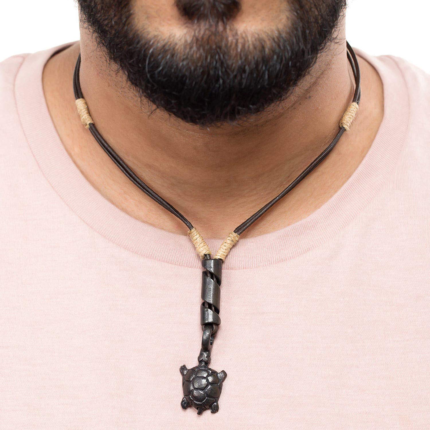 The Accessory: A black rhodium plated zen turtle, attached to a stylish cord from our Motorcycle Diaries collection. How to Wear It: You can wear it with colourful t-shirts. Own the Part: Can complement your everyday look.To make your accessories last longer avoid harsh chemicals and moisture. Keep dry, clean with dry cloth and wear with panache."From the Dare by Voylla, India's largest fashion jewelry brand comes DARE, a line of handcrafted accessories for the modern Indian man. |