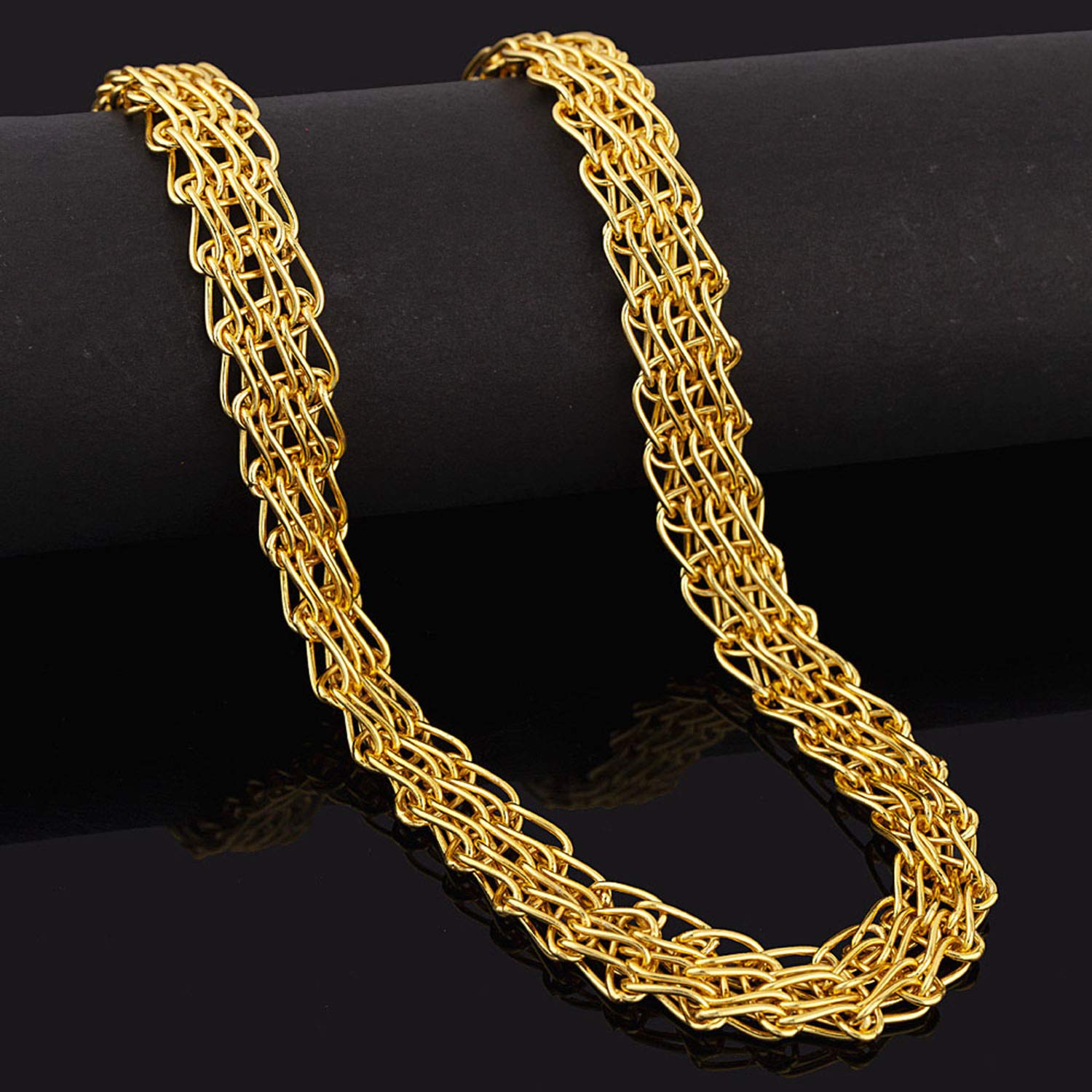 Singapore pattern chain for men, made from brass and yellow gold plated. comes with a hook and eye closure for easy wearing. pair with a formal indian outfit. to make your accessories last longer avoid harsh chemicals and moisture. keep dry, clean with dry cloth and wear with panache. "from the dare by voylla, india's largest fashion jewelry brand comes dare, a line of handcrafted accessories for the modern indian man. |