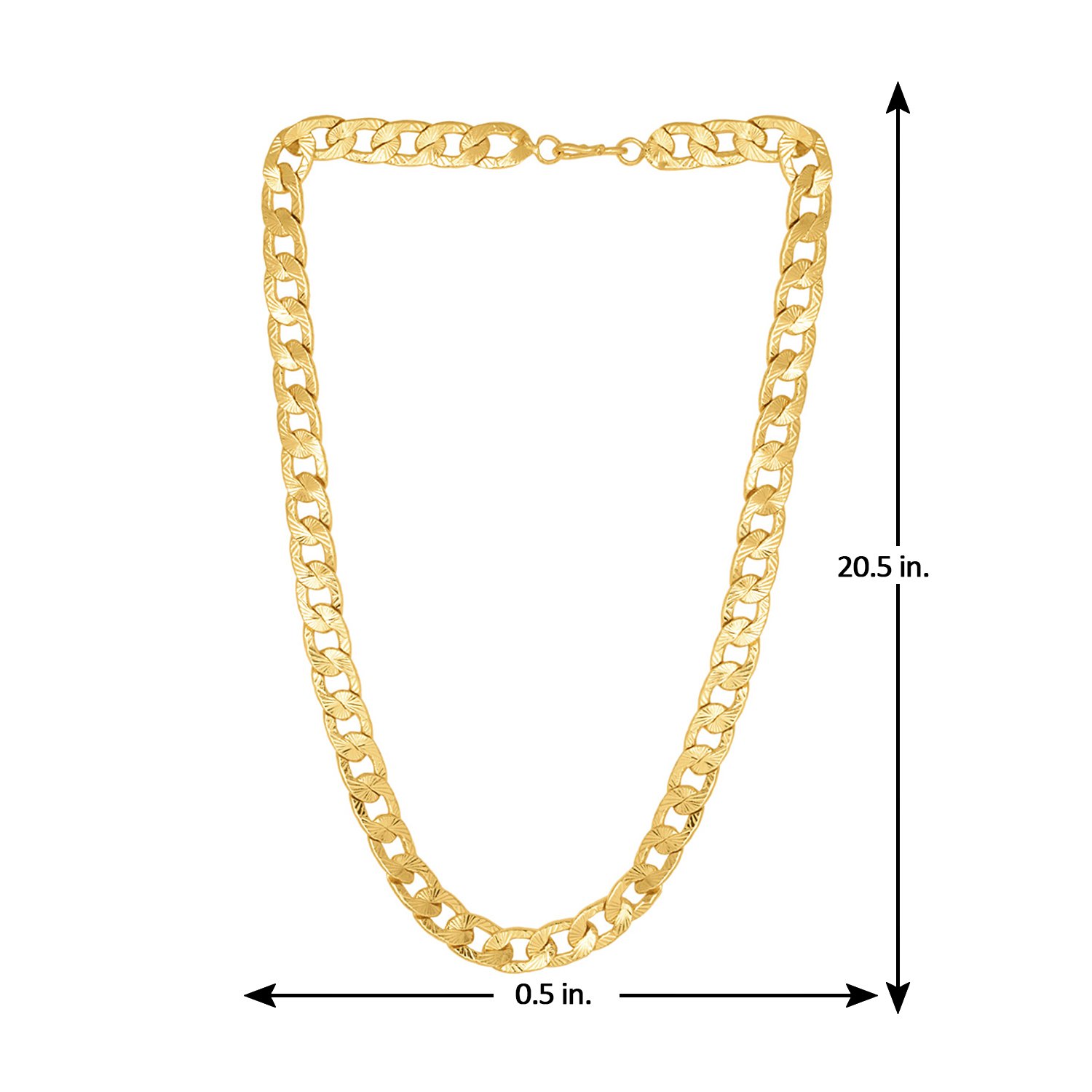 The Accessory: This is a stylish curb chain in yellow gold plating from the Linking Laureate collection.How to Wear it: For an edgy look, wear it with a Henley t-shirt and jeans with a pair of boots.Own the Part: Can be worn on a road trip with friends!To make your accessories last longer avoid harsh chemicals and moisture. Keep dry, clean with dry cloth and wear with panache."From the DARE by Voylla, India's largest fashion jewelry brand comes DARE, a line of handcrafted accessories for the modern Indian man. |