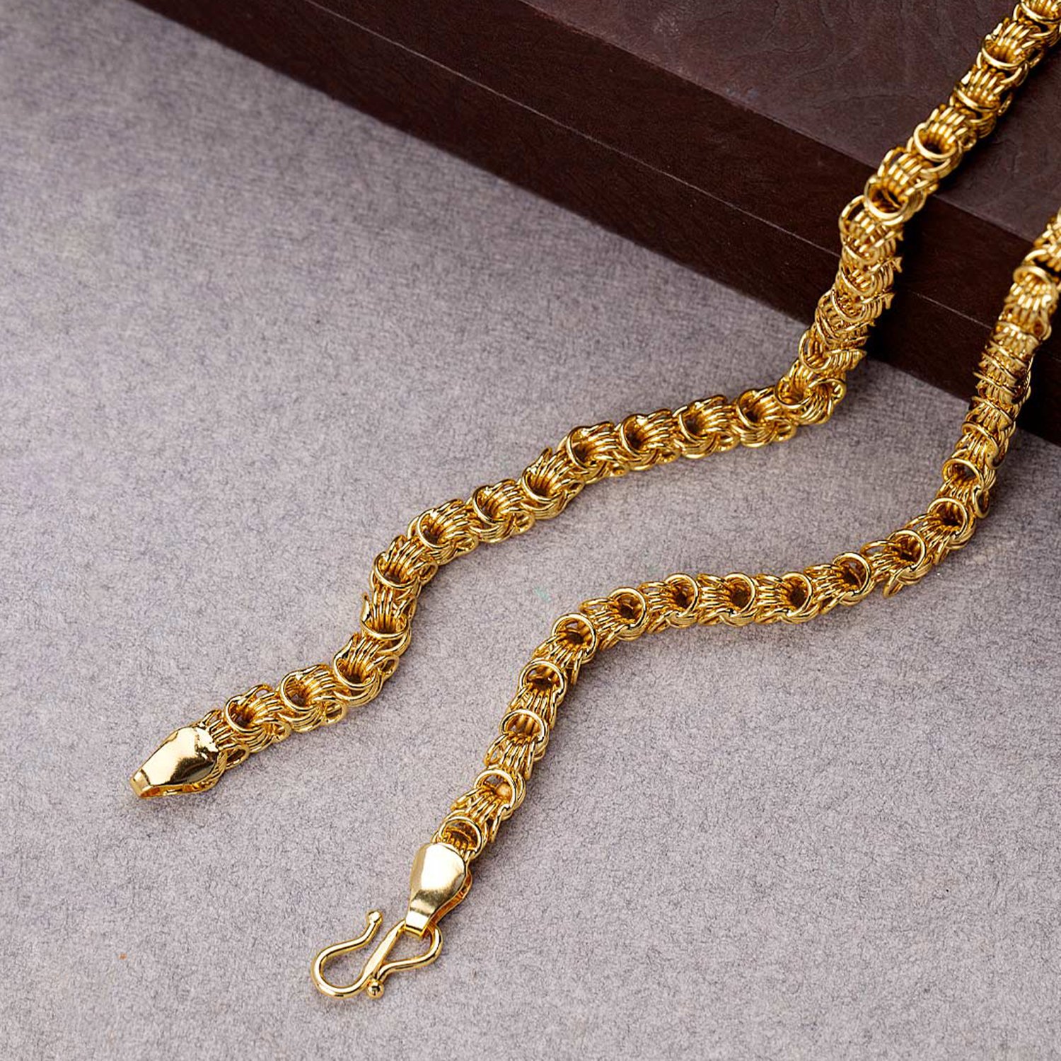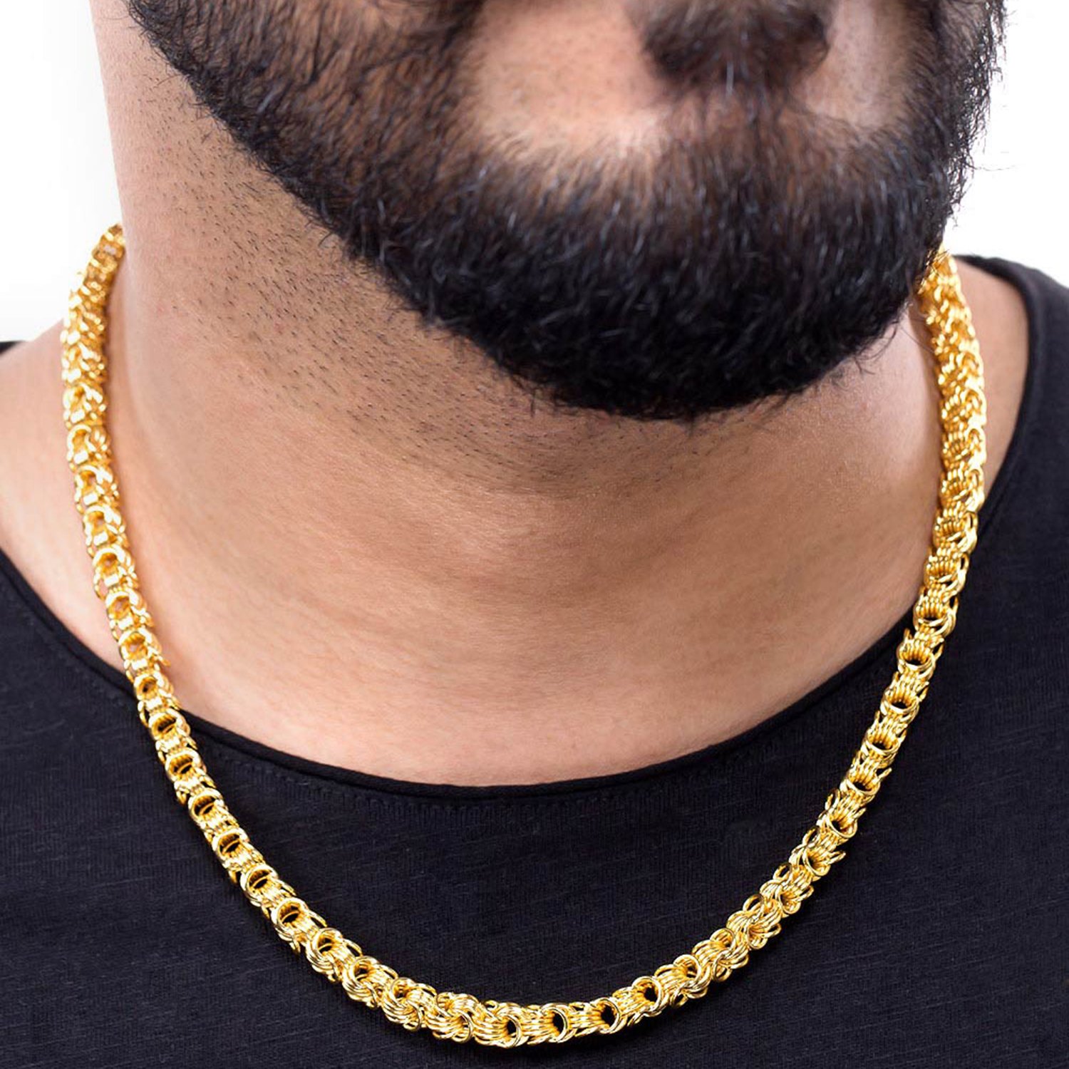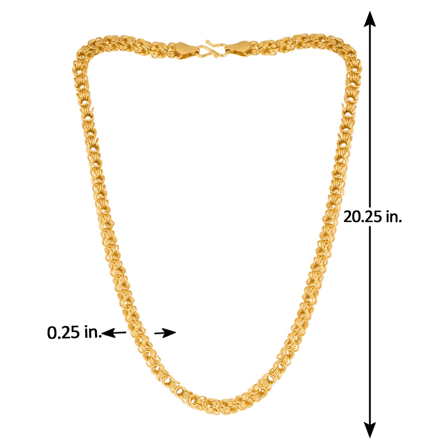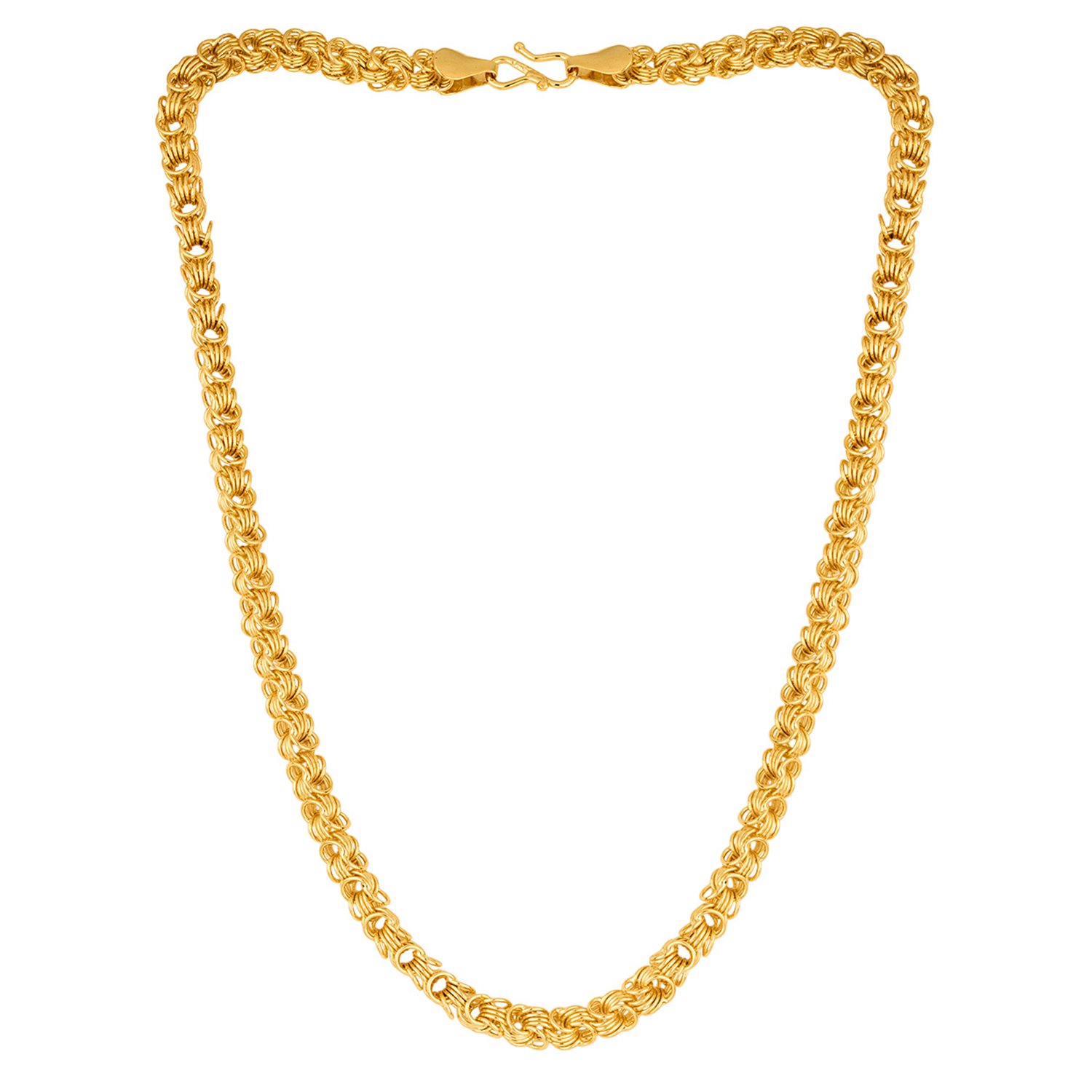 The Accessory: Enhance your classy looks with this gold-plated cable link chain from the Handmade collection.How to Wear it: Wear it on black t-shirt and jeans for stylish look.Own the Part: Best for special date eve!To make your accessories last longer avoid harsh chemicals and moisture. Keep dry, clean with dry cloth and wear with panache."From the Dare by Voylla, India's largest fashion jewelry brand comes DARE, a line of handcrafted accessories for the modern Indian. man. |